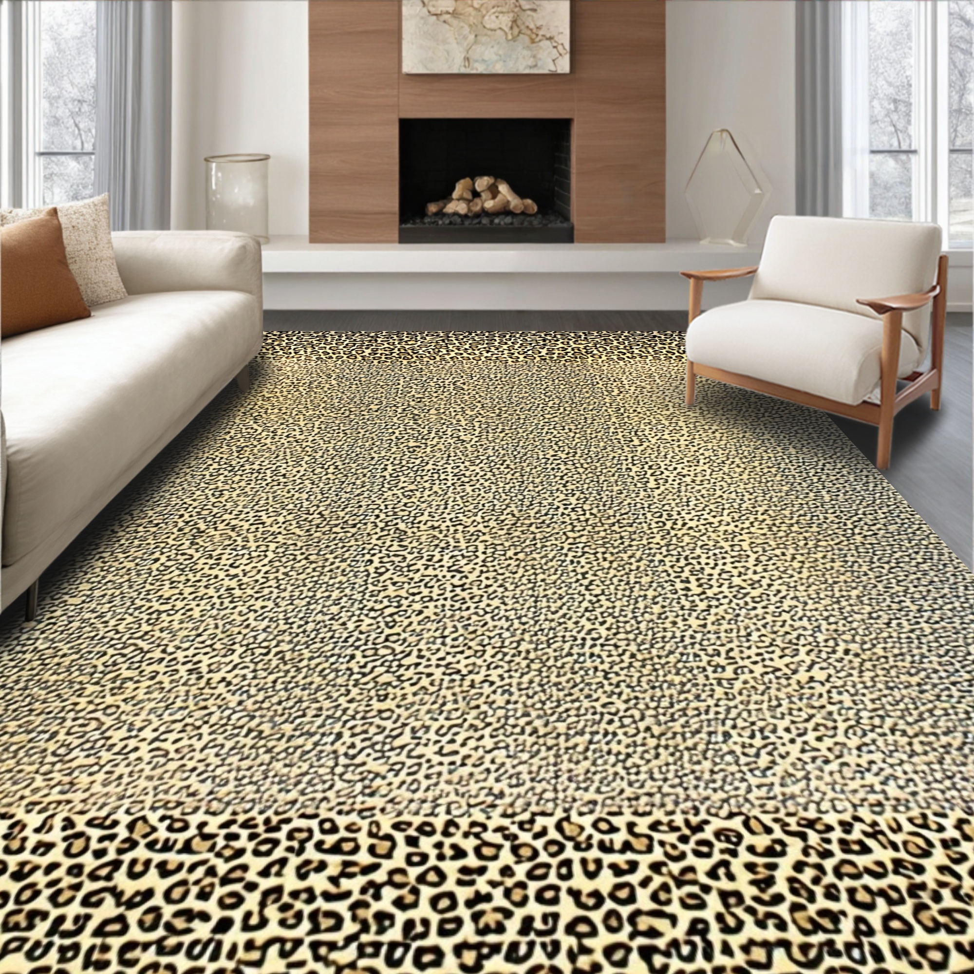 Beige-Brown Leopard Print Wild Rug