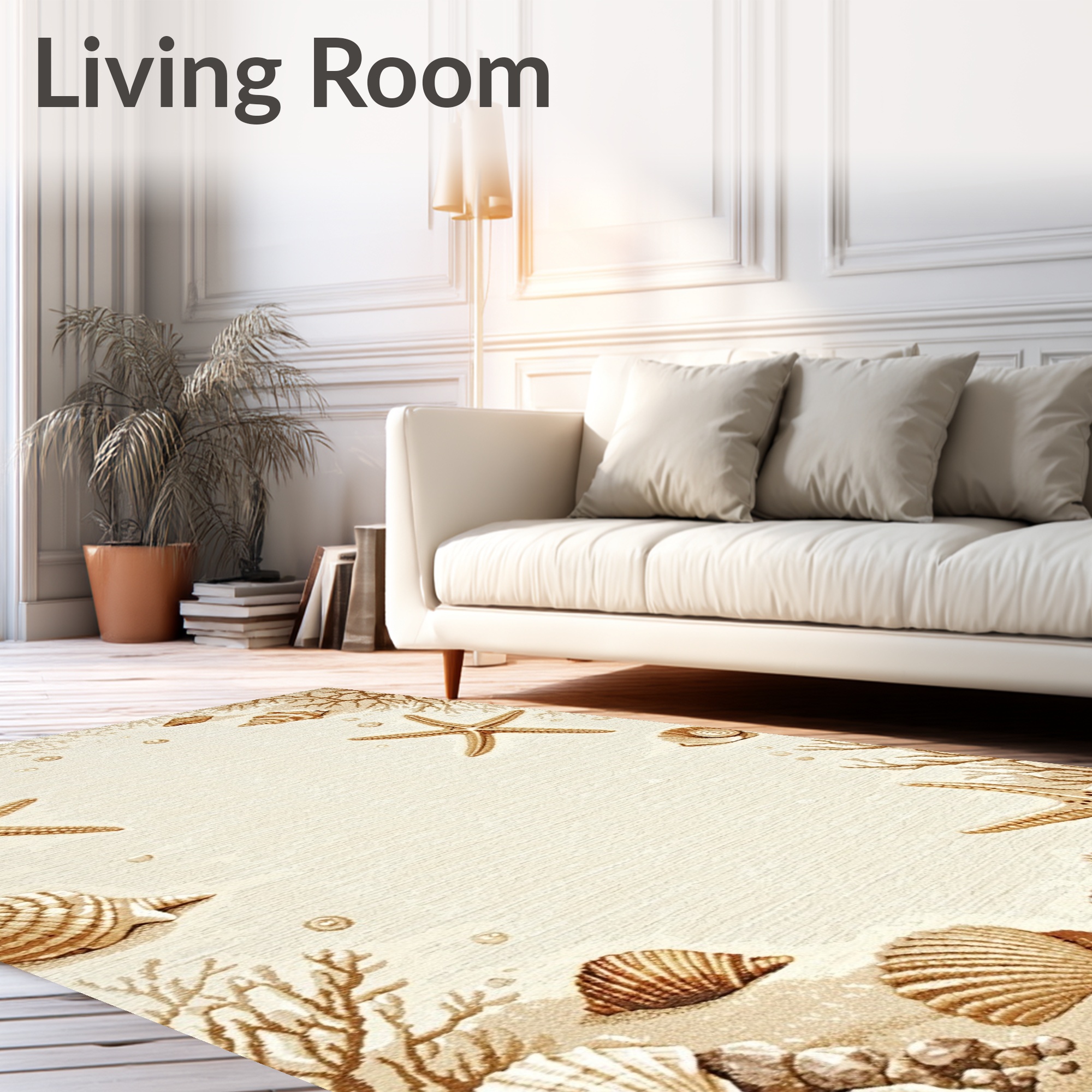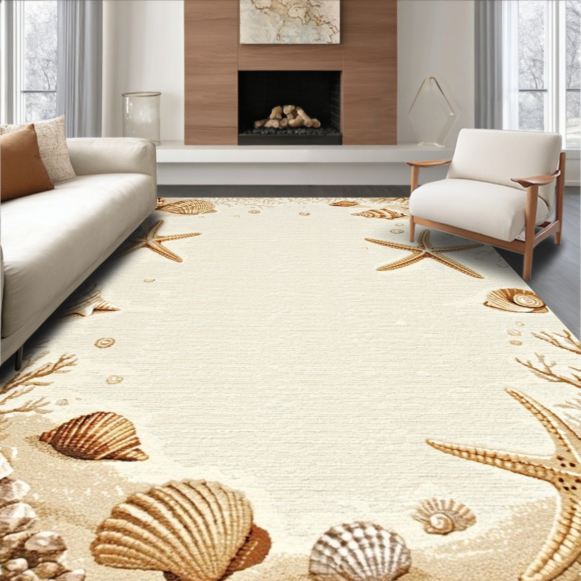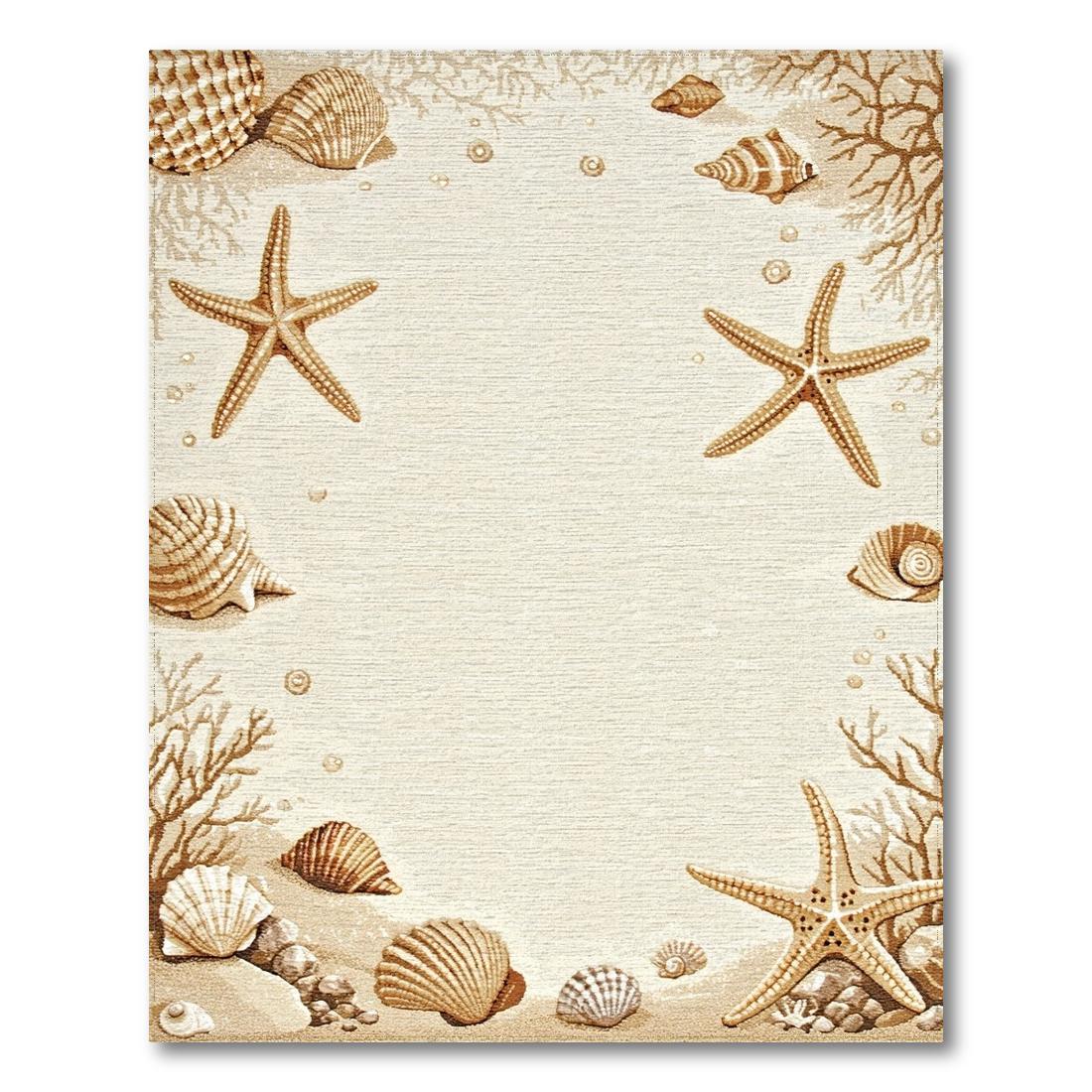 Beige Coastal Seashell Starfish Tranquil Rug