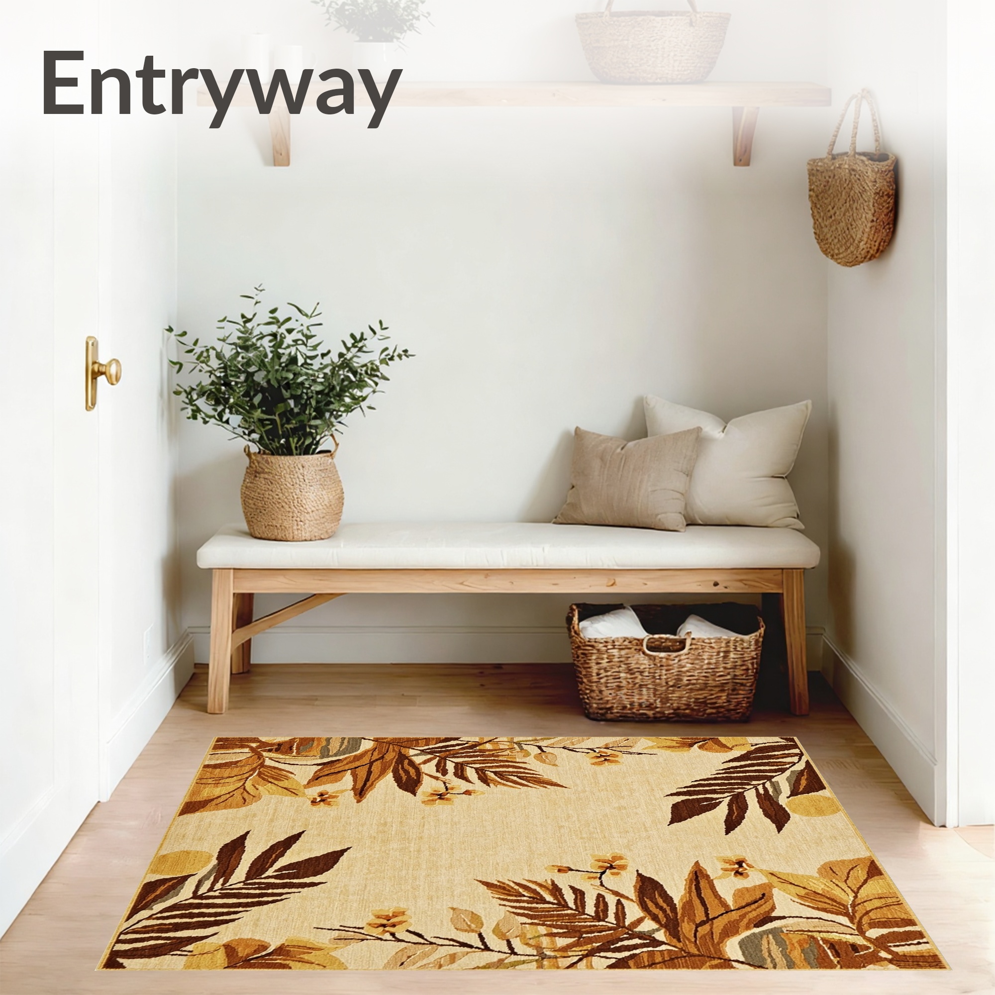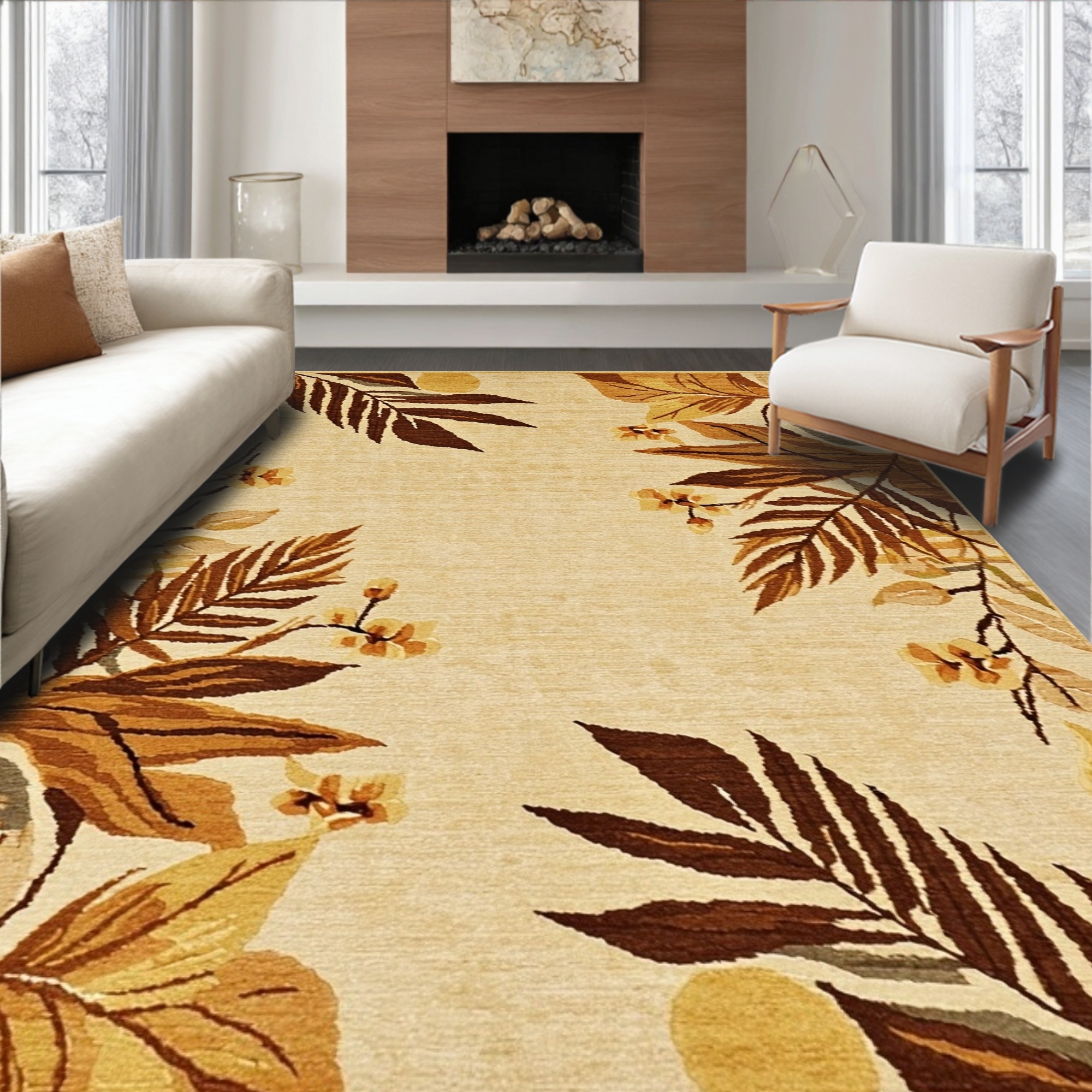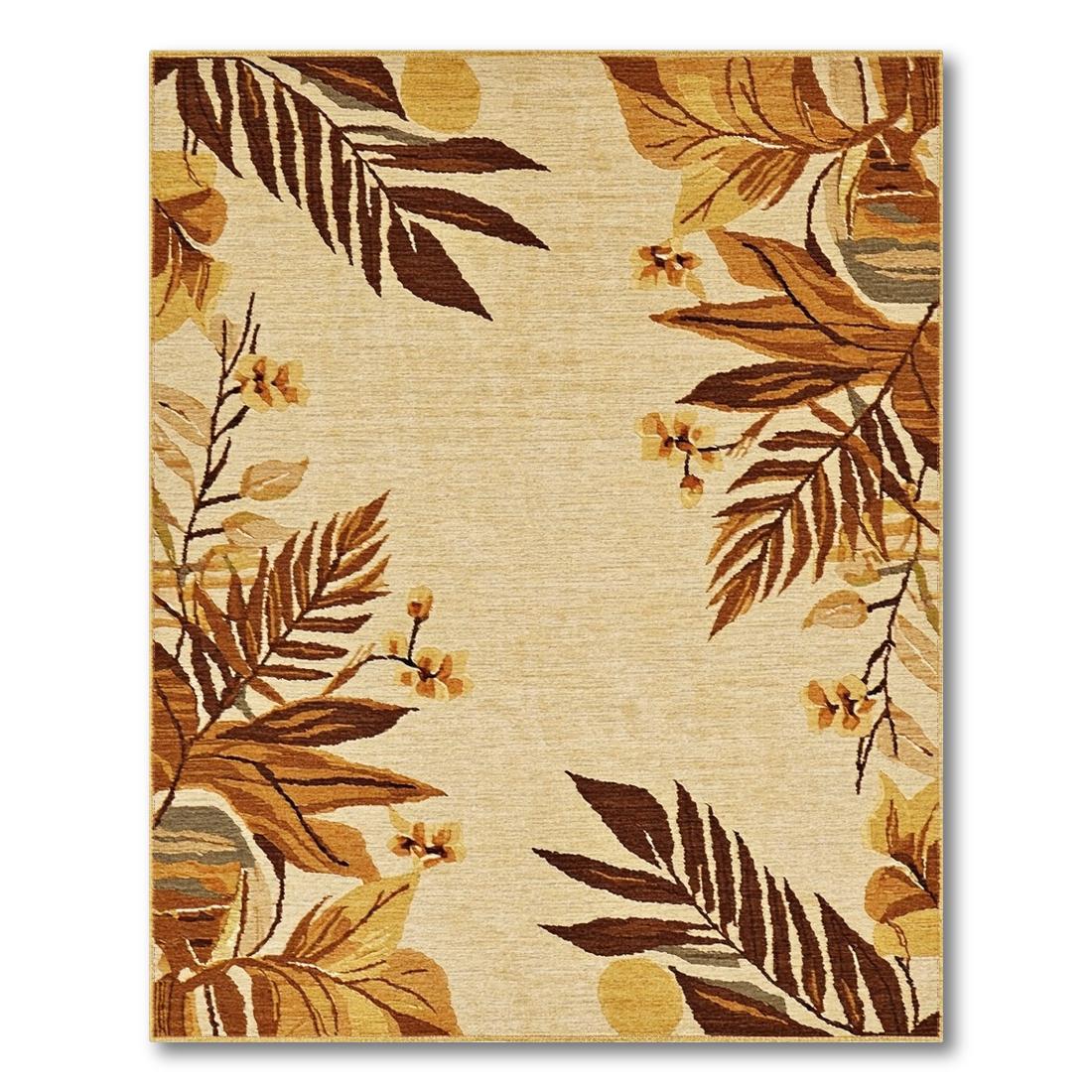Beige Tropical Leaves Warm Rug