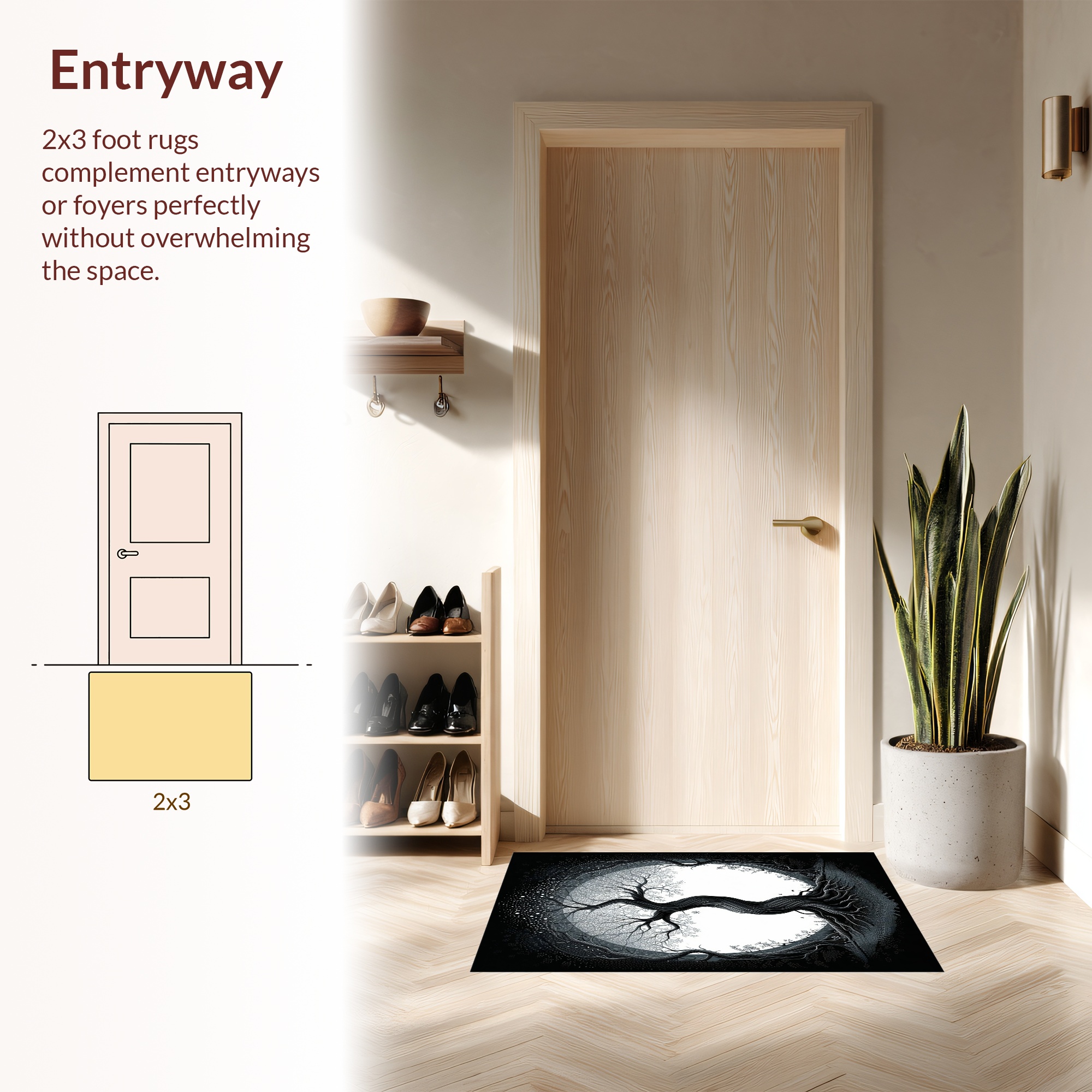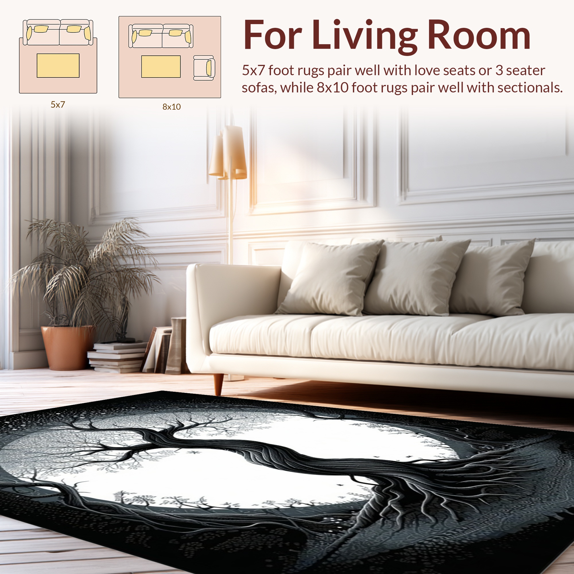 Black-and-white Twisted Tree Mystical Rug