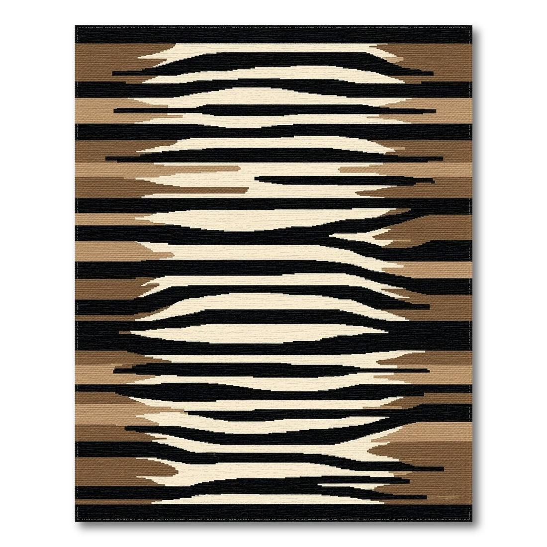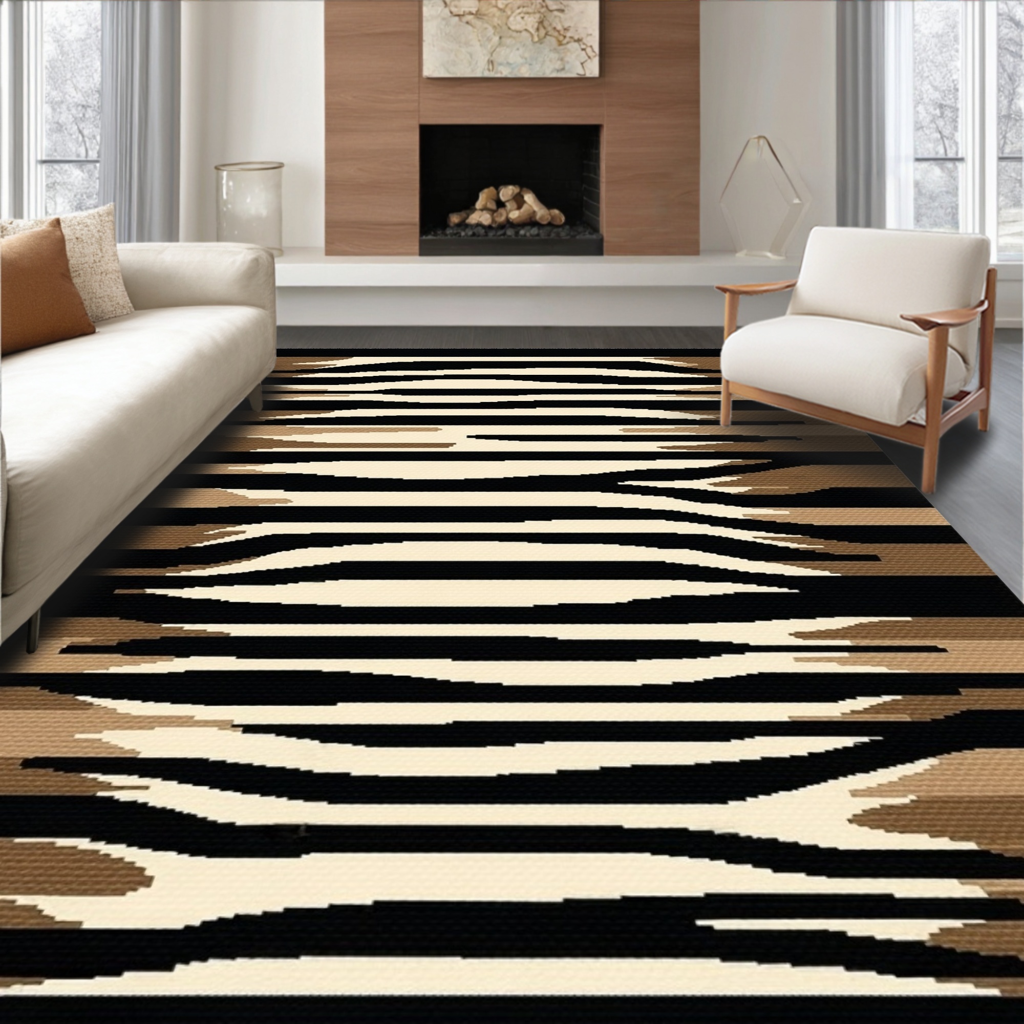 Black Beige Brown Wavy Striped Modern Rug