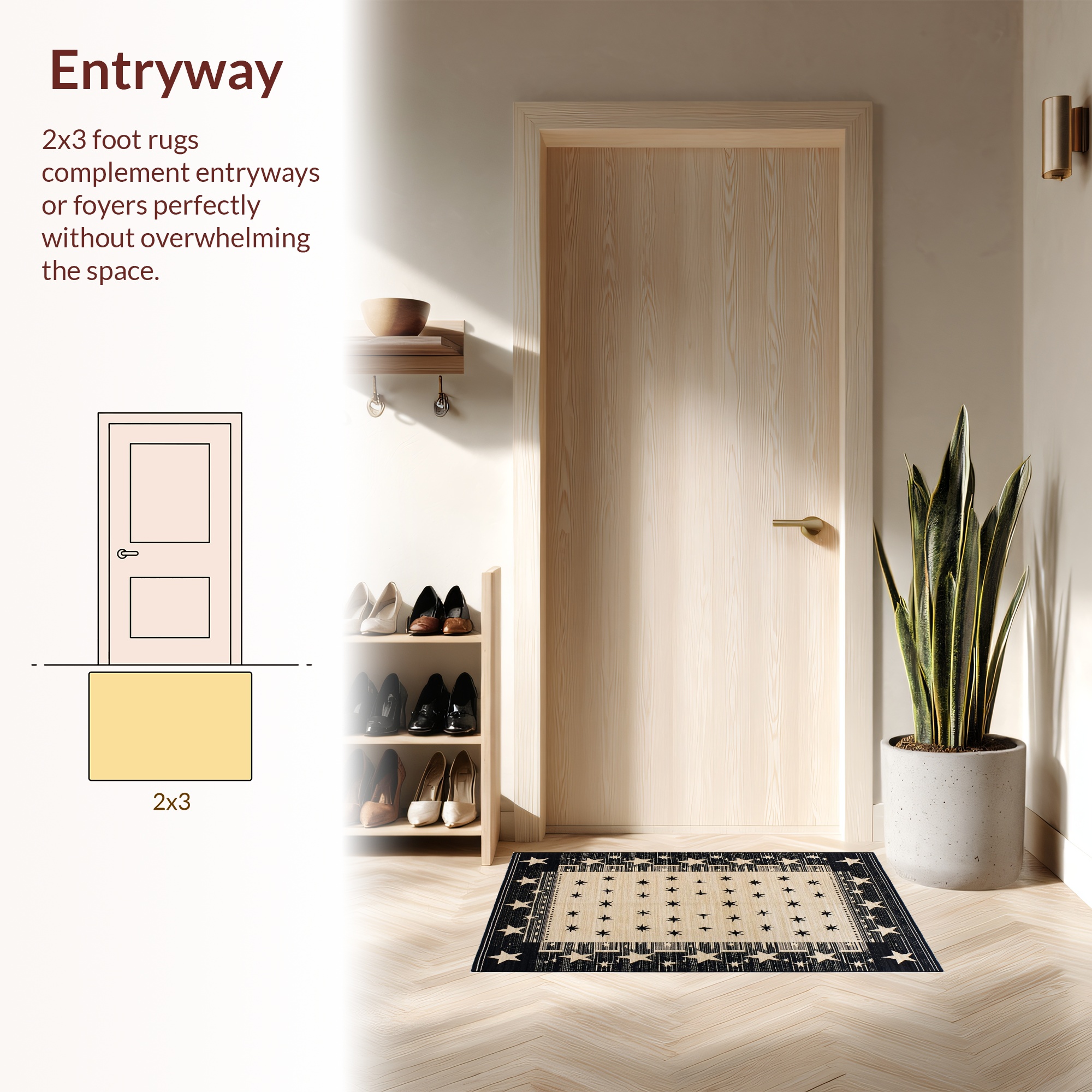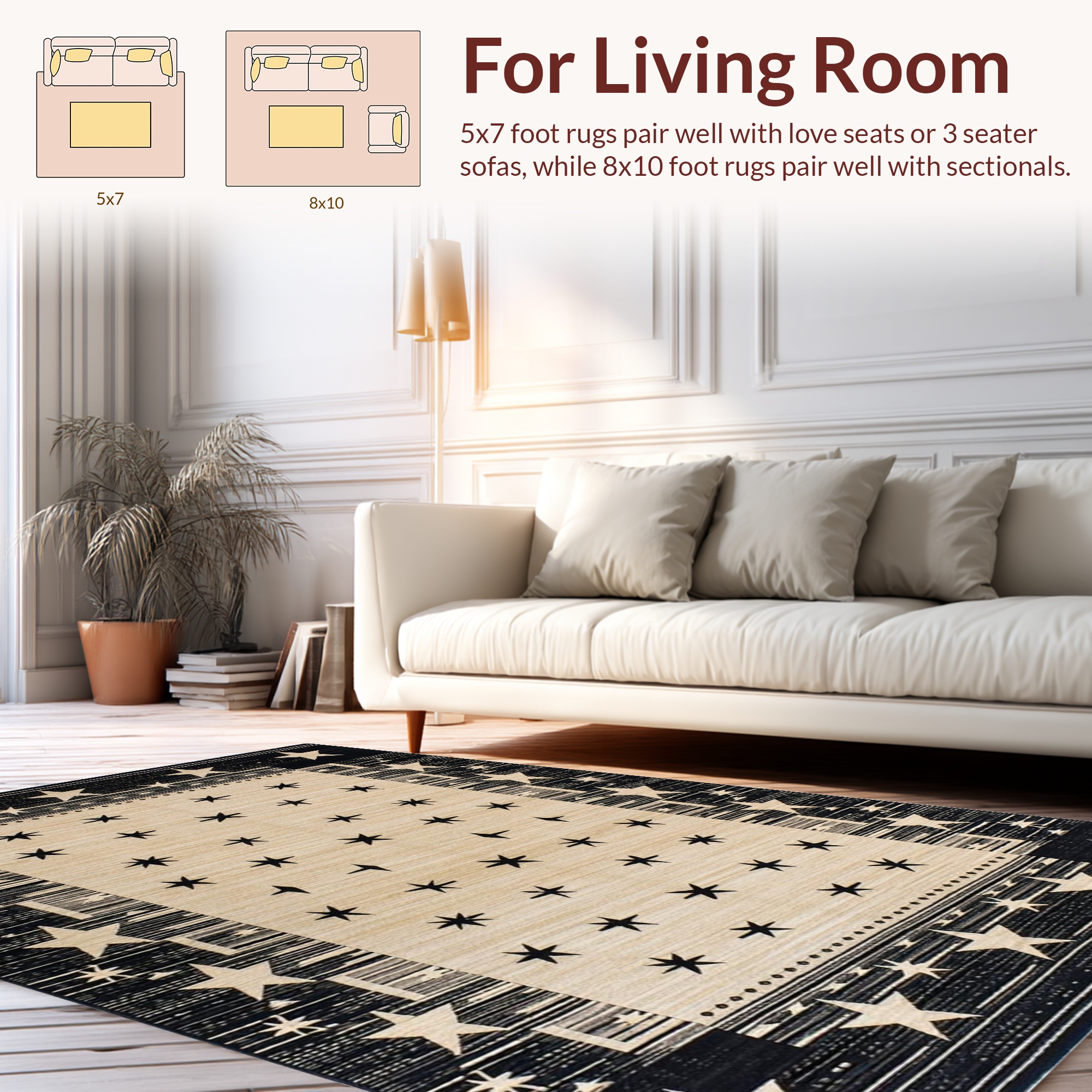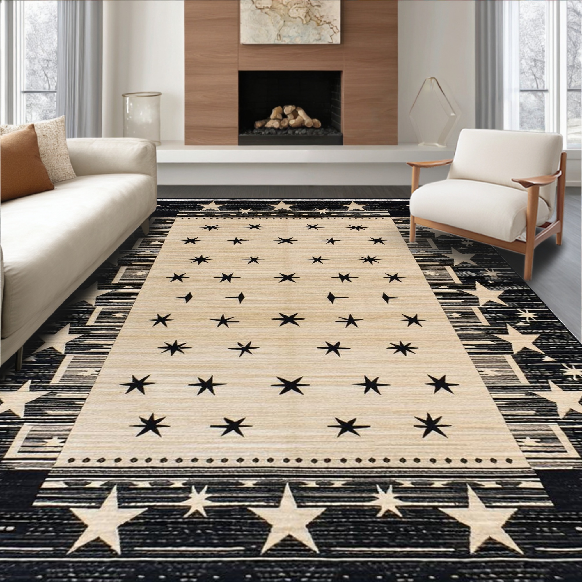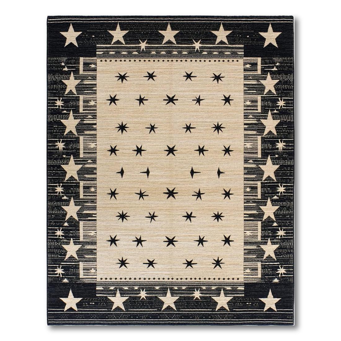 Black Beige Star Pattern Rustic Rug