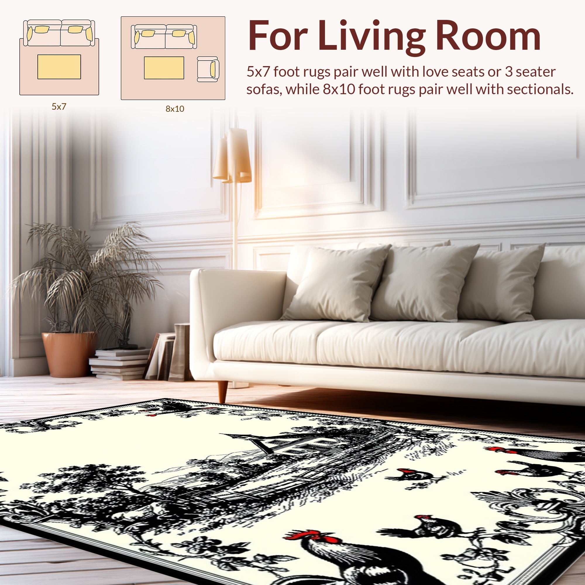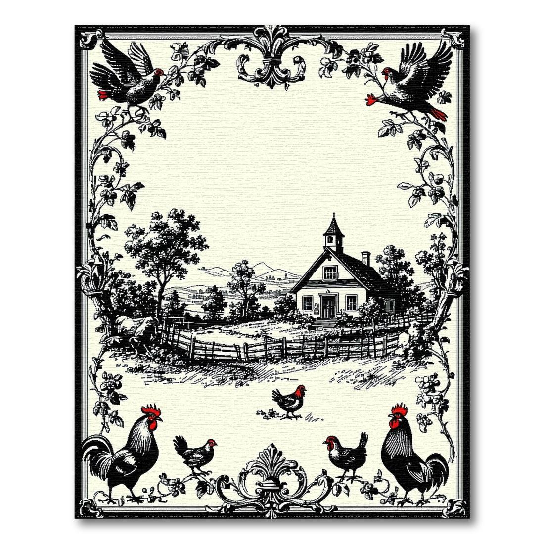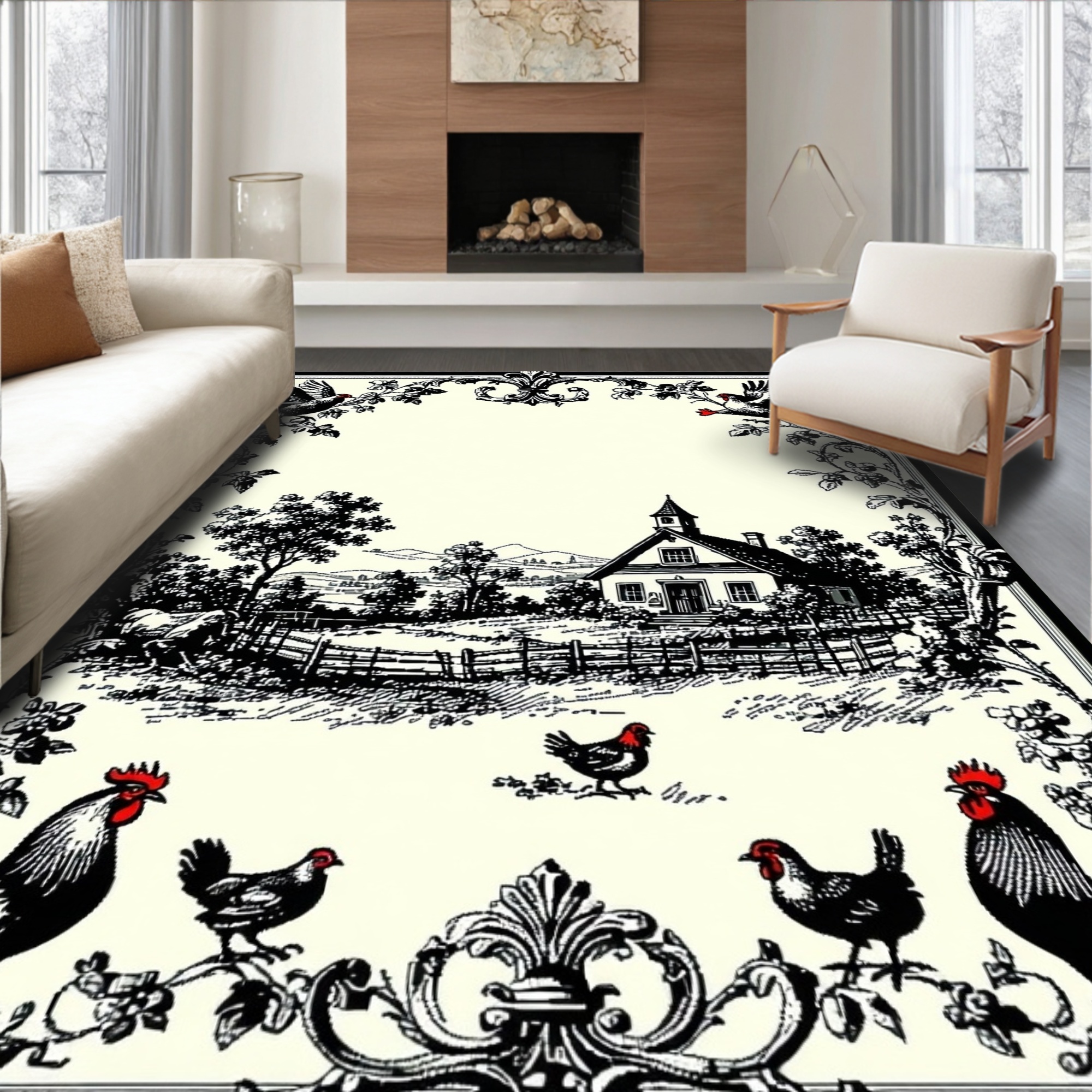 Black & Cream Farmhouse Scene Rug