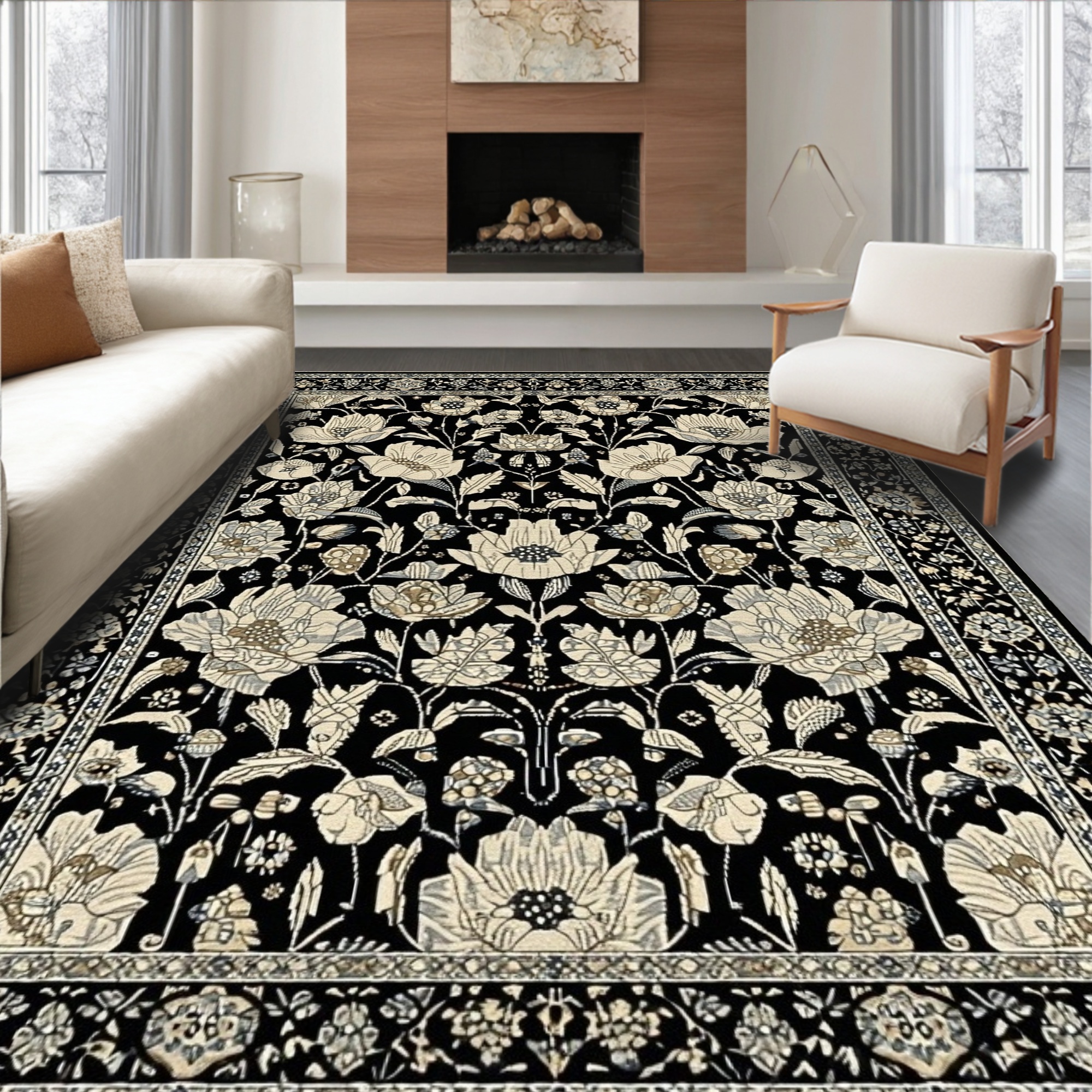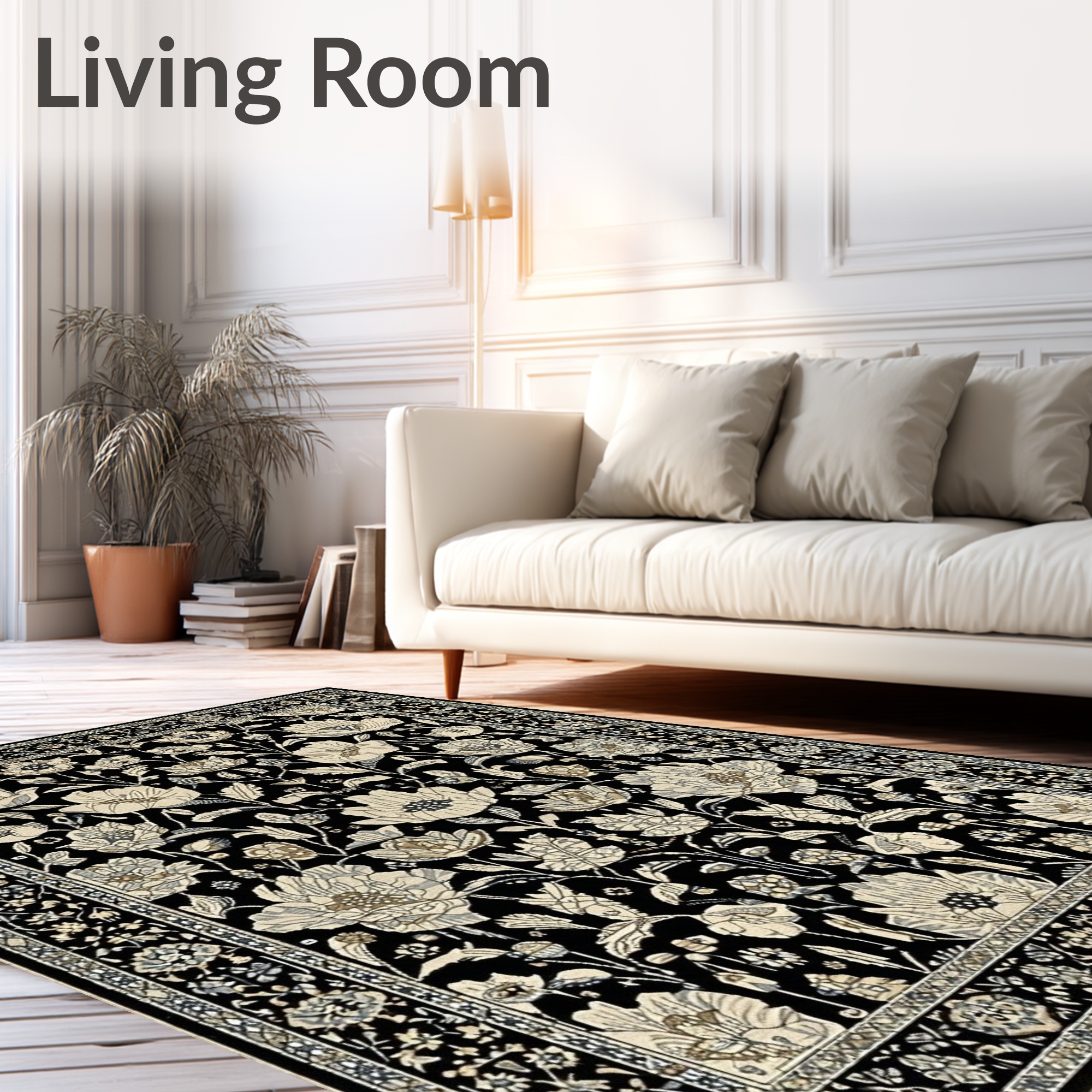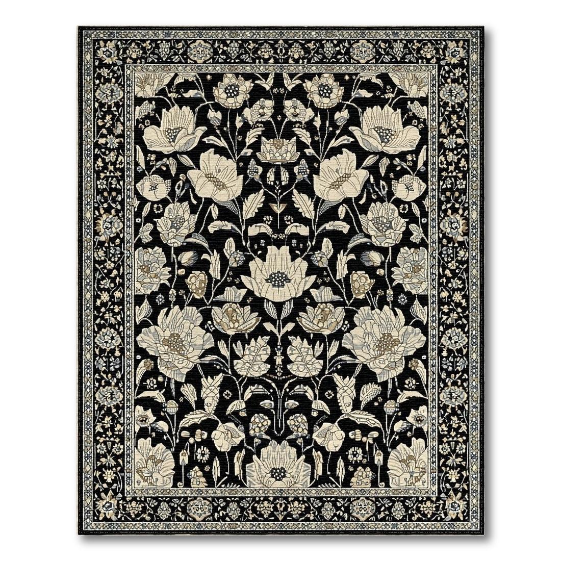 Black Floral Elegant Rug