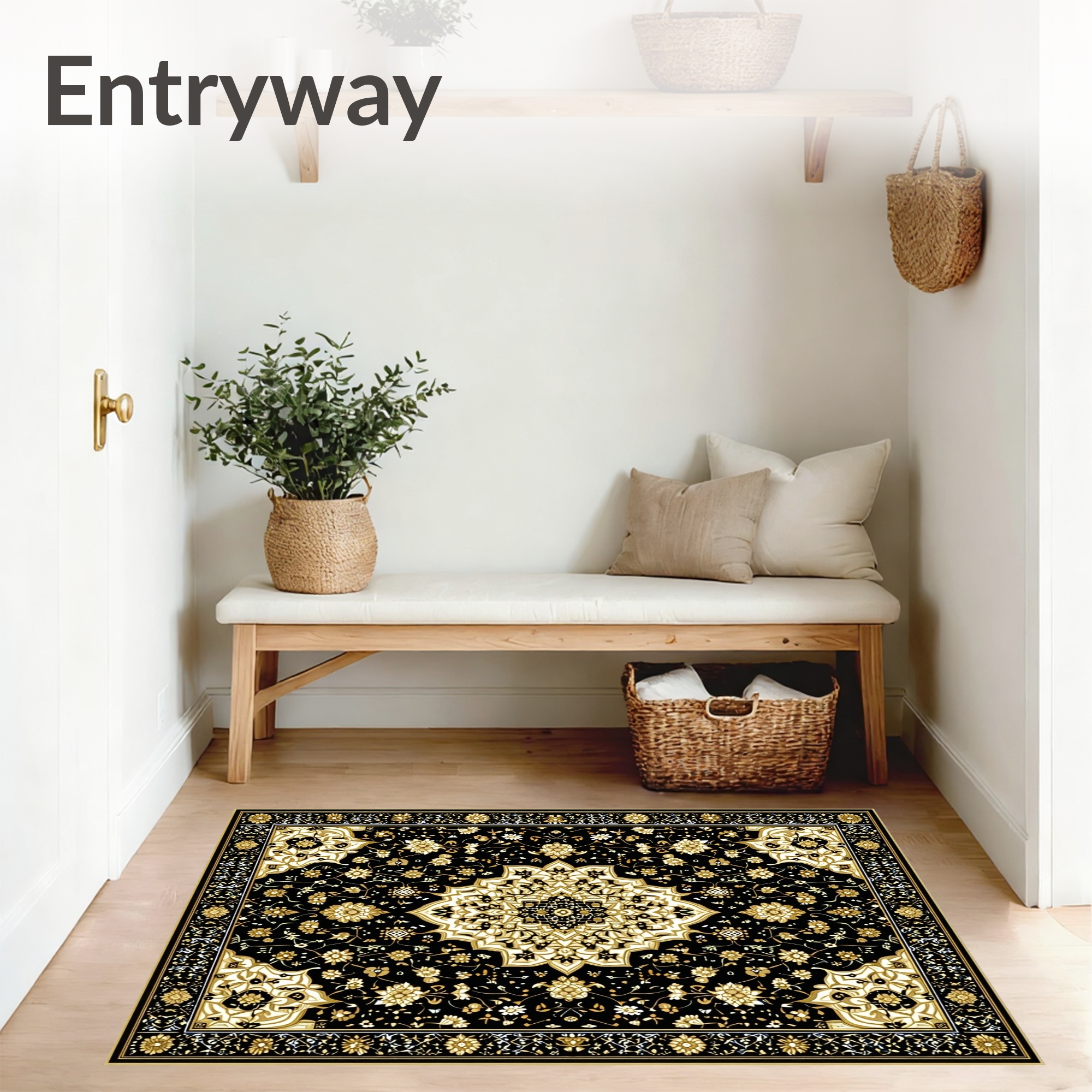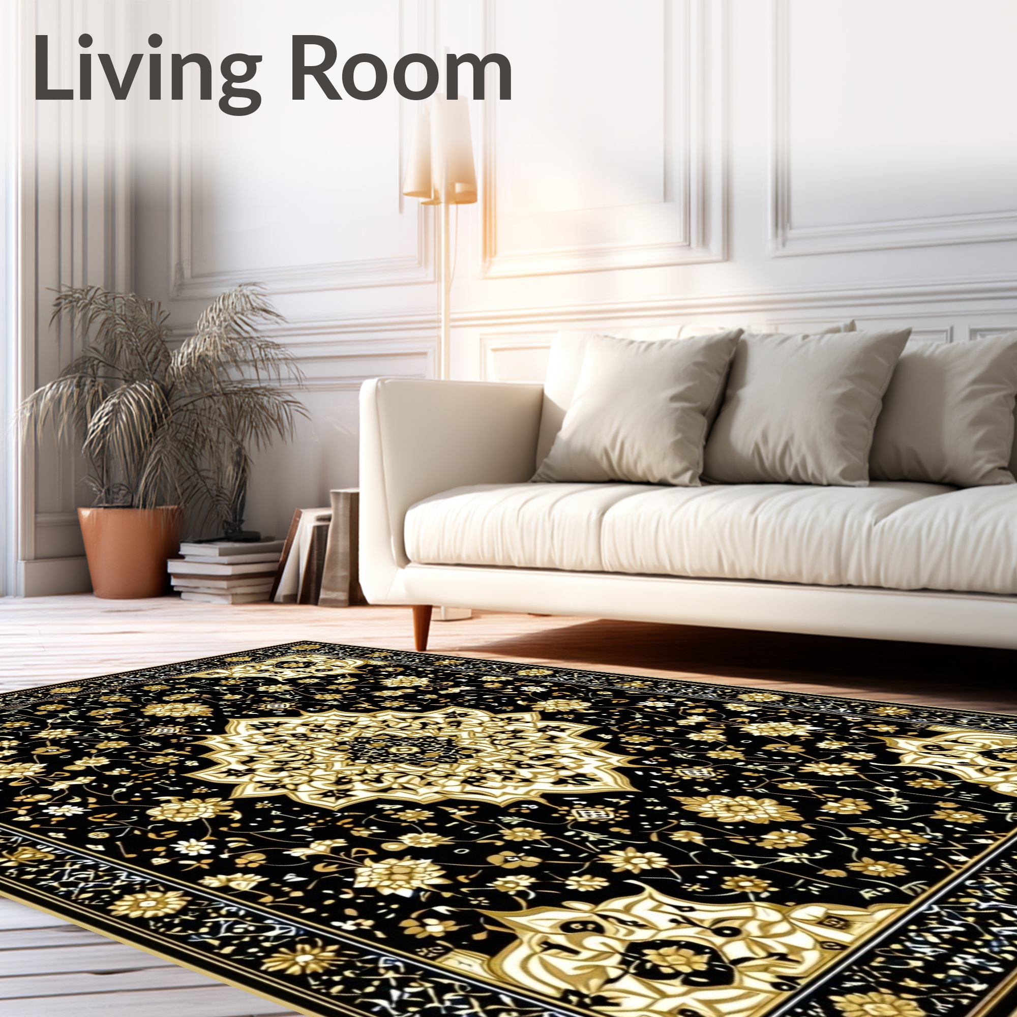 Black & Gold Ornate Elegant Rug