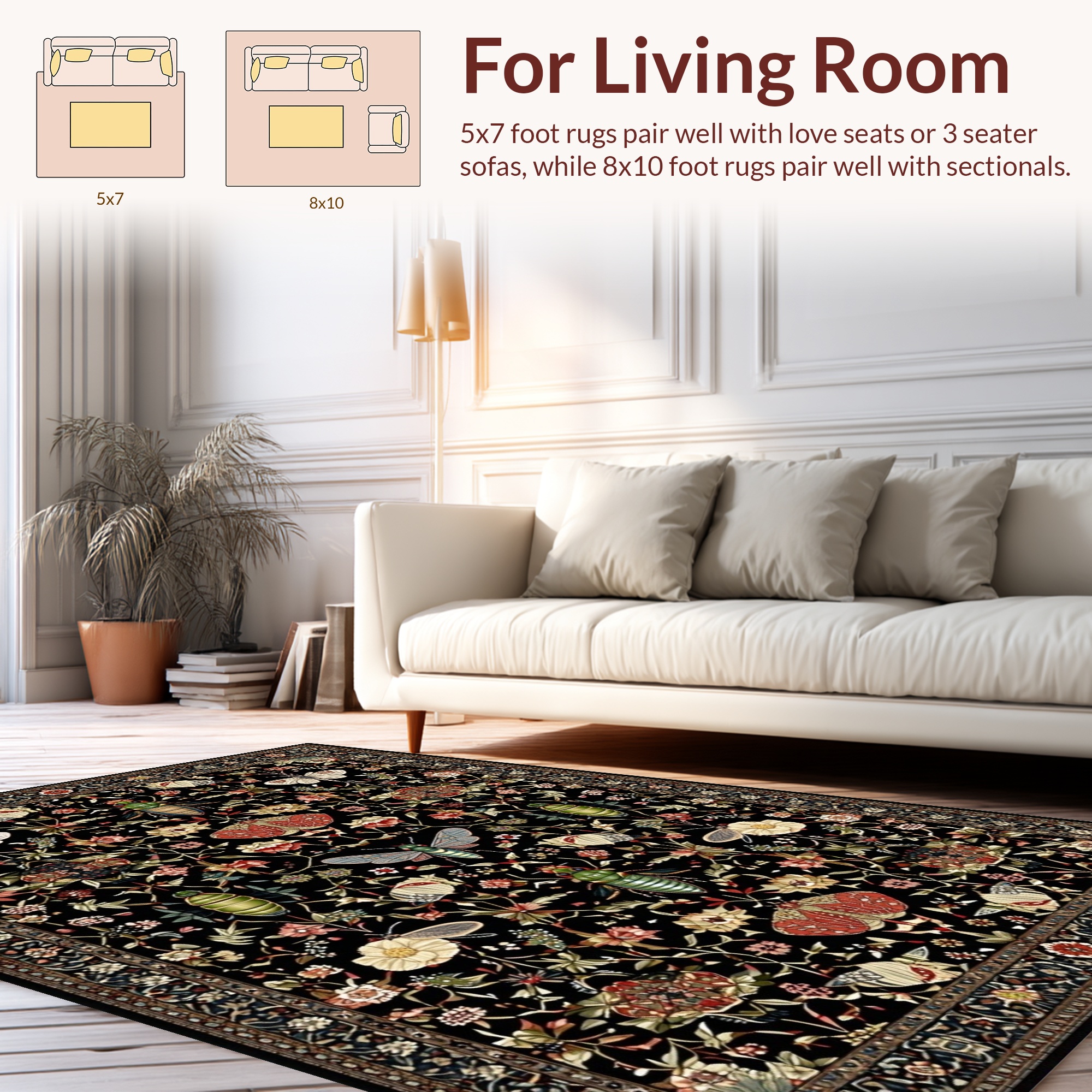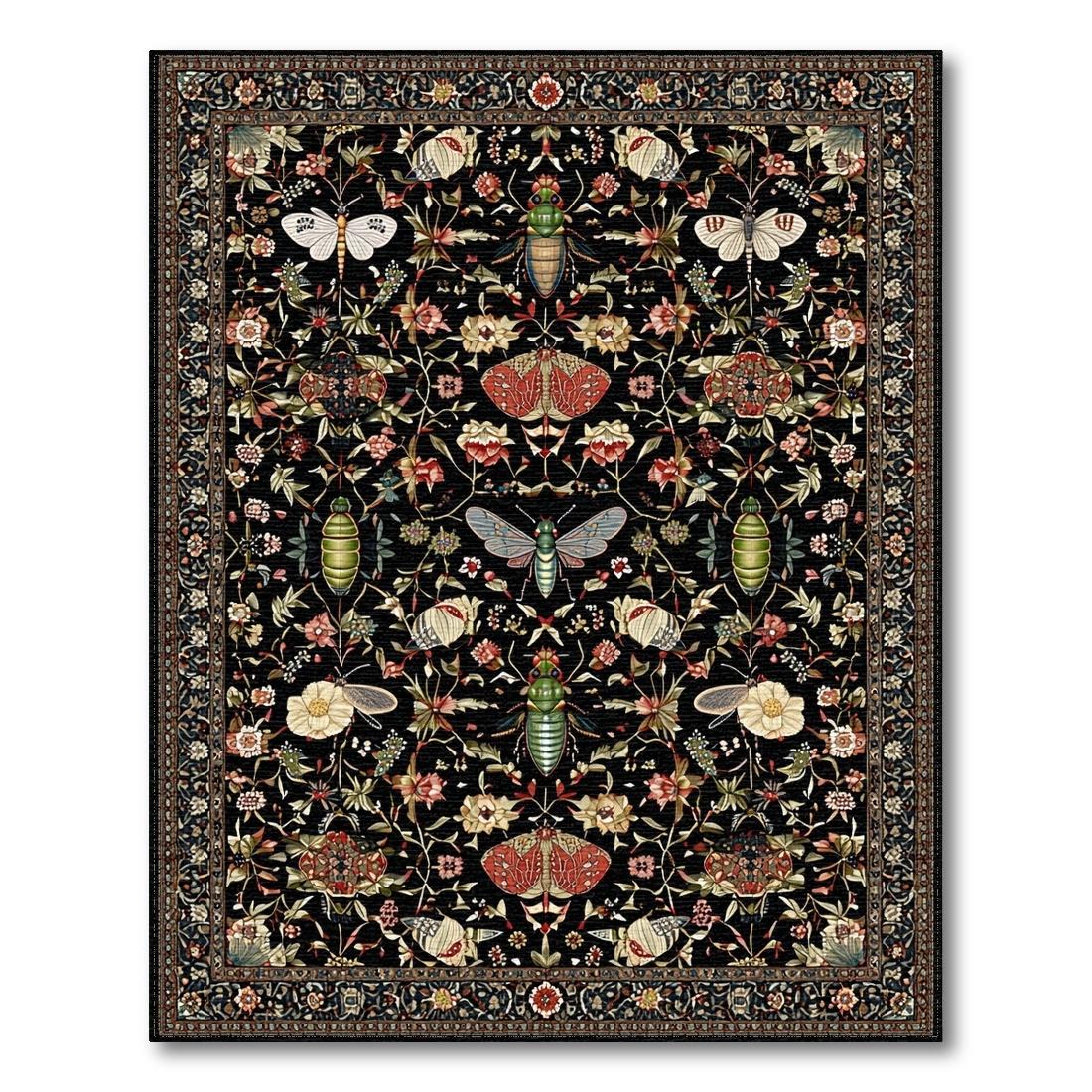 Black Vibrant Floral-Insect Rug