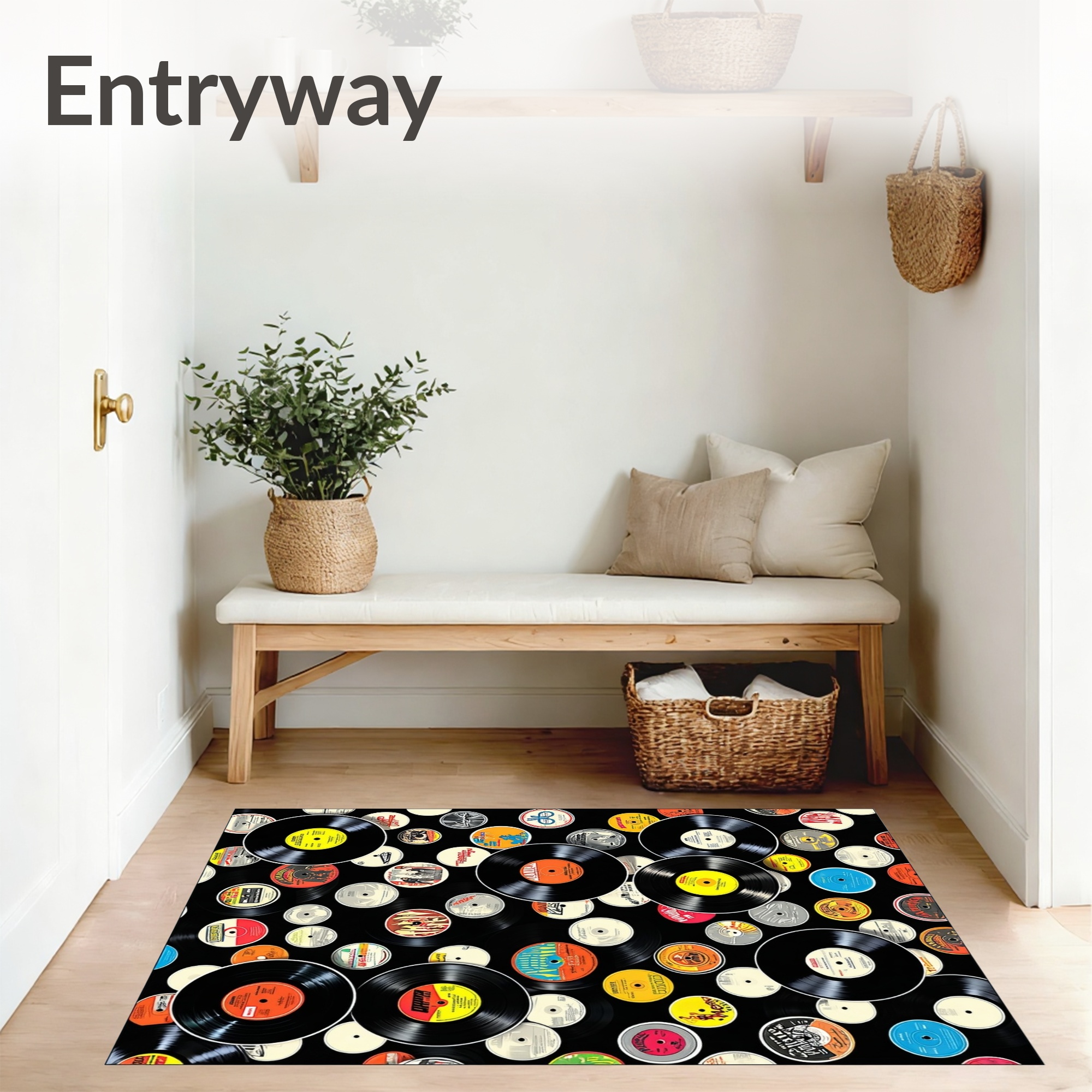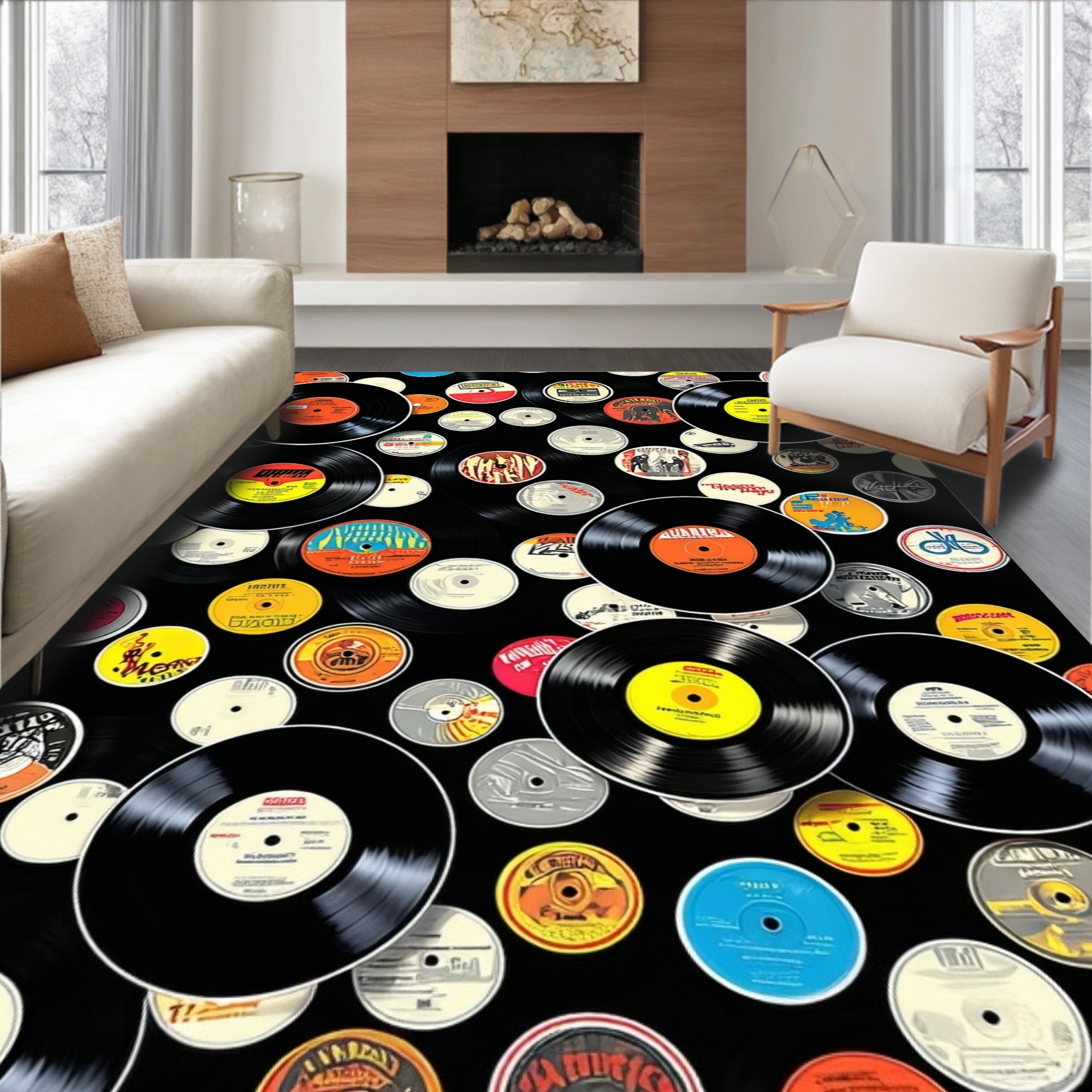 Black Vinyl Record Retro Rug