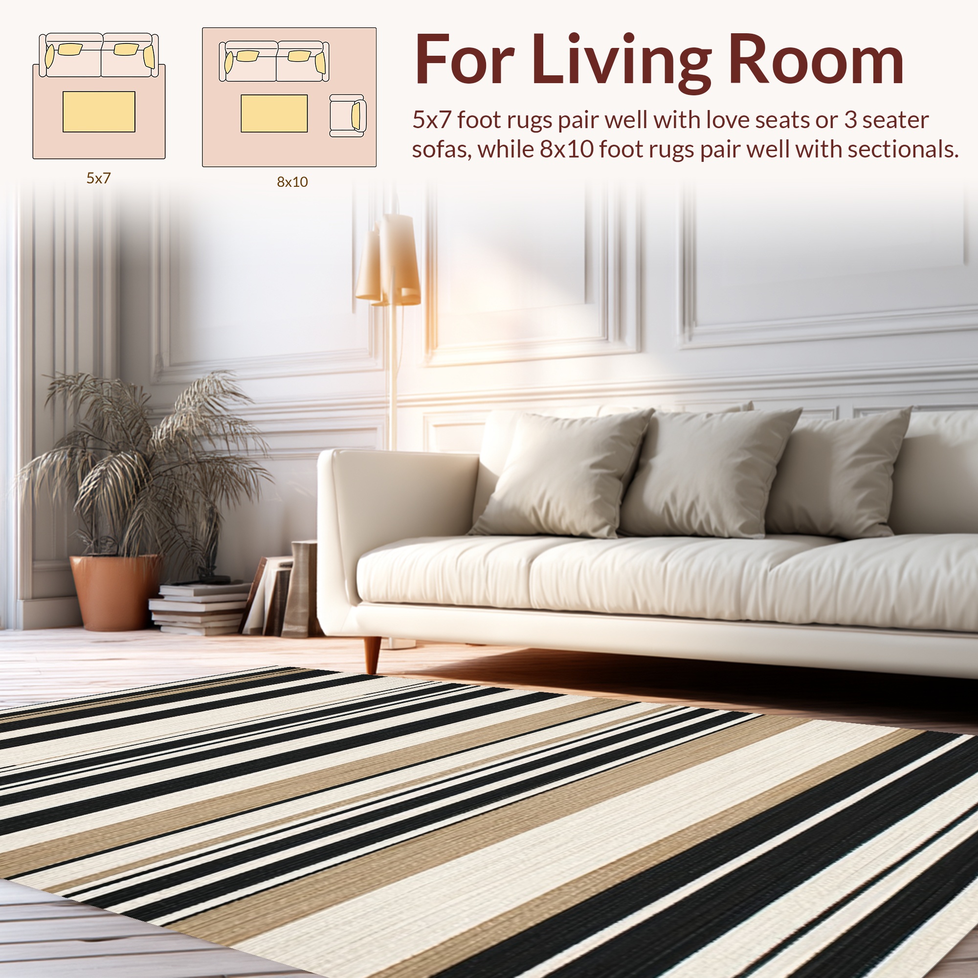 Black White Beige Striped Modern Rug