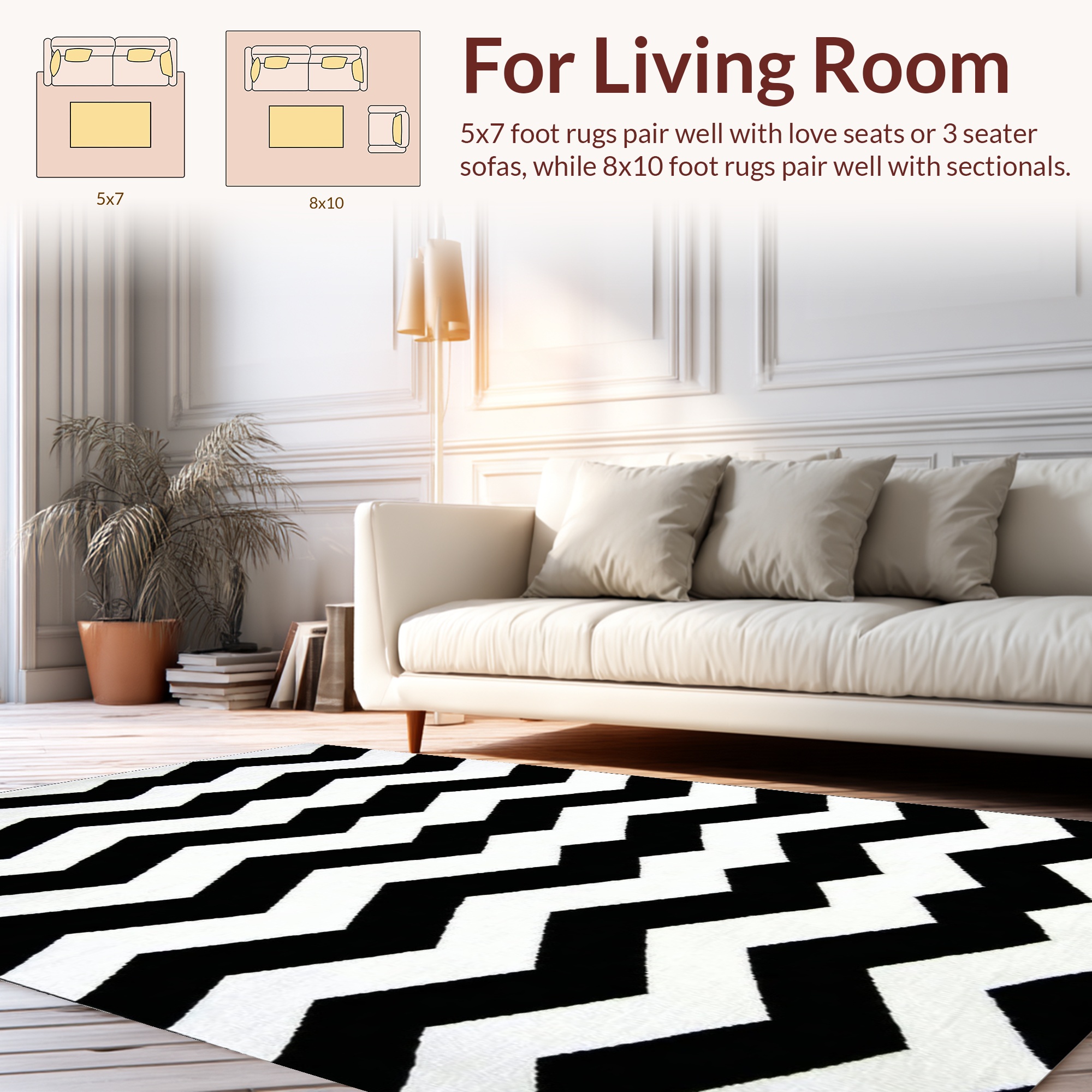 Black White Chevron Modern Rug