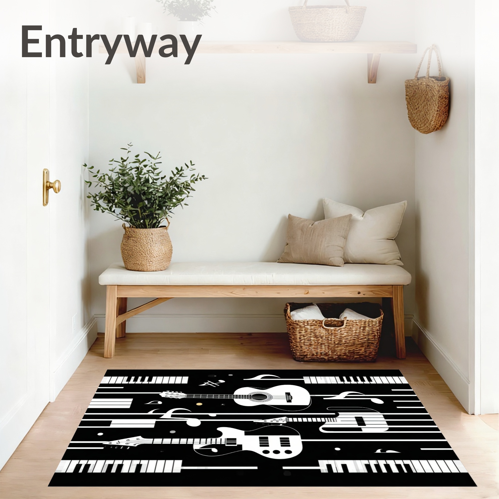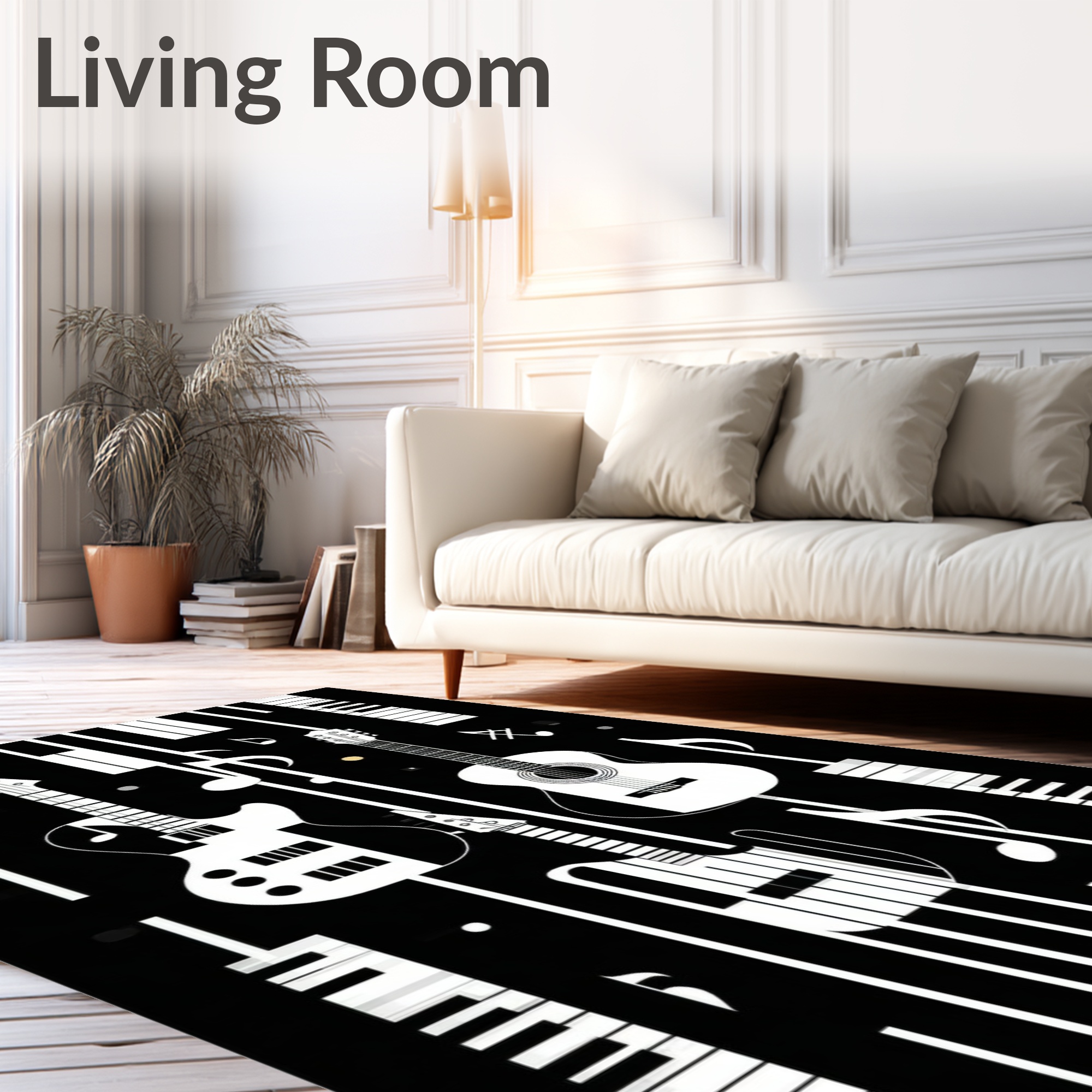Black & White Music-Themed Vibrant Rug