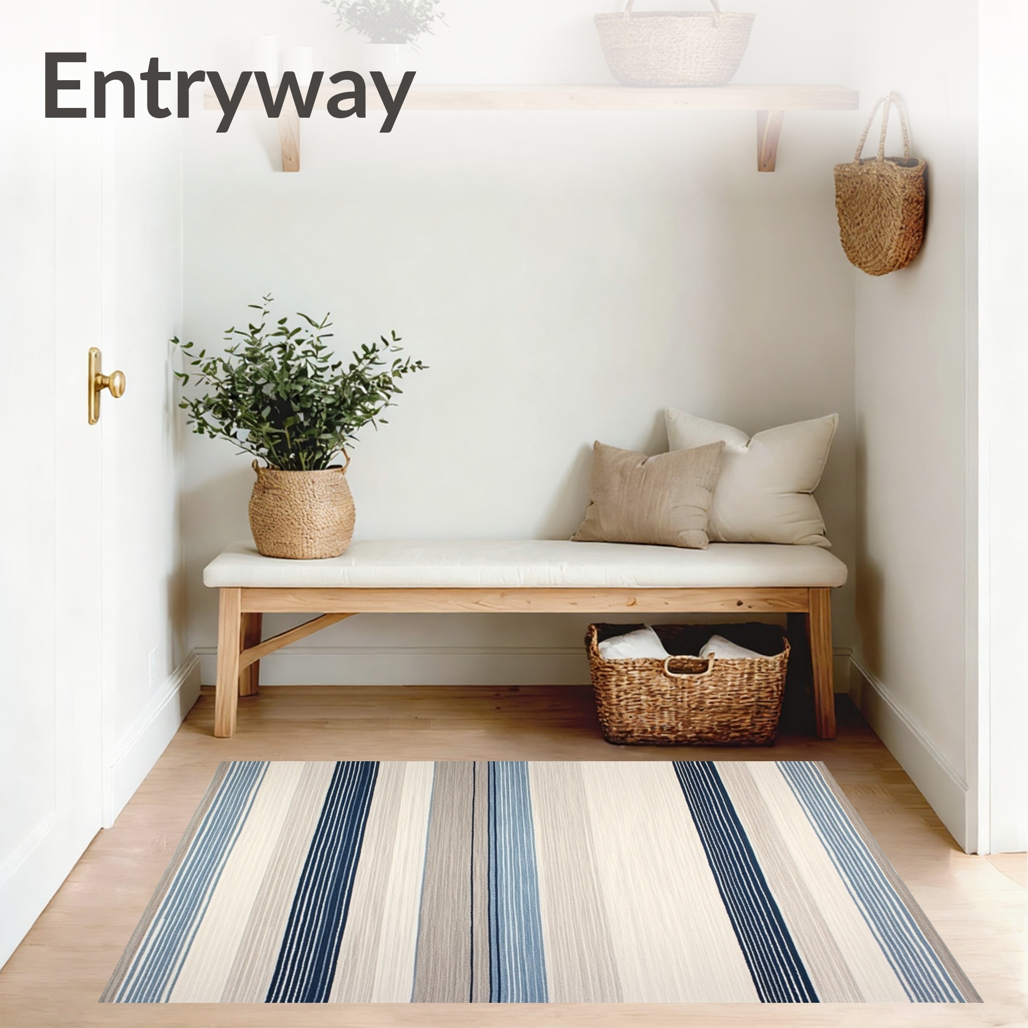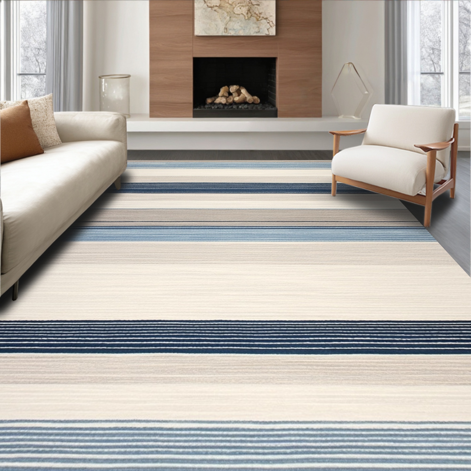 Blue Beige Striped Coastal Rug