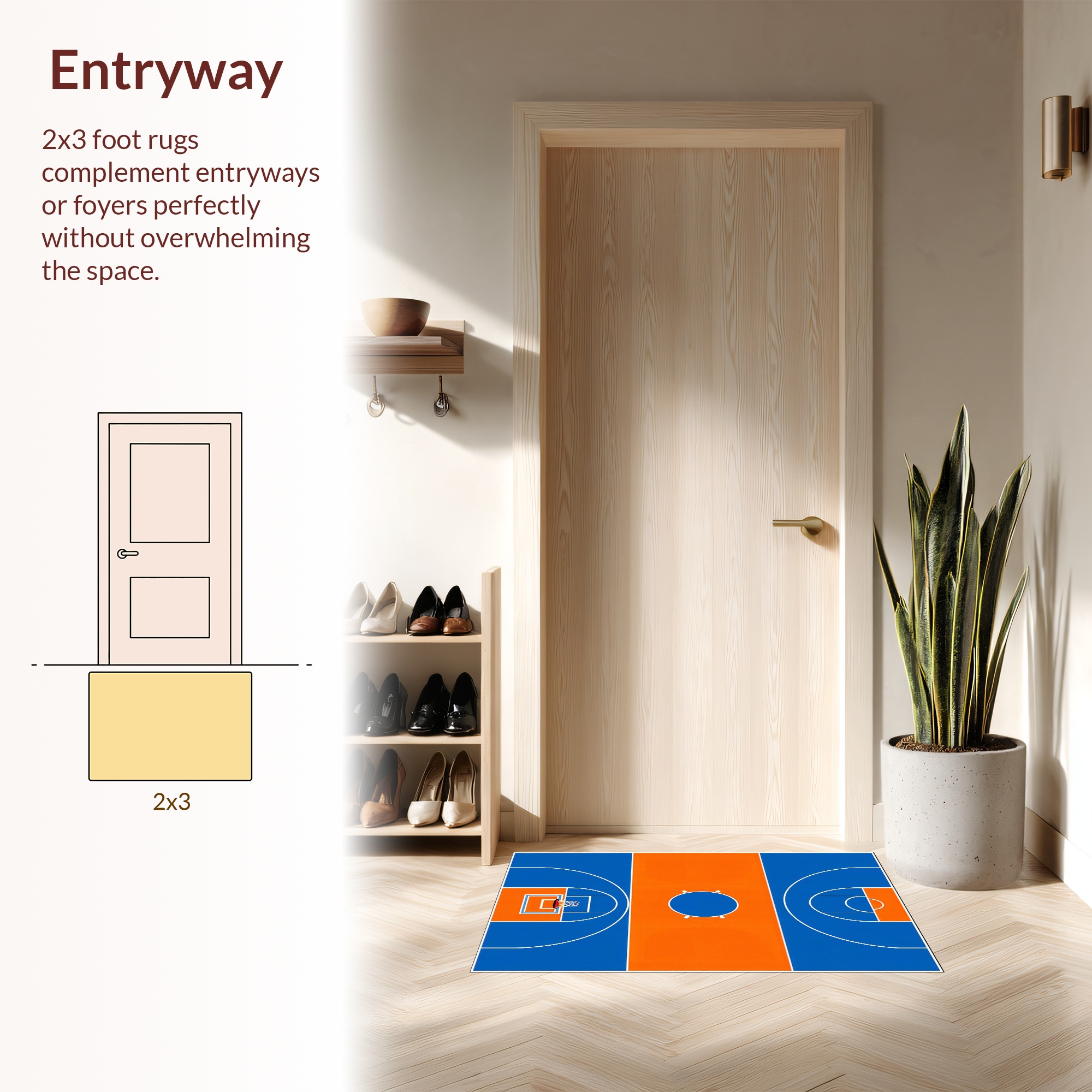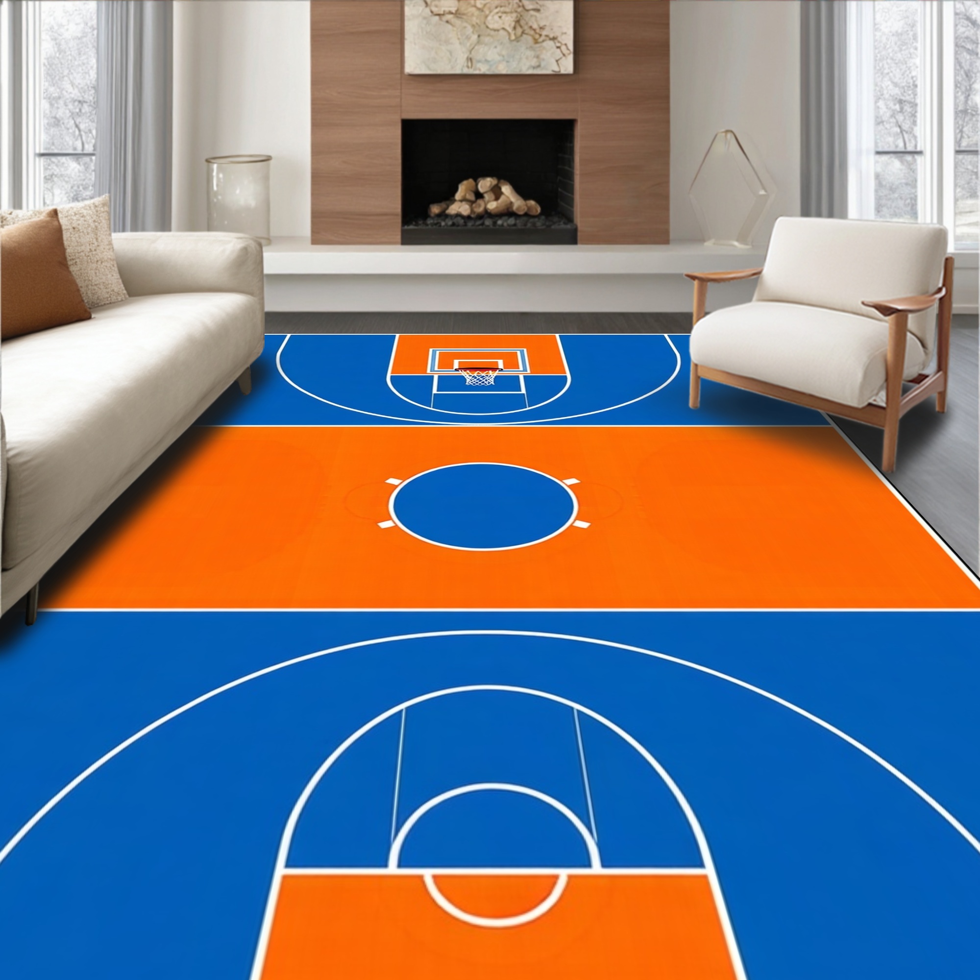 Blue Orange Basketball Court Energetic Rug