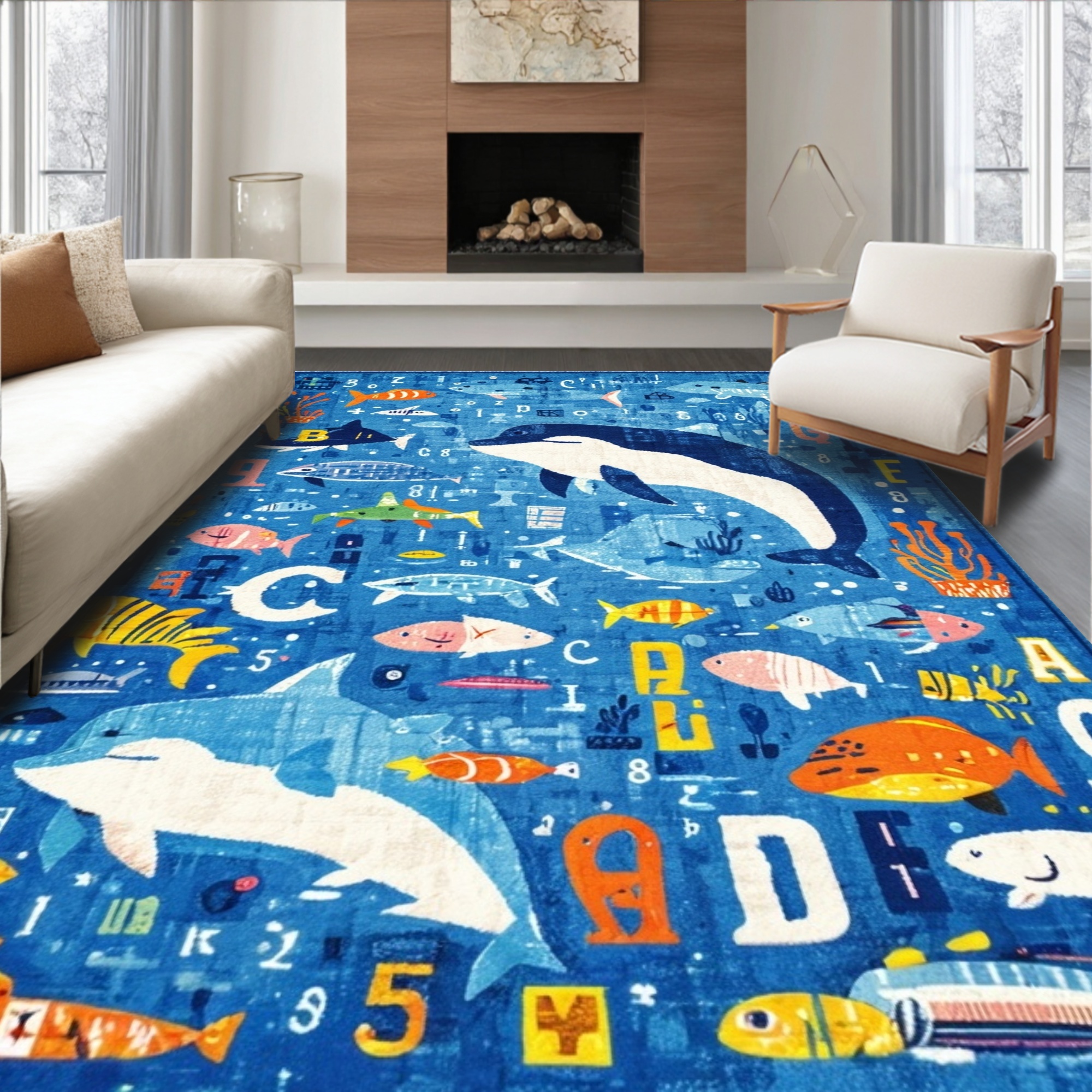 Blue Playful Ocean Life Rug