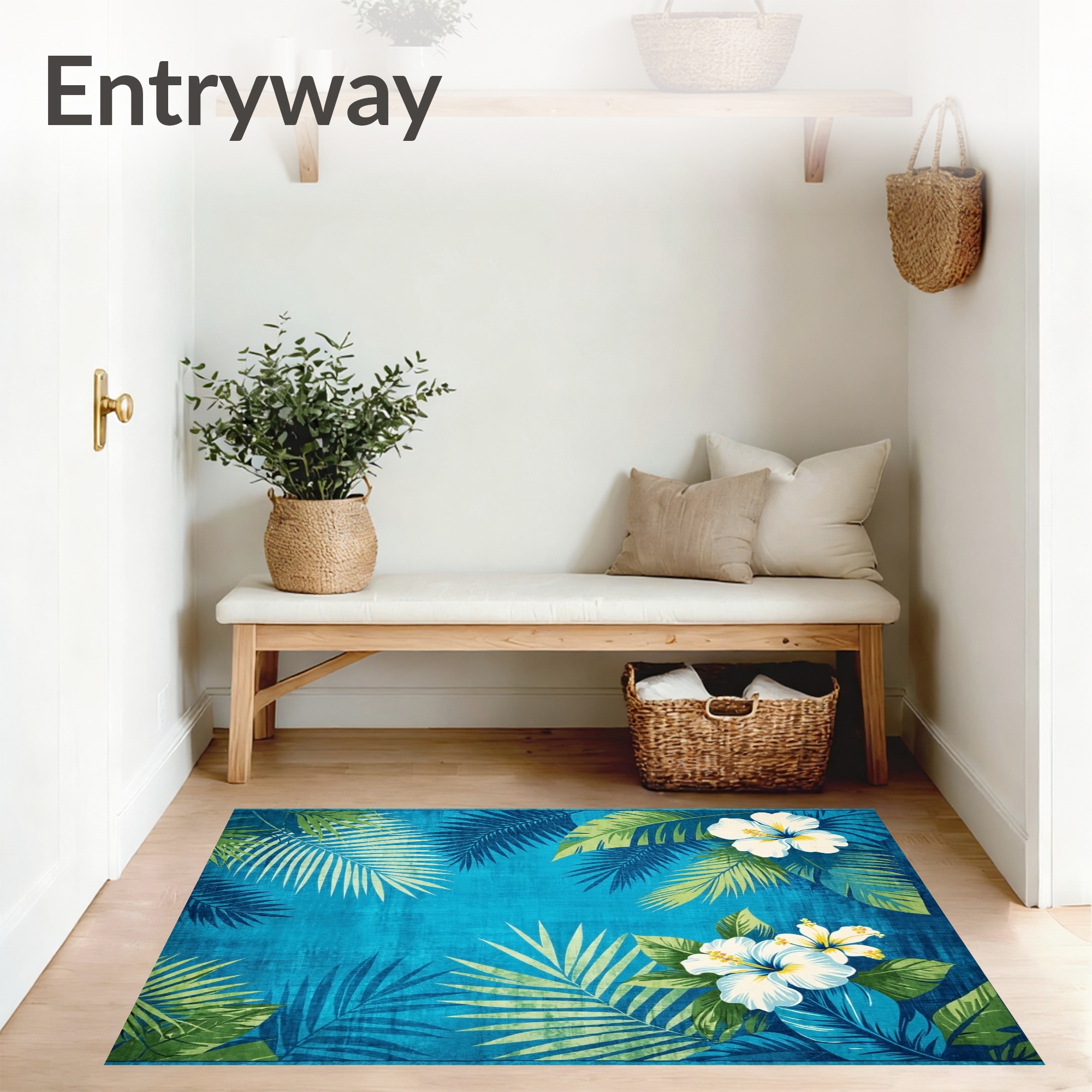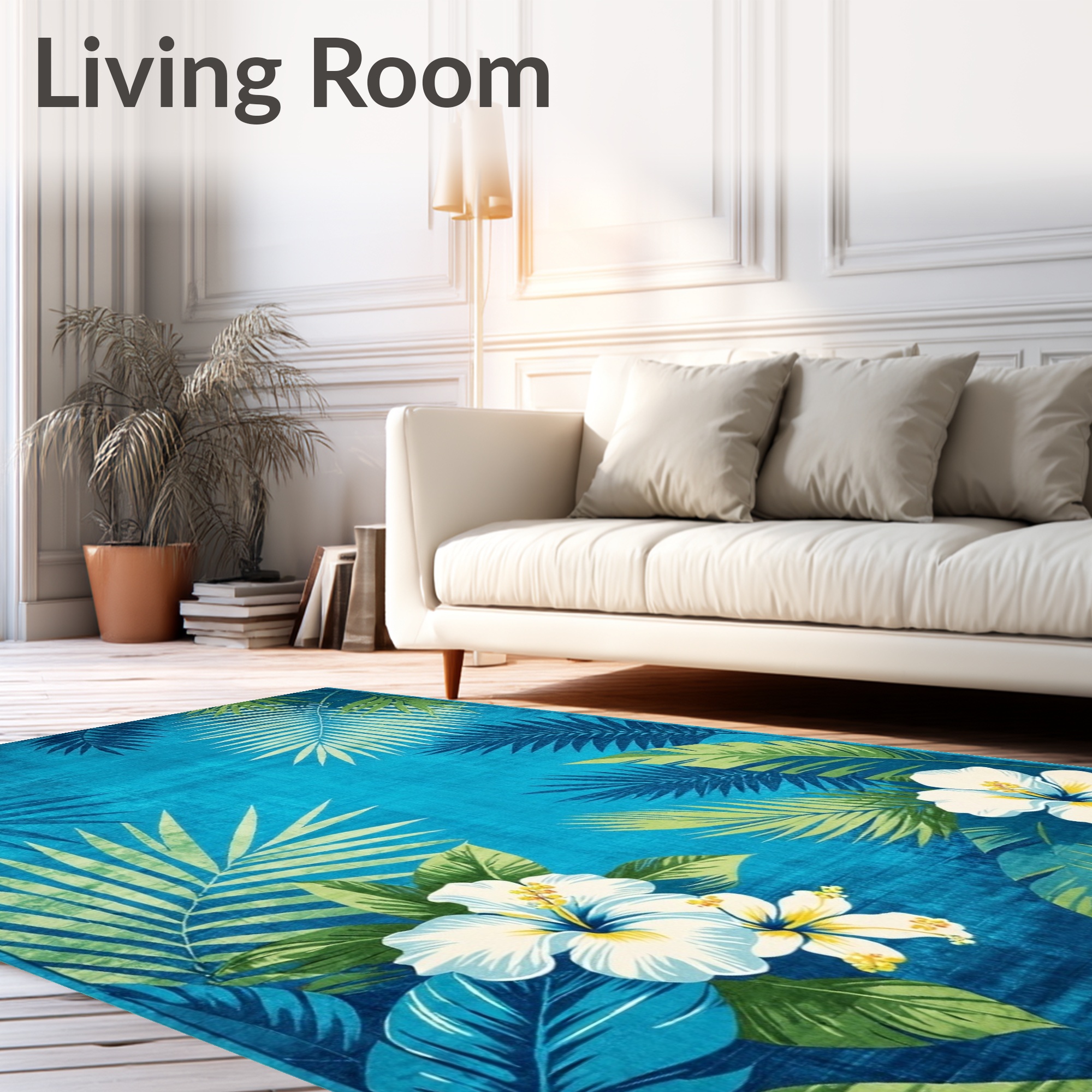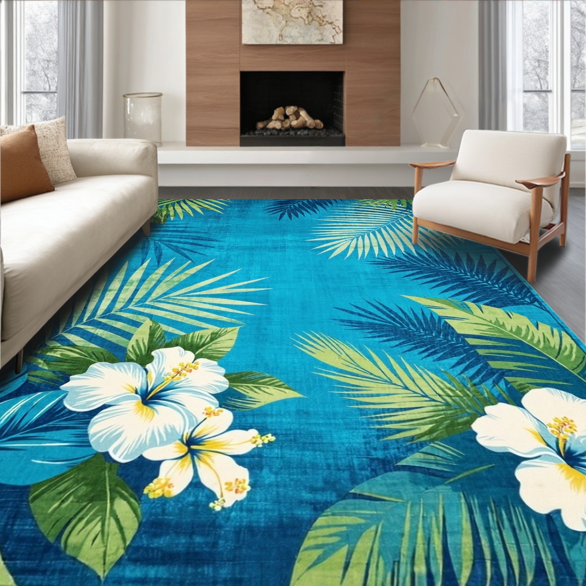 Blue Tropical Hibiscus Palm Rug