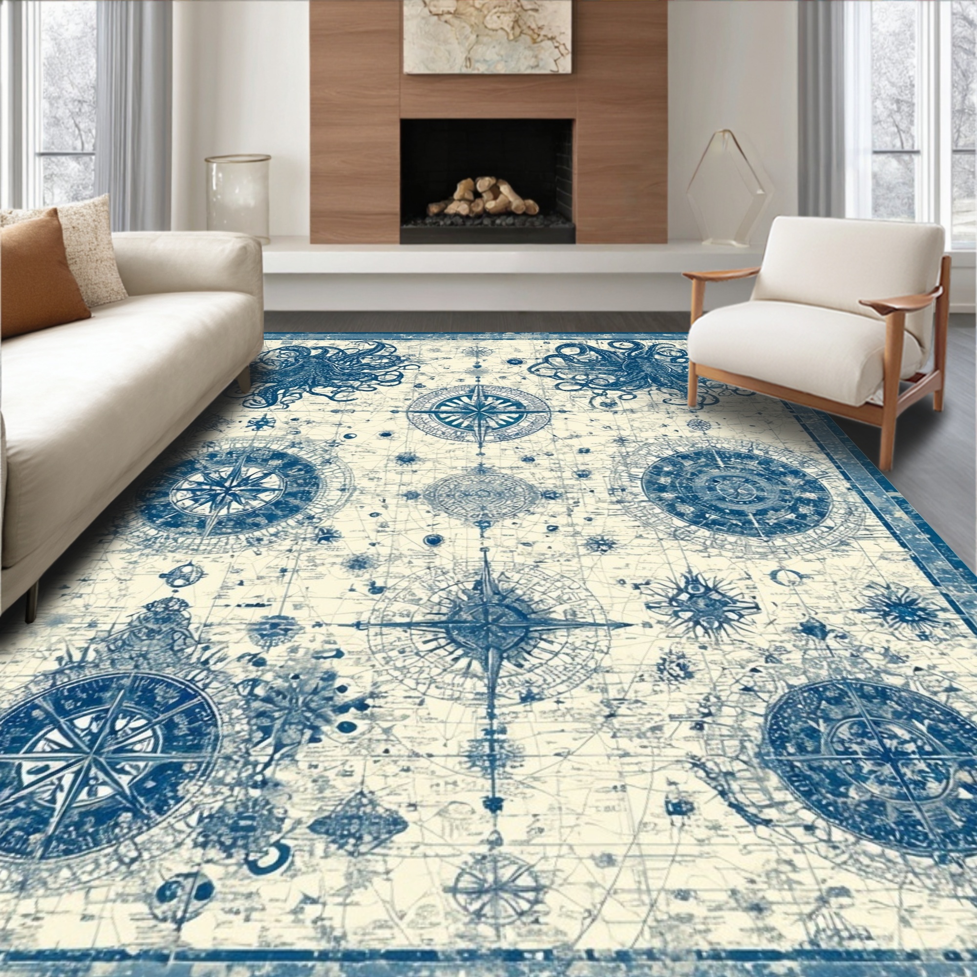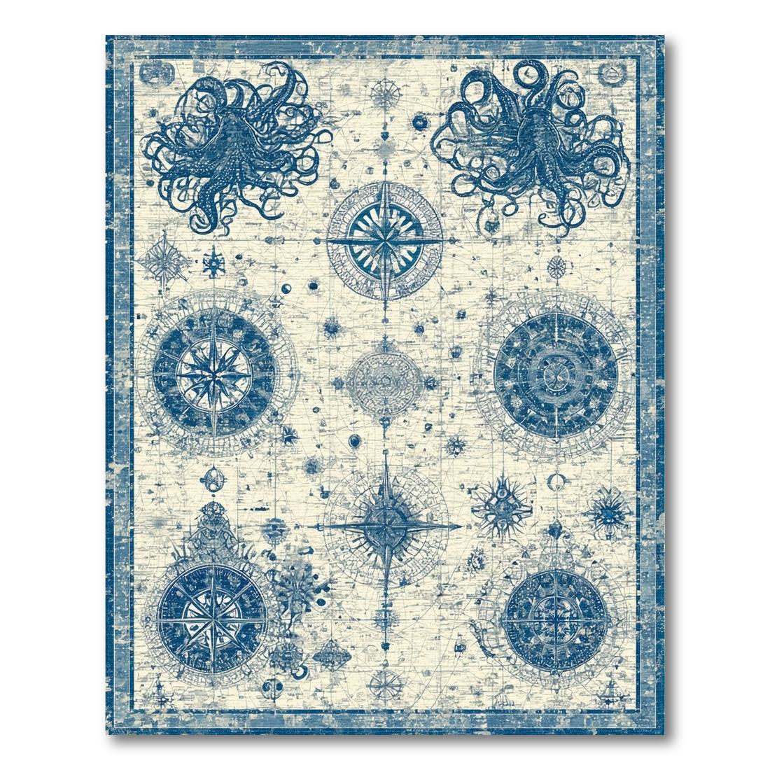 Blue Vintage Nautical Adventure Rug