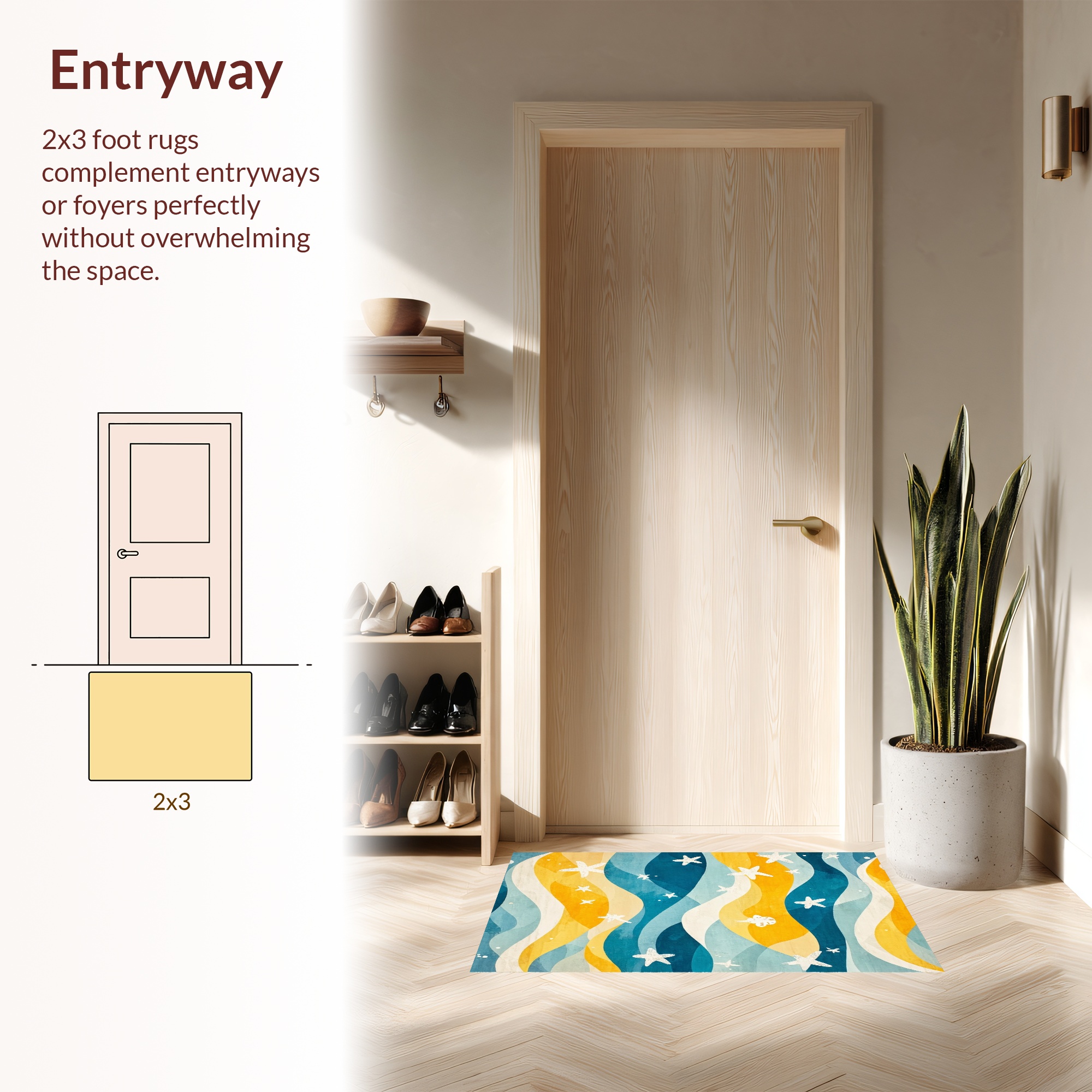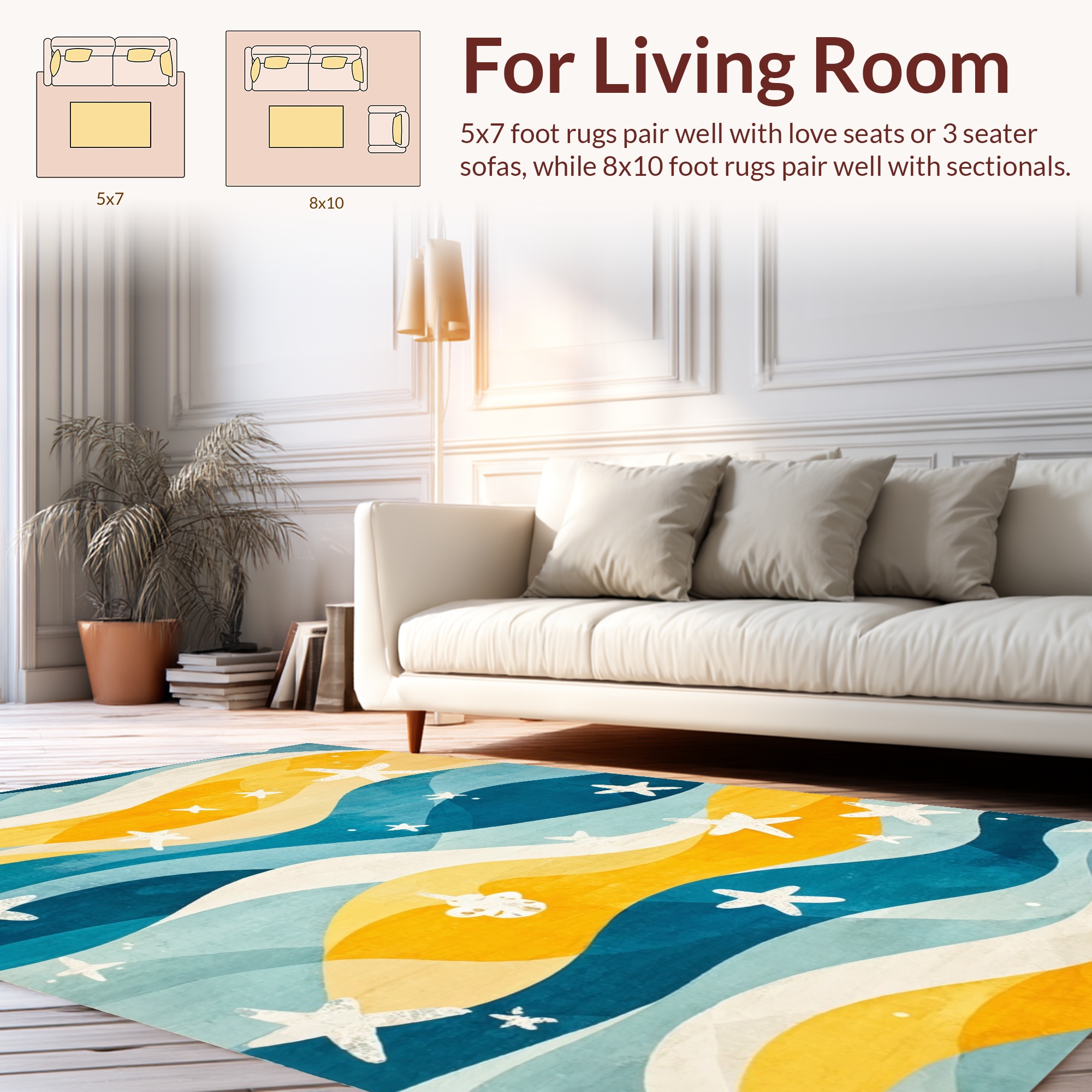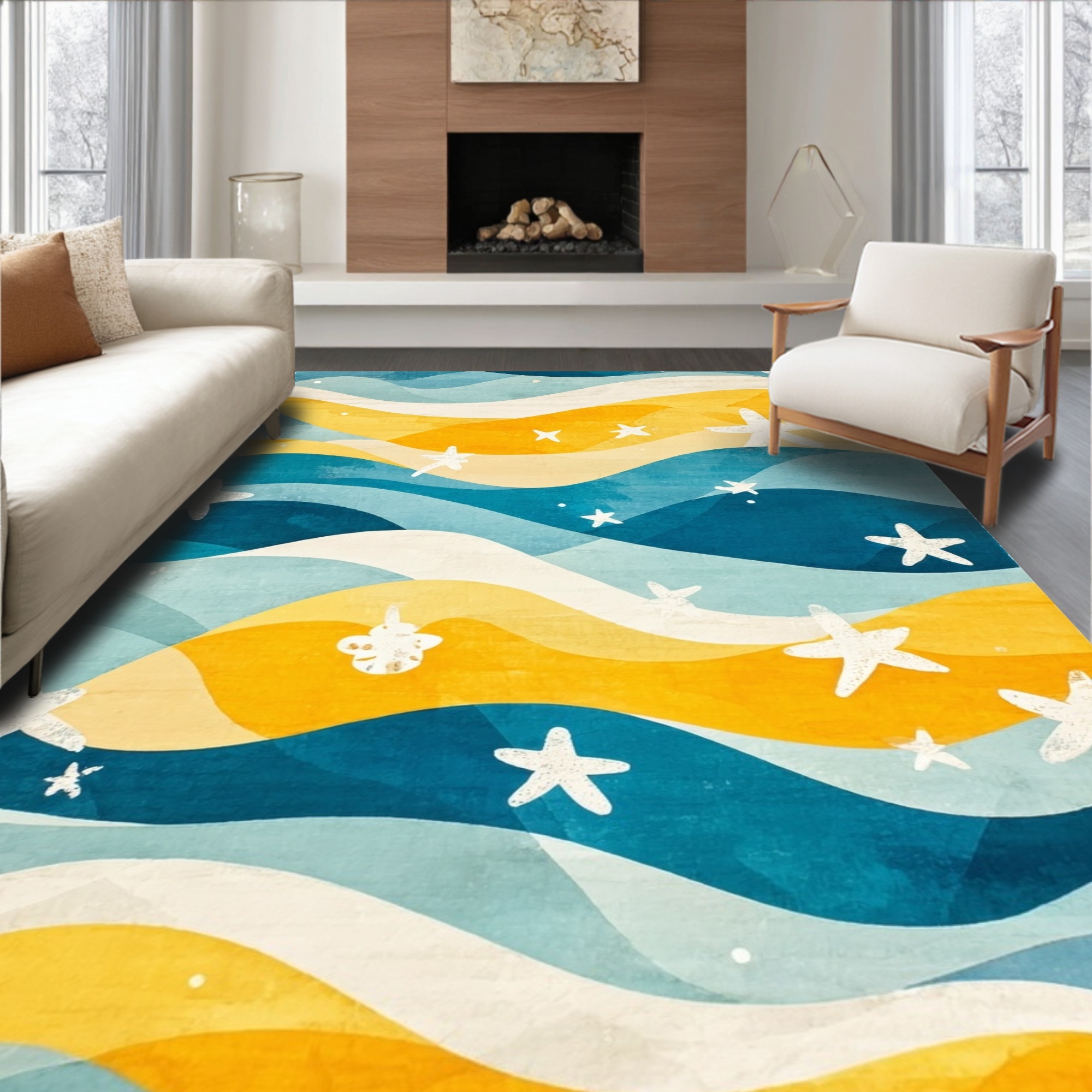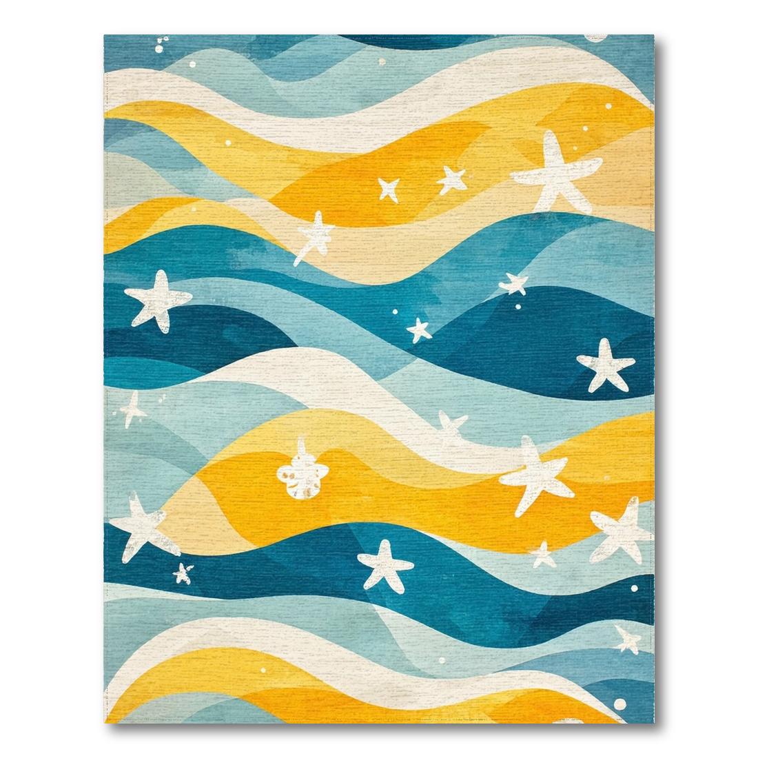 Blue Yellow Wavy Starfish Coastal Rug