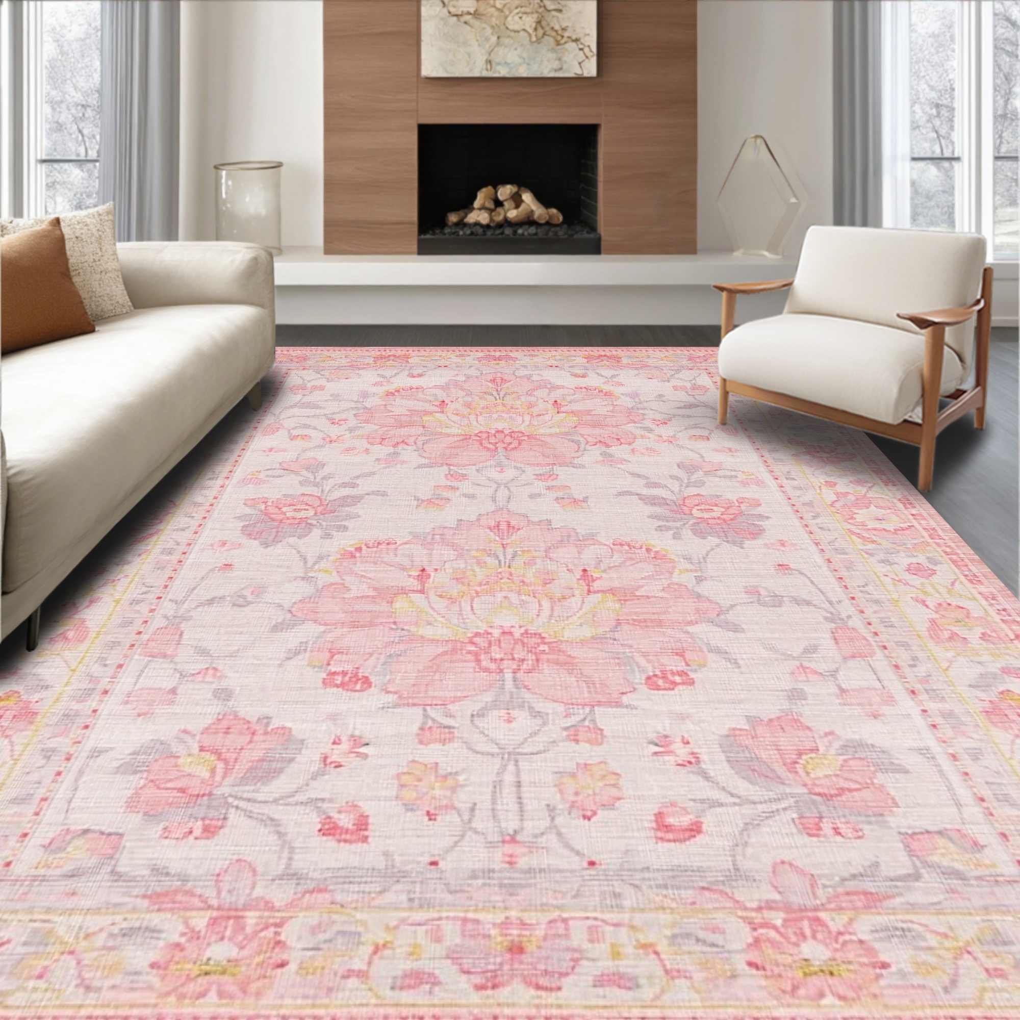 Blush Pink Floral Romantic Rug
