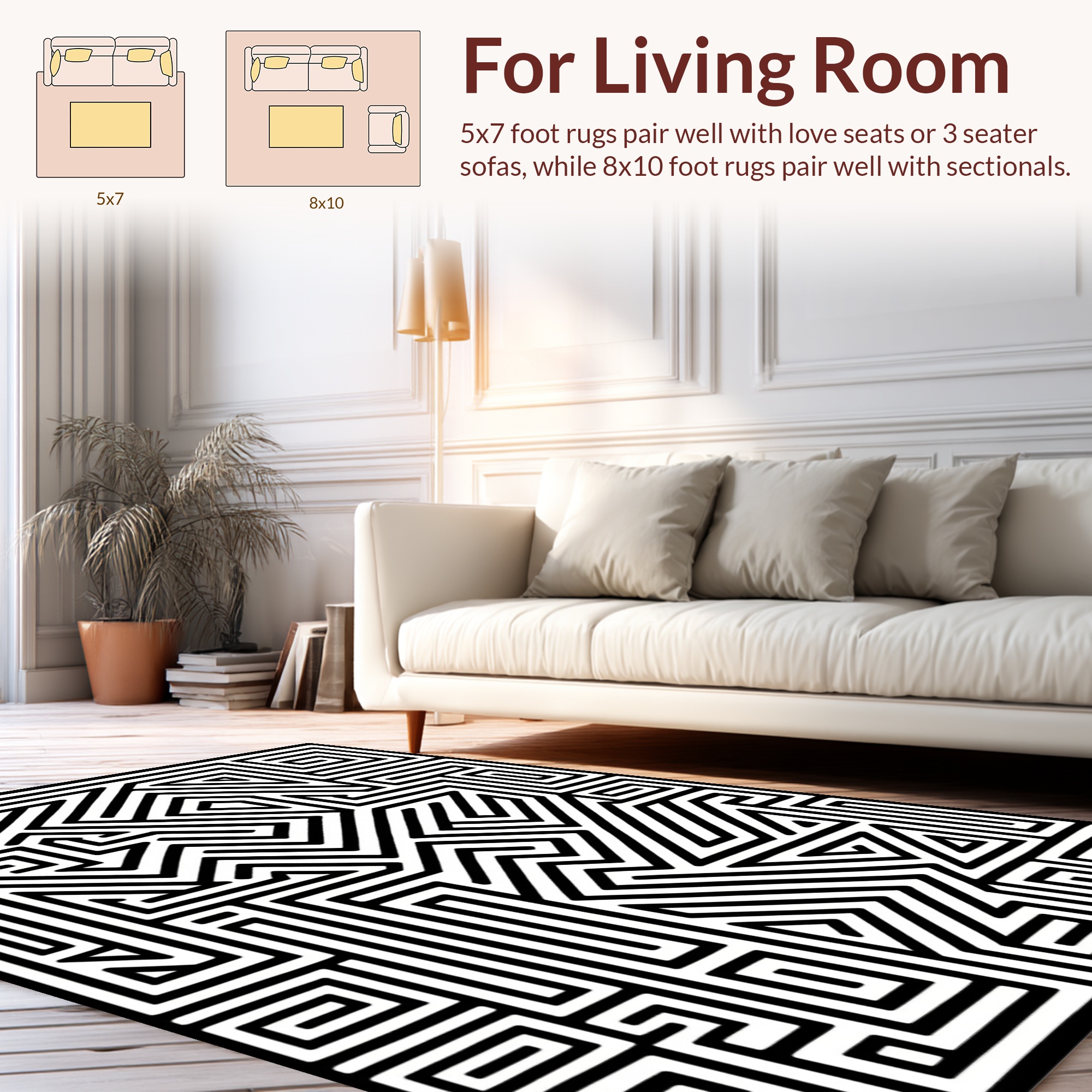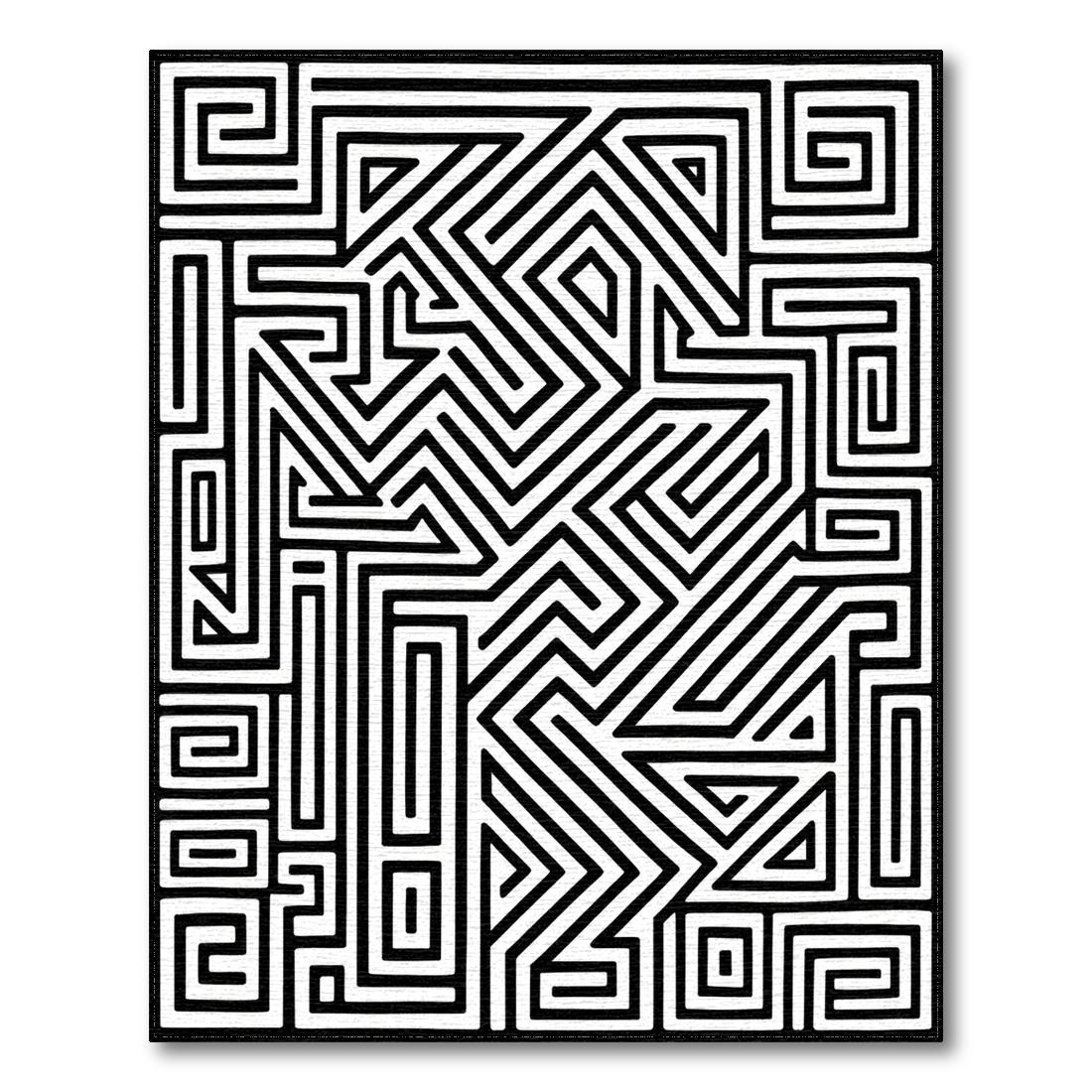 Bold Black & White Geometric Maze Rug