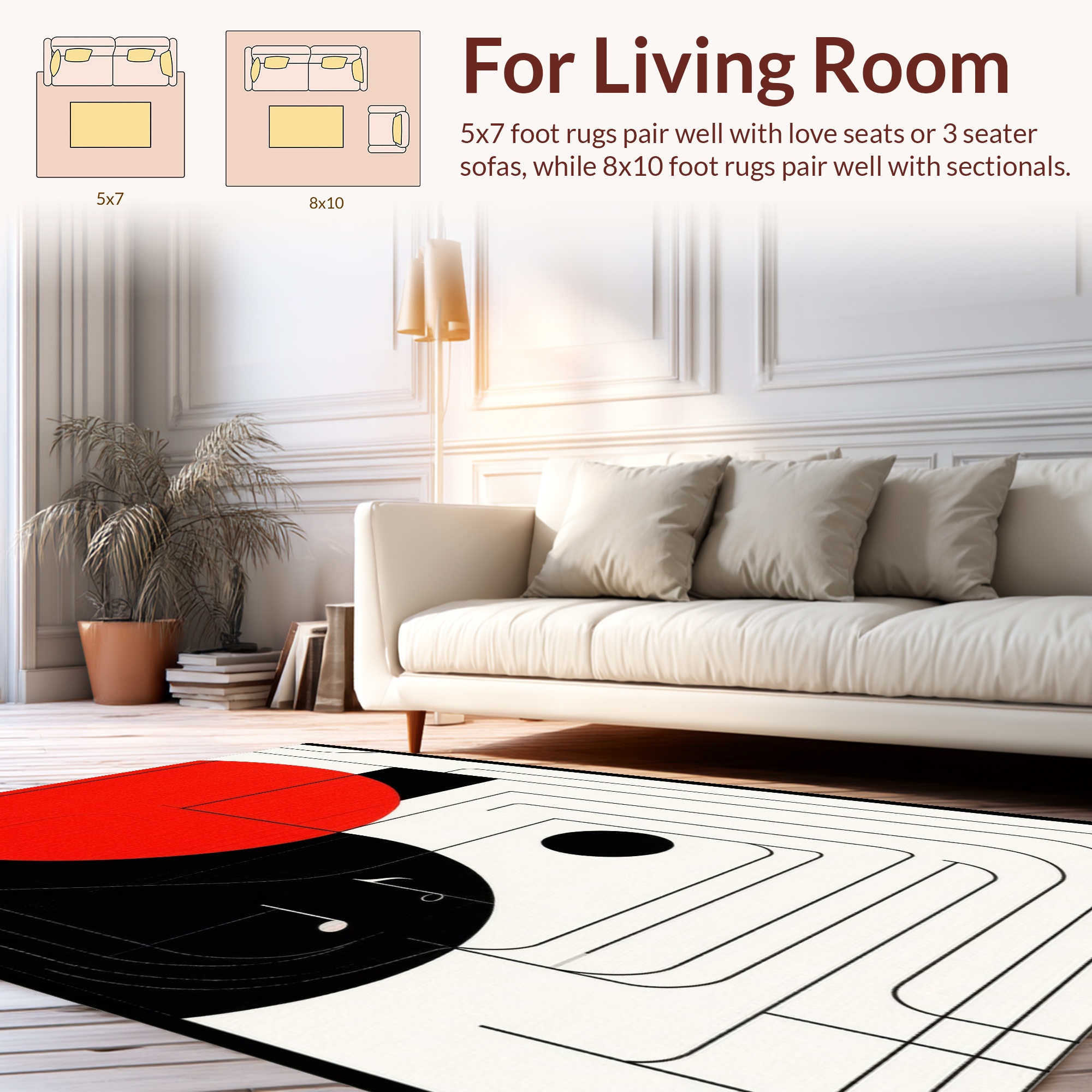 Bold Geometric Red Black White Rug