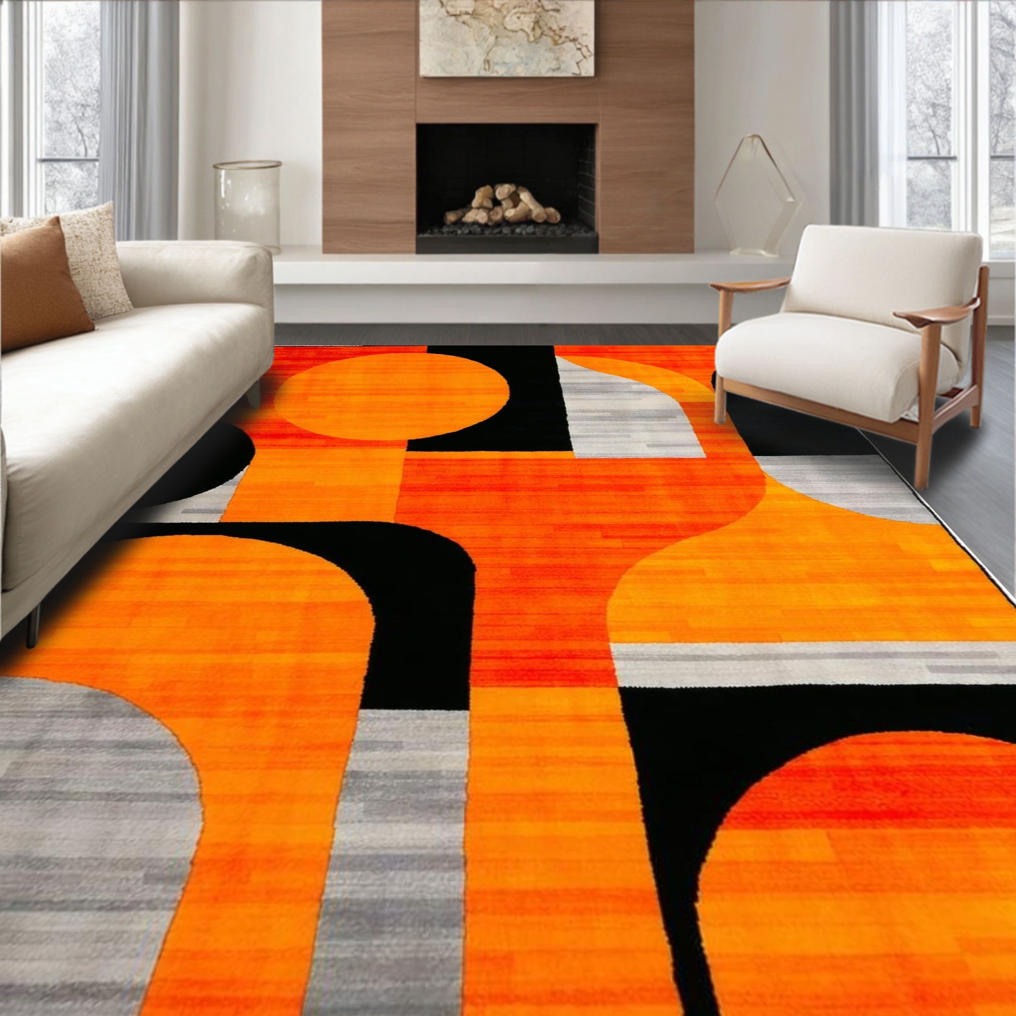 Bold Orange Geometric Energetic Rug