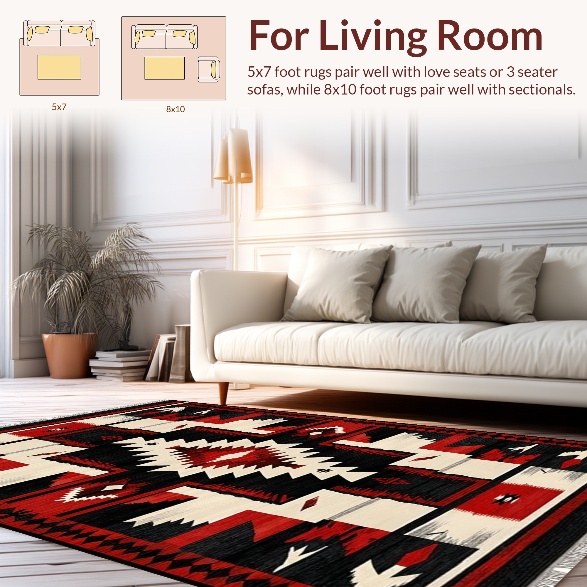 Bold Red Black Southwest Rug