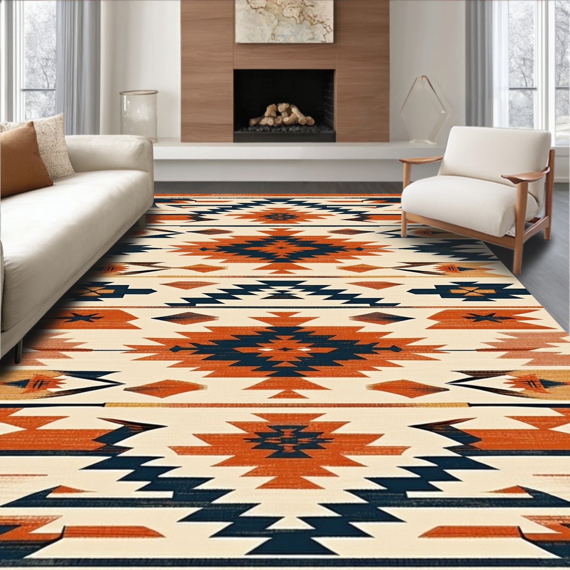 Bold Terracotta Navy Geometric Rug