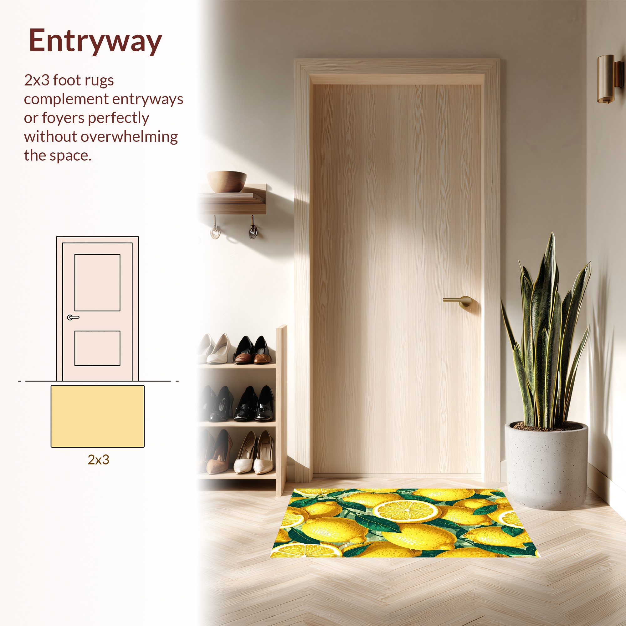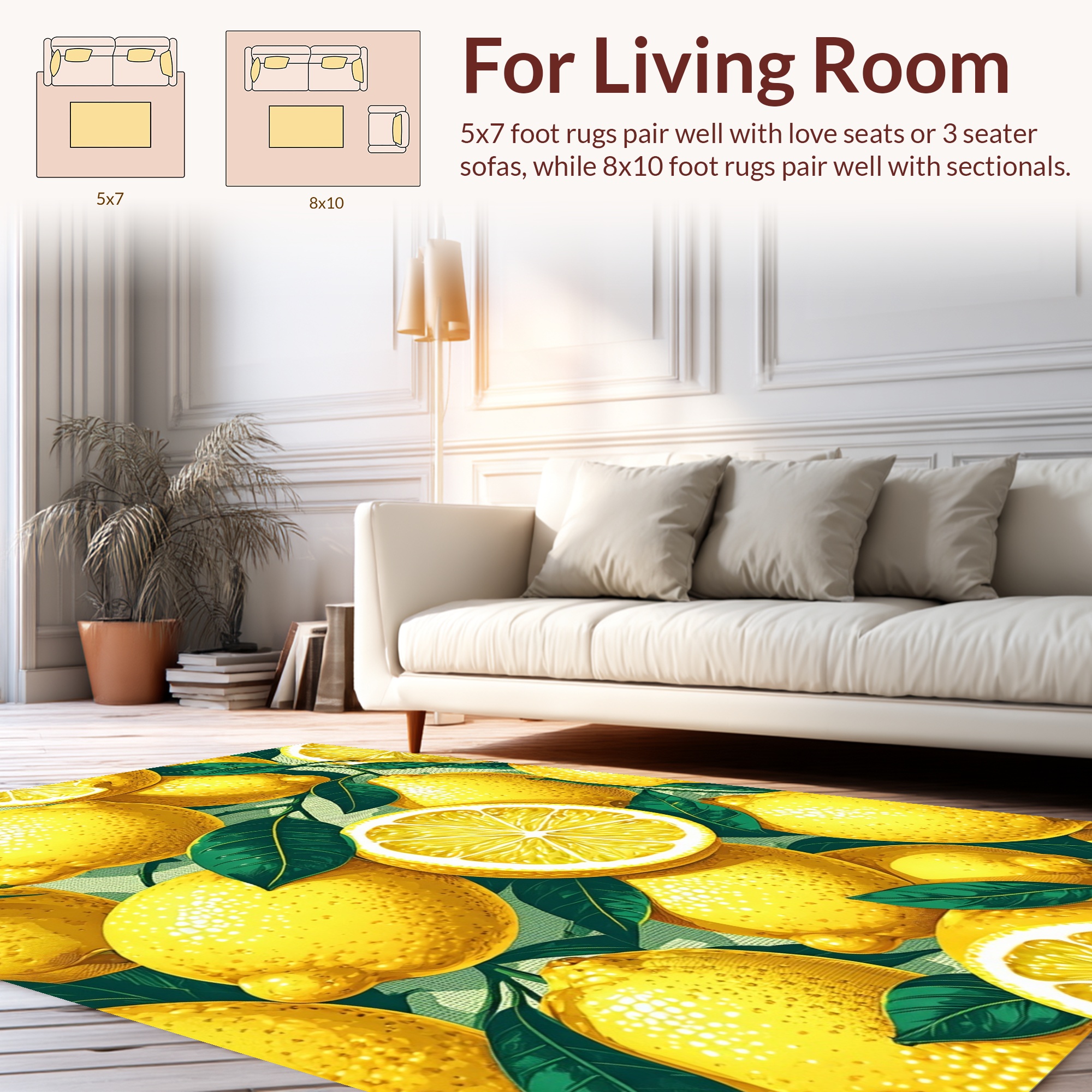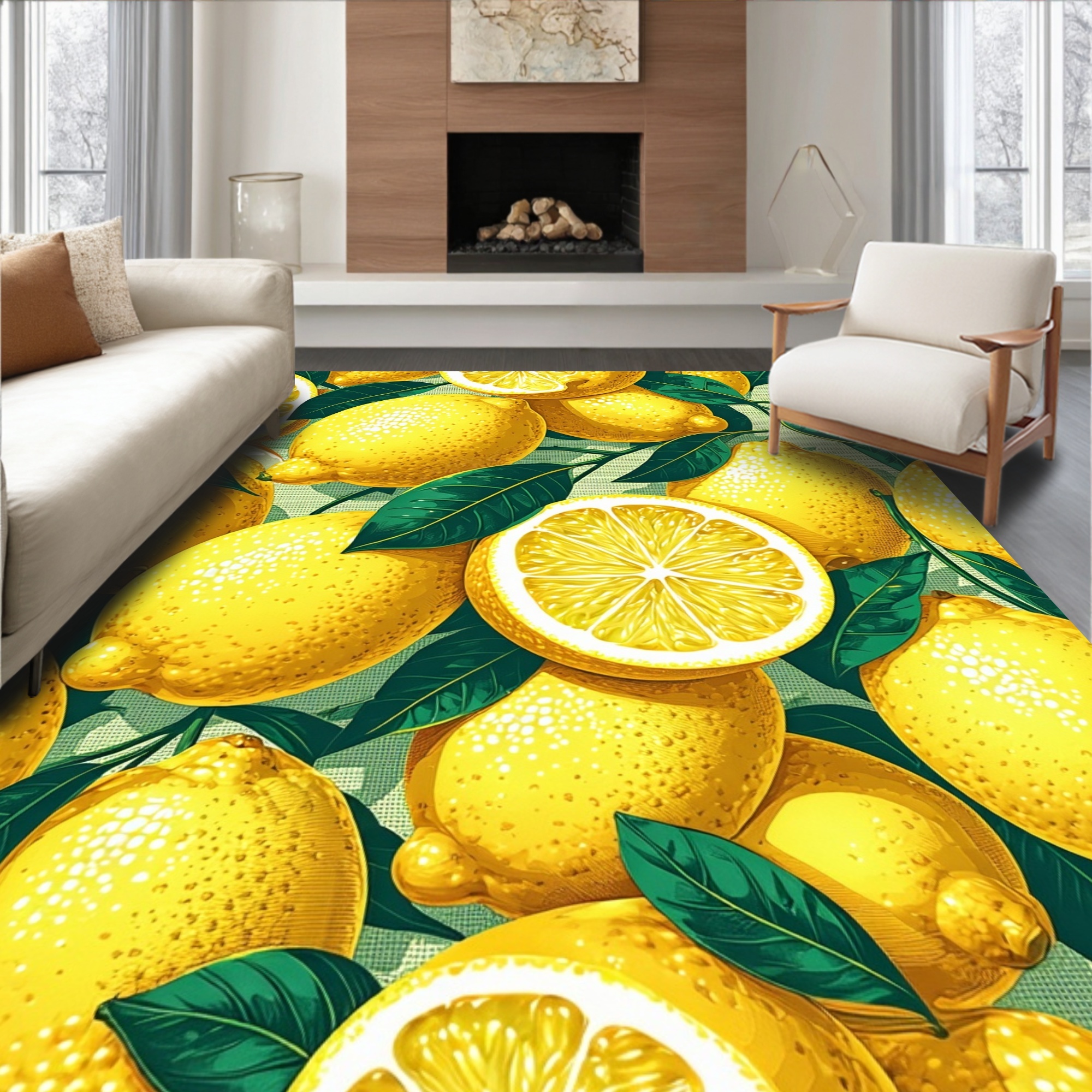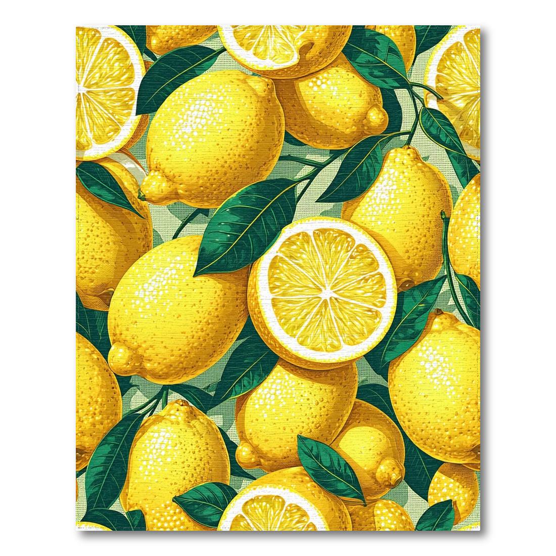 Bright Yellow Lemon & Leaf Cheerful Rug