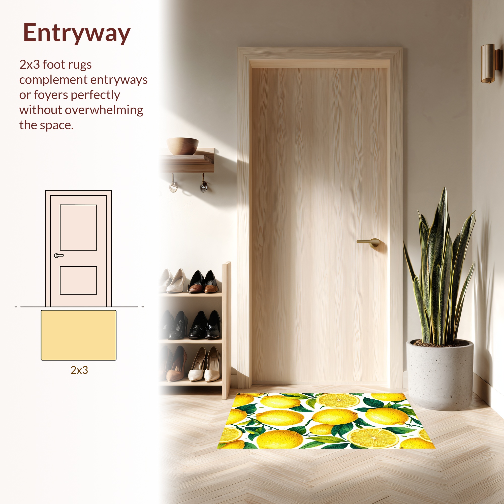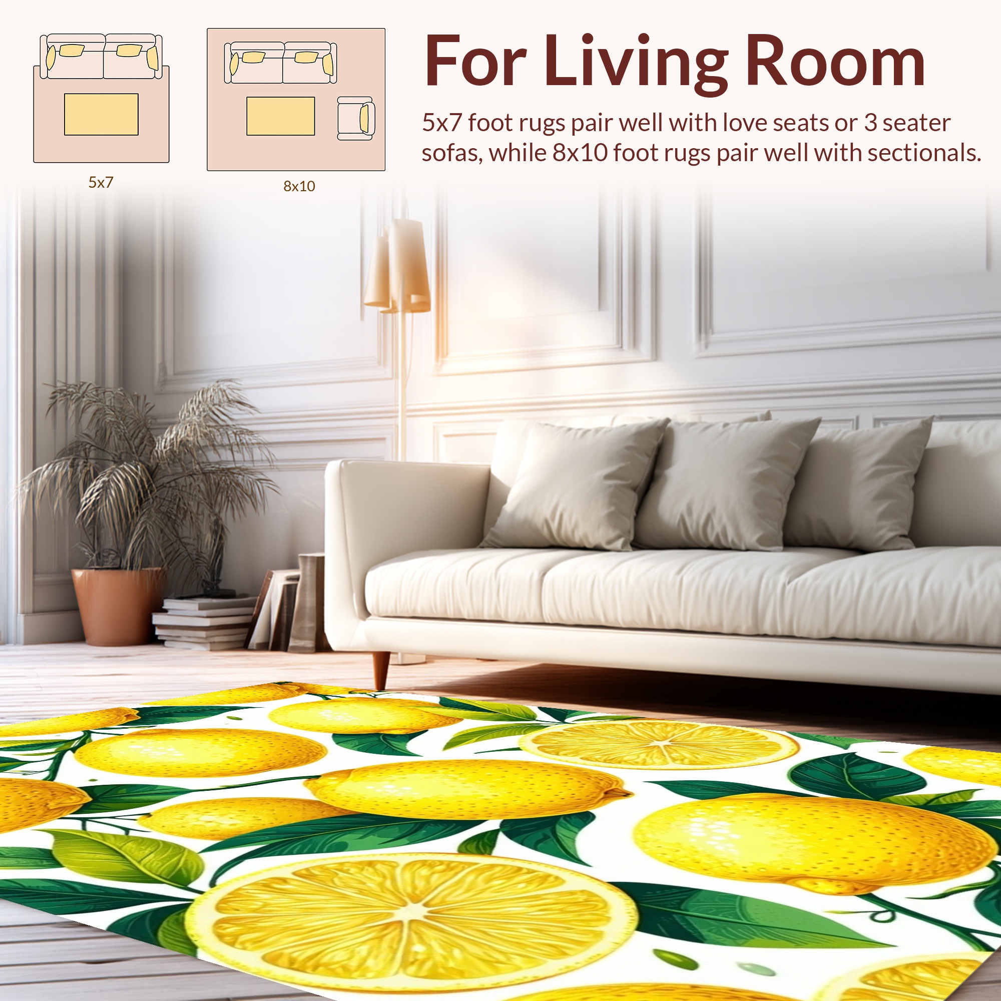 Bright Yellow Lemon Print Cheerful Rug