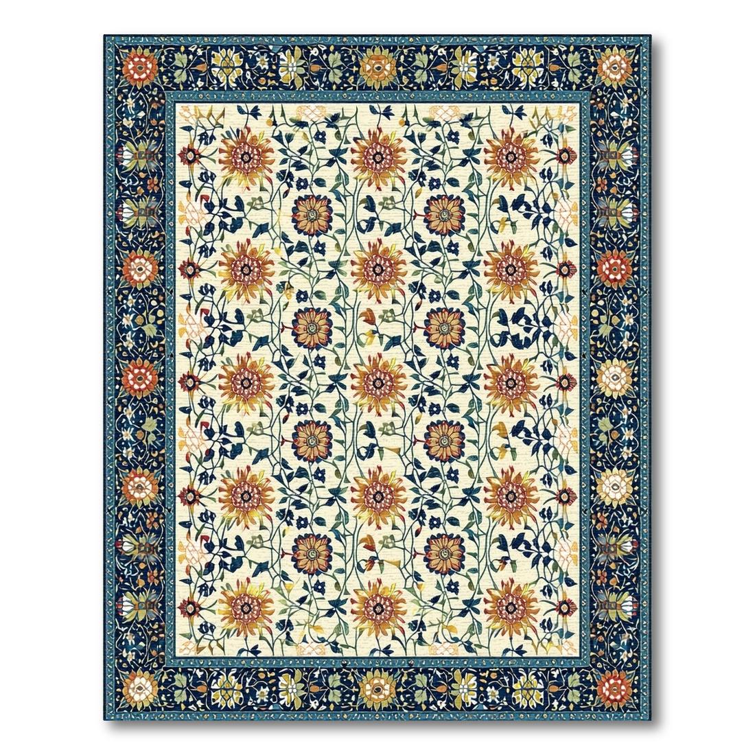 Cheerful Blue Yellow Floral Vine Rug