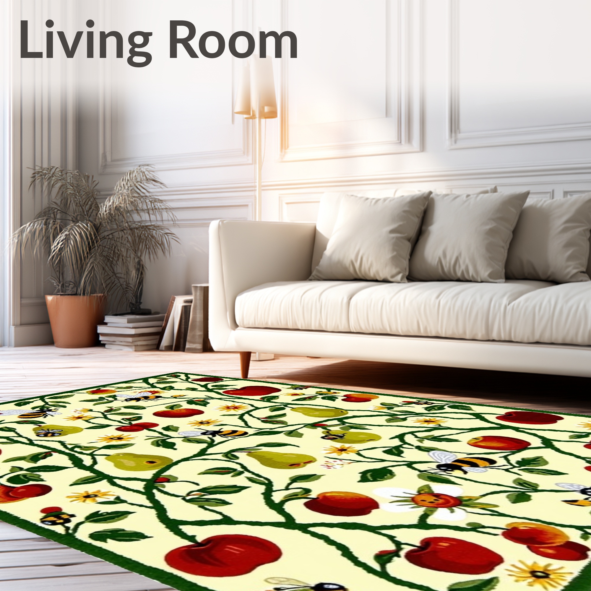Cheerful Cream Fruit Bee Rug