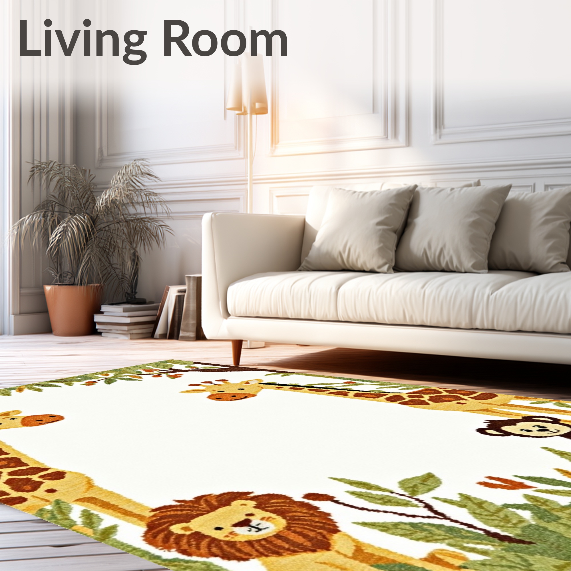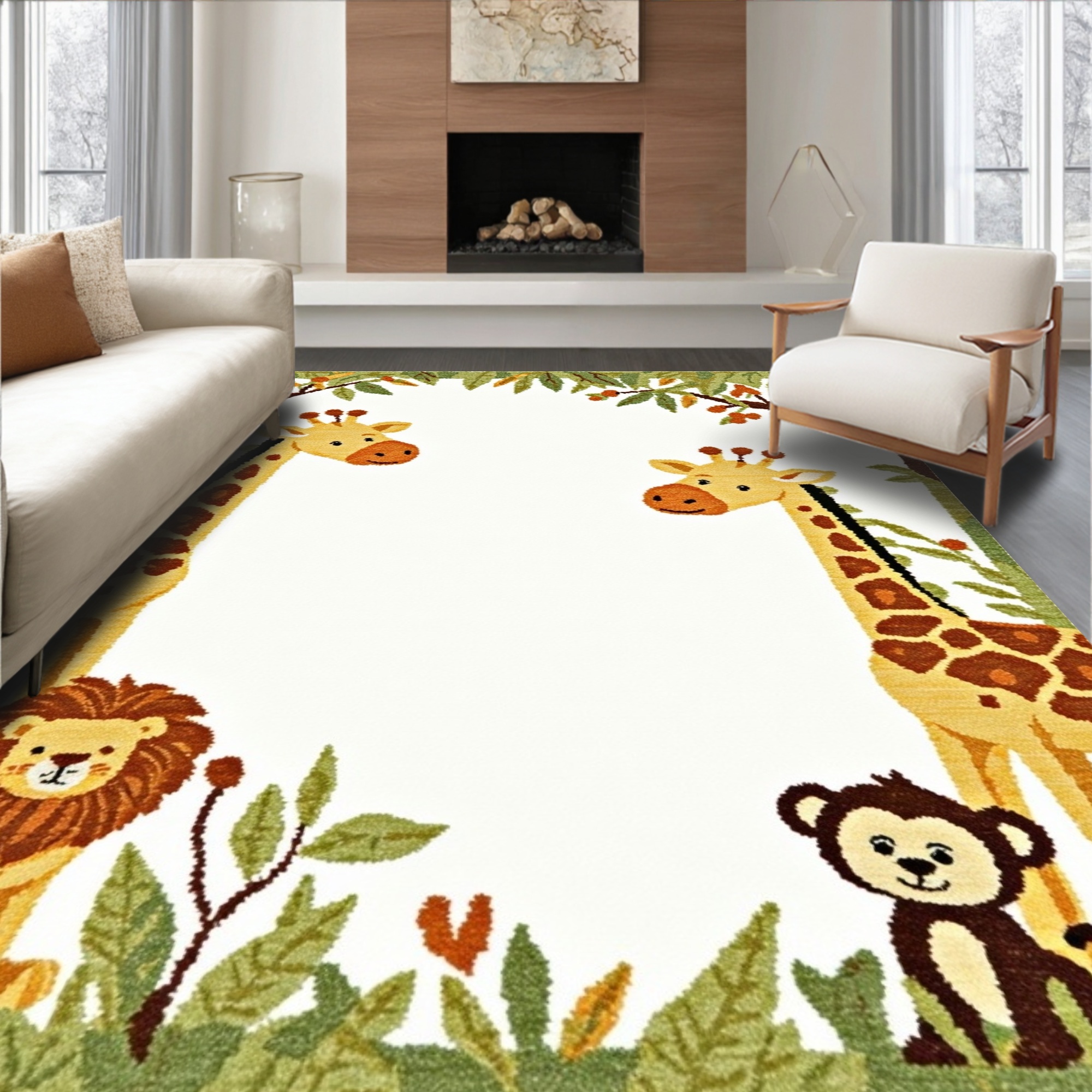 Cheerful Green Safari Animal Rug