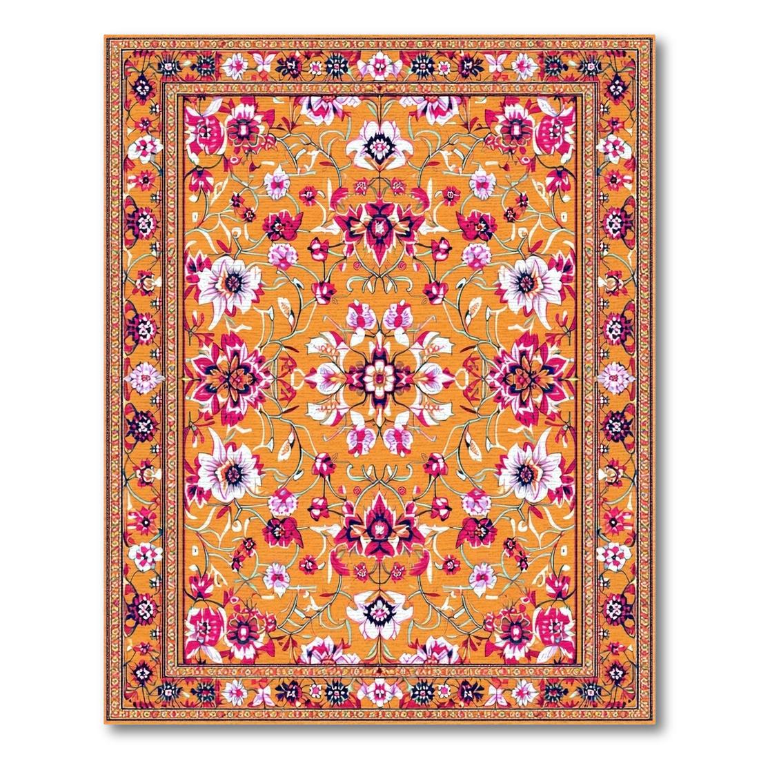 Cheerful Orange Intricate Floral Rug