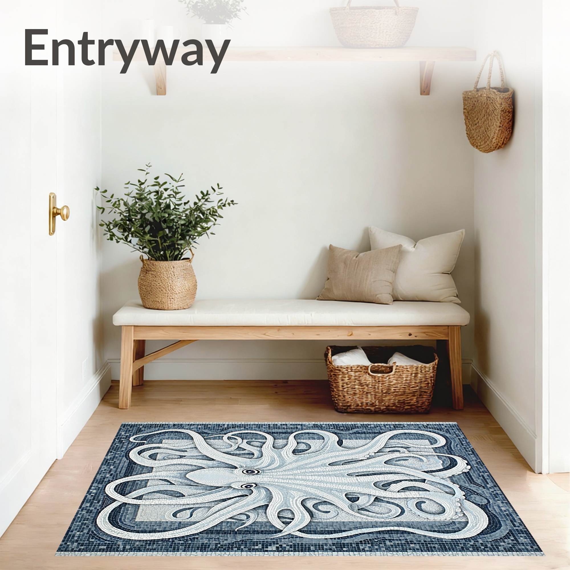 Coastal Blue-White Octopus Rug
