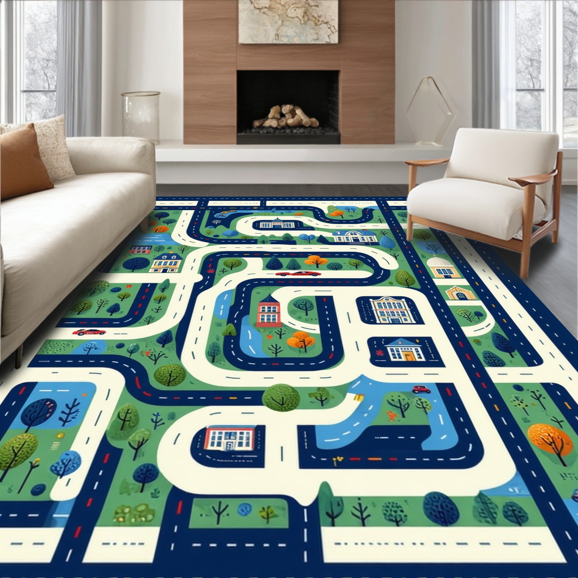 Colorful City Map Playful Rug