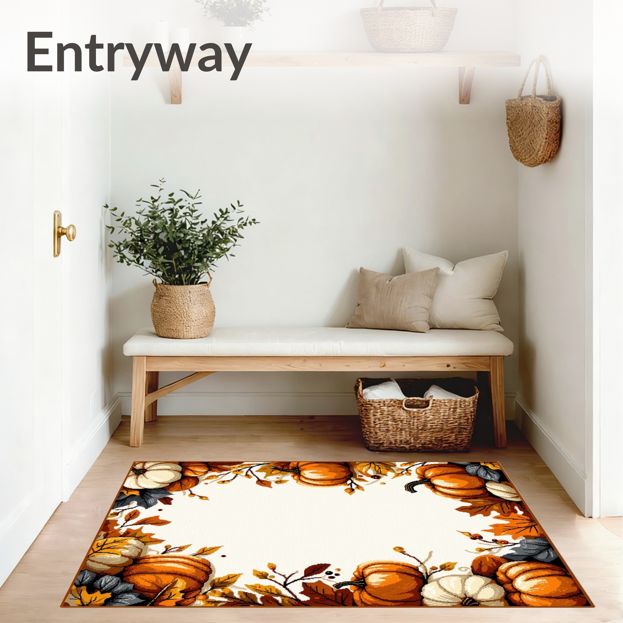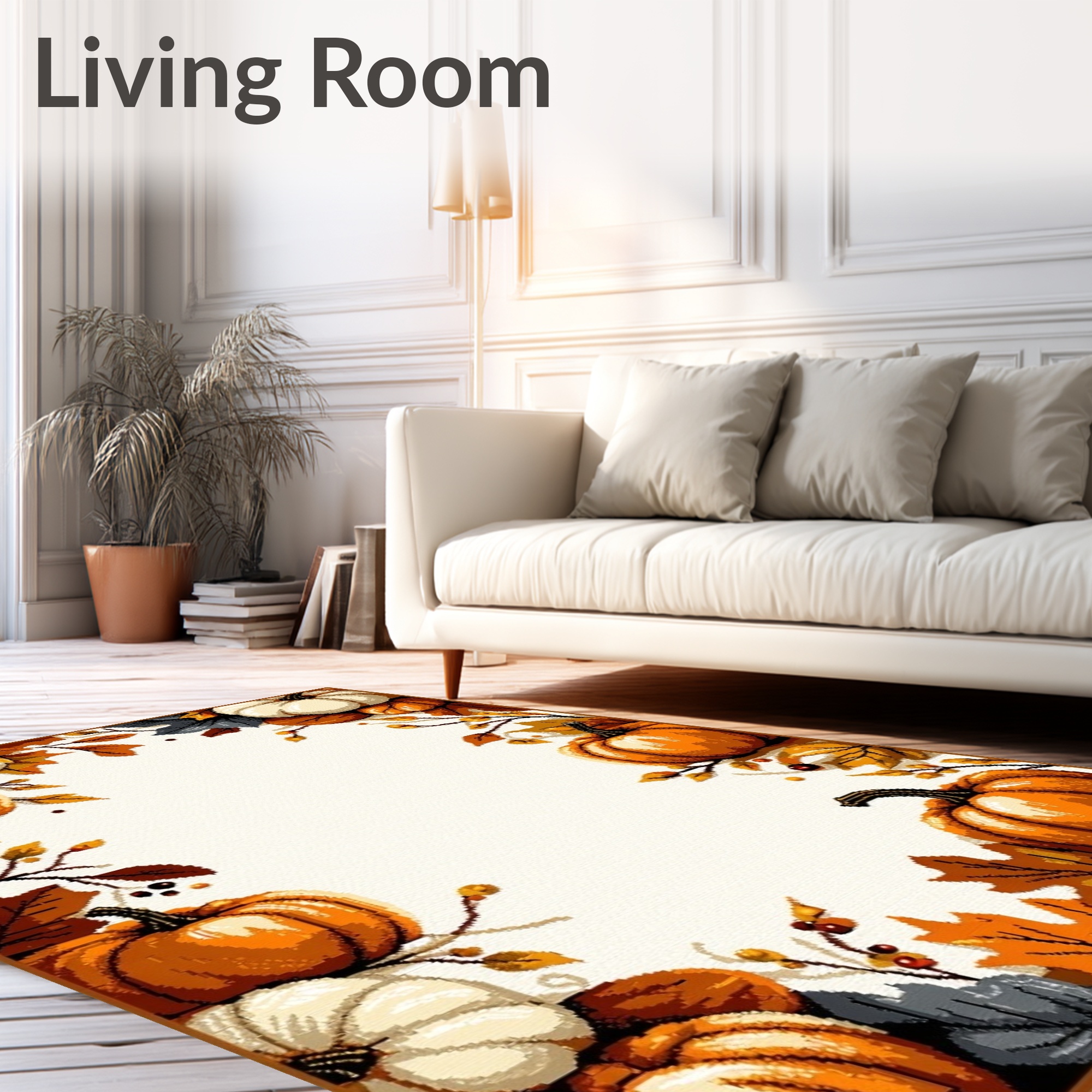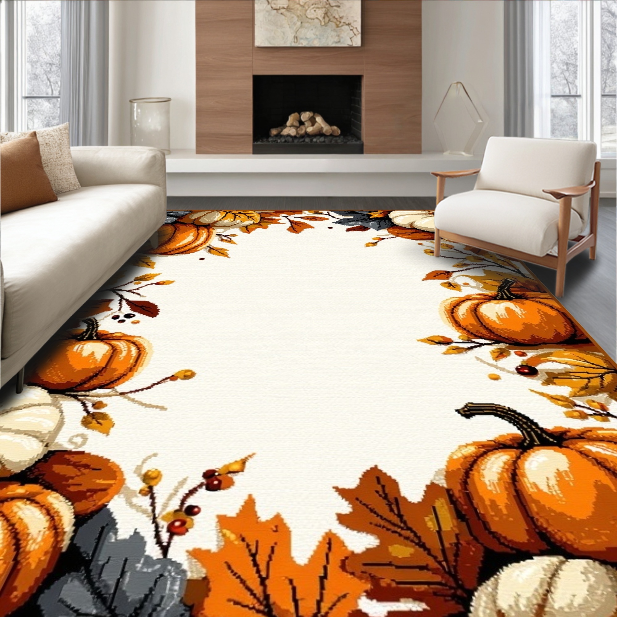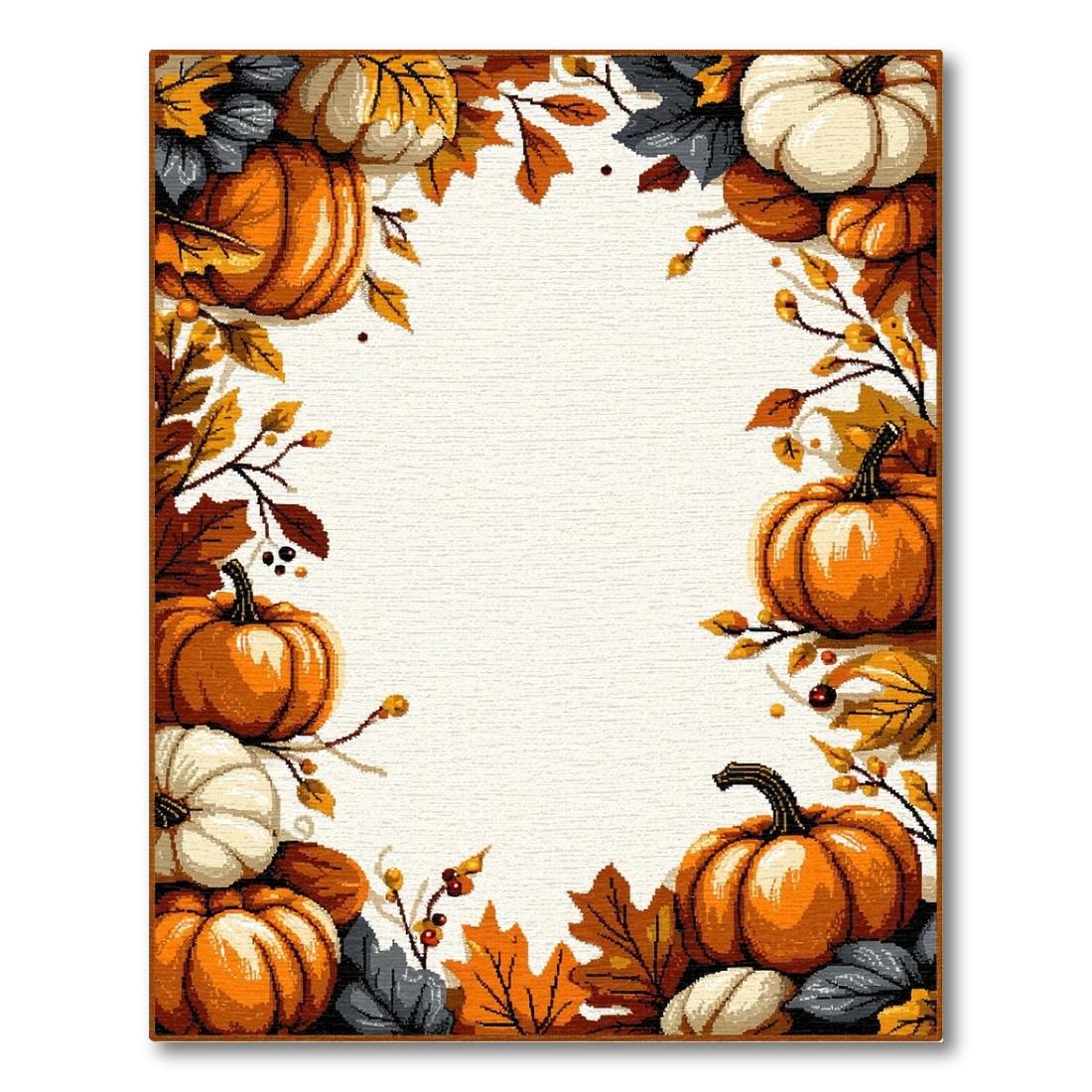 Cozy Fall Pumpkin Leaf Border Rug