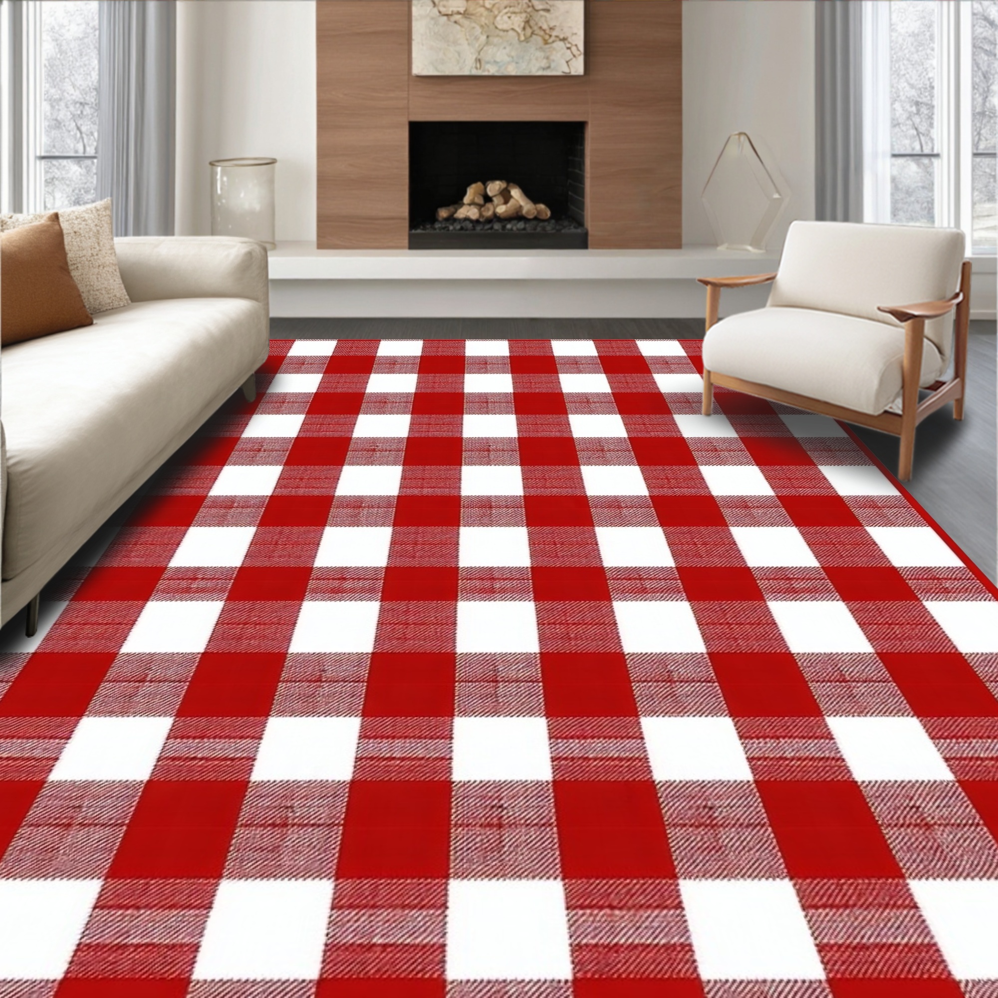 Cozy Red White Checkered Rug