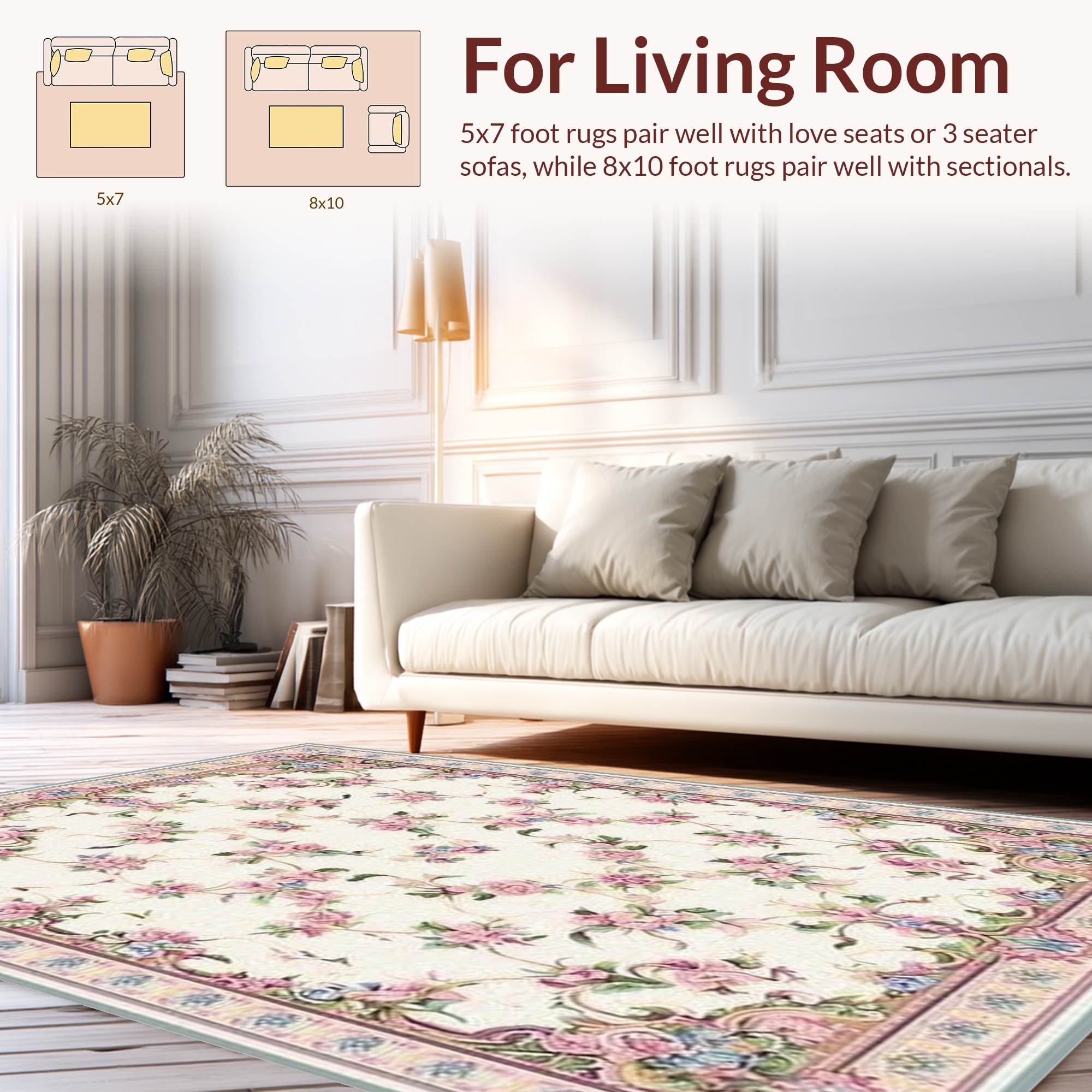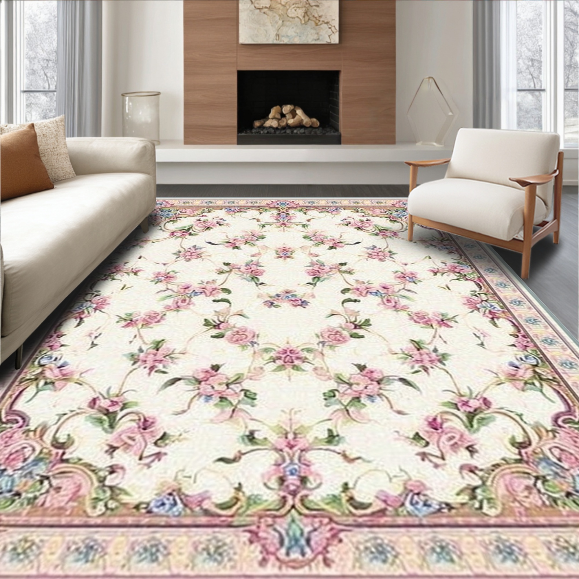 Cream Pink Floral Elegant Rug