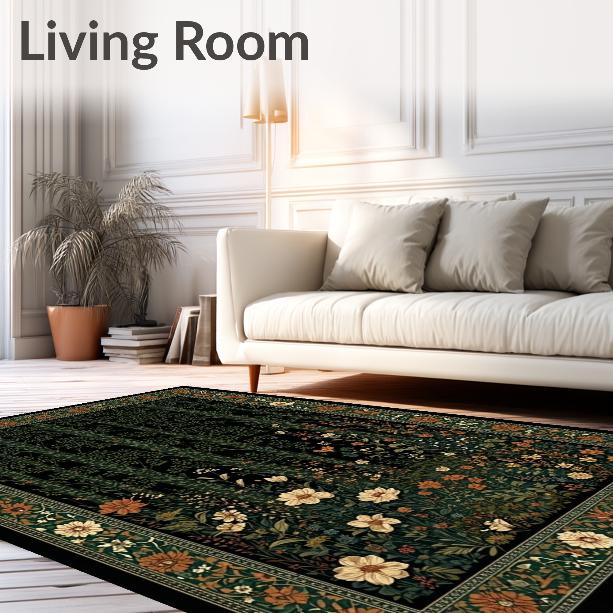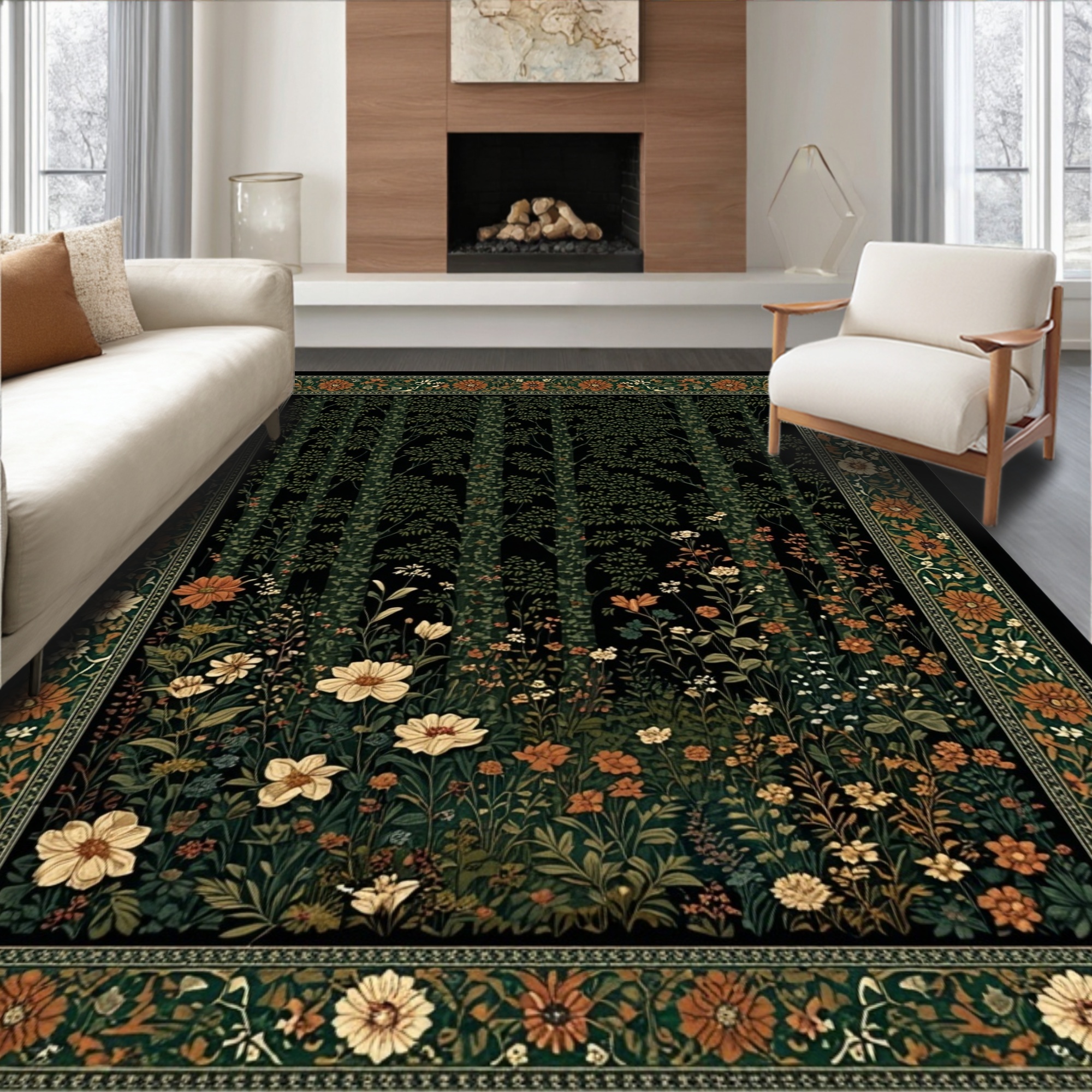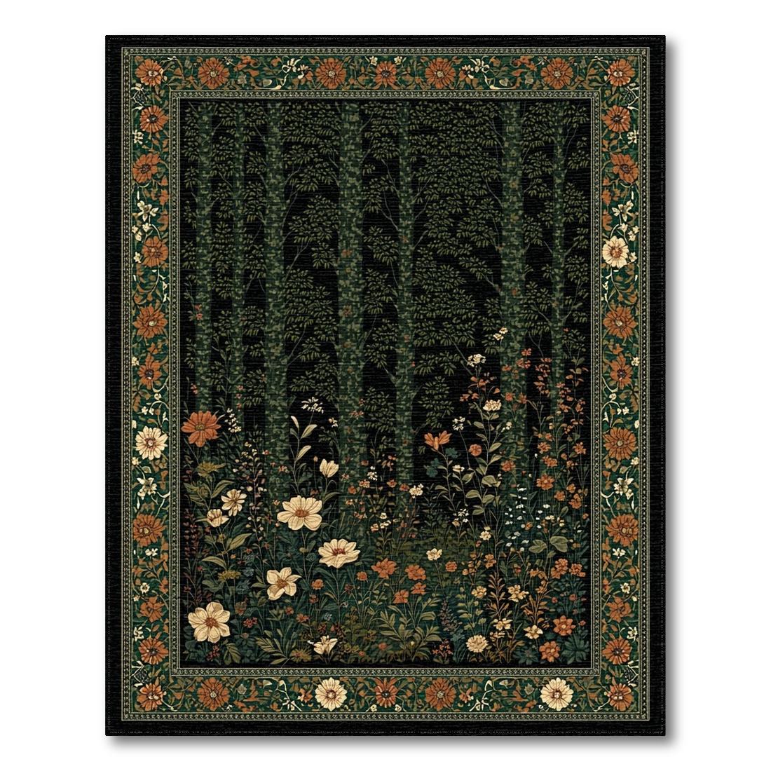 Dark Green Woodland Floral Serene Rug
