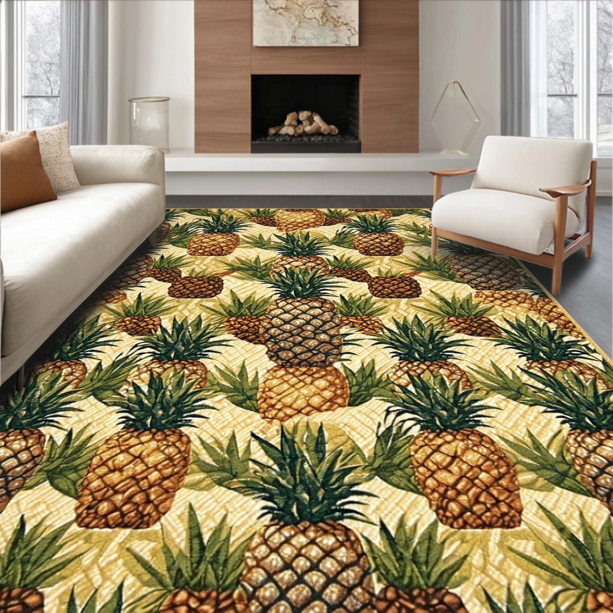 Earthy Pineapple Pattern Tropical Rug