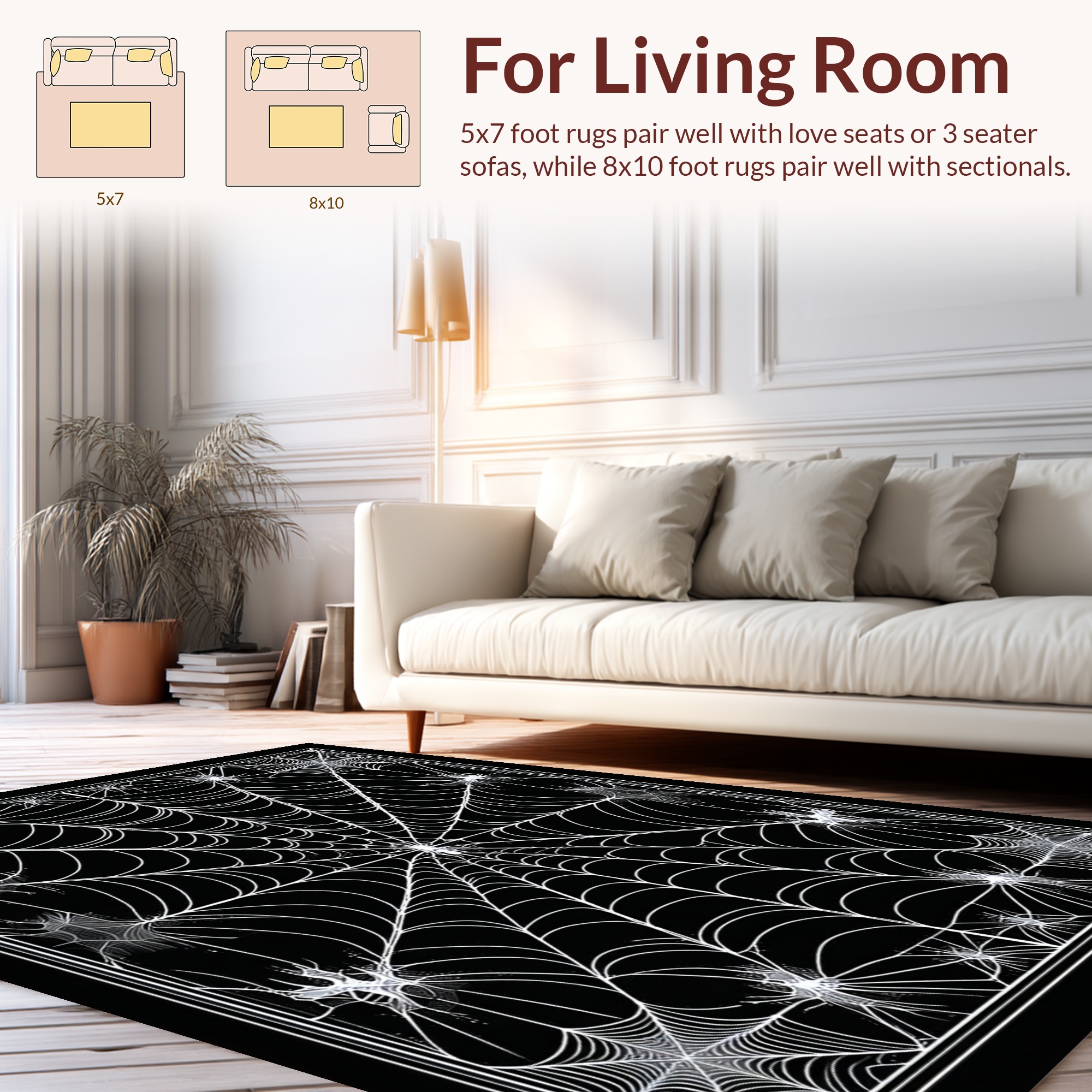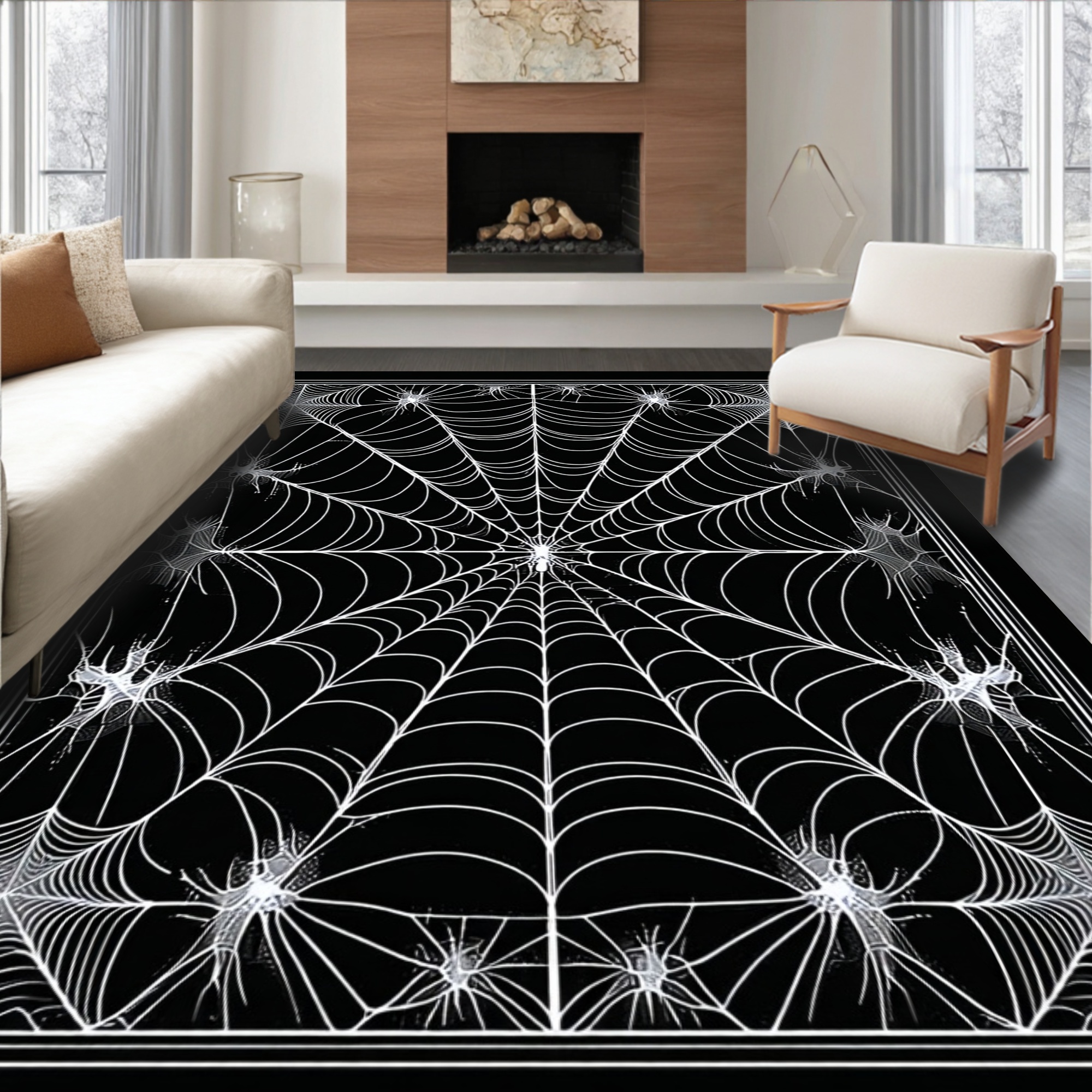 Eerie Black Spider Web Rug