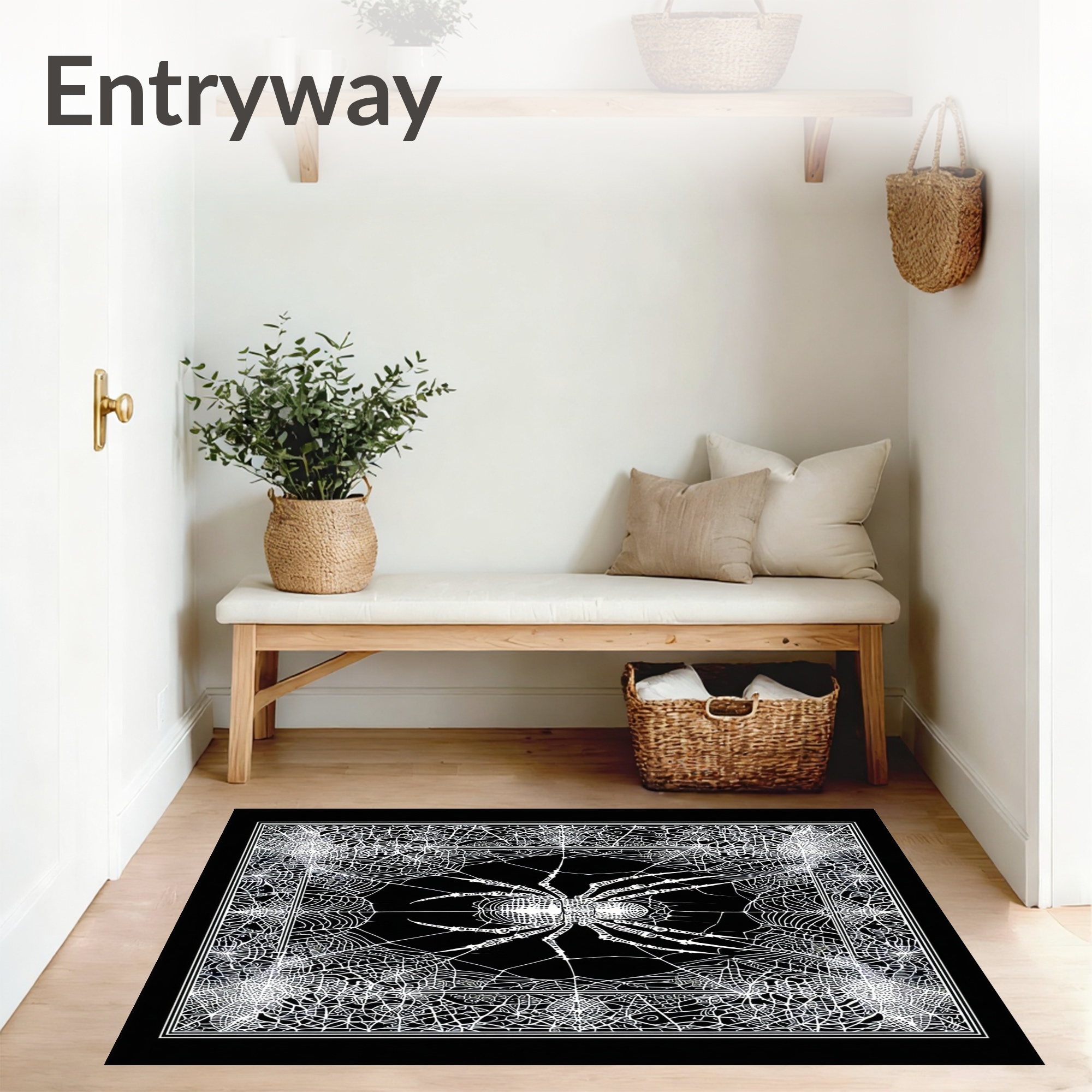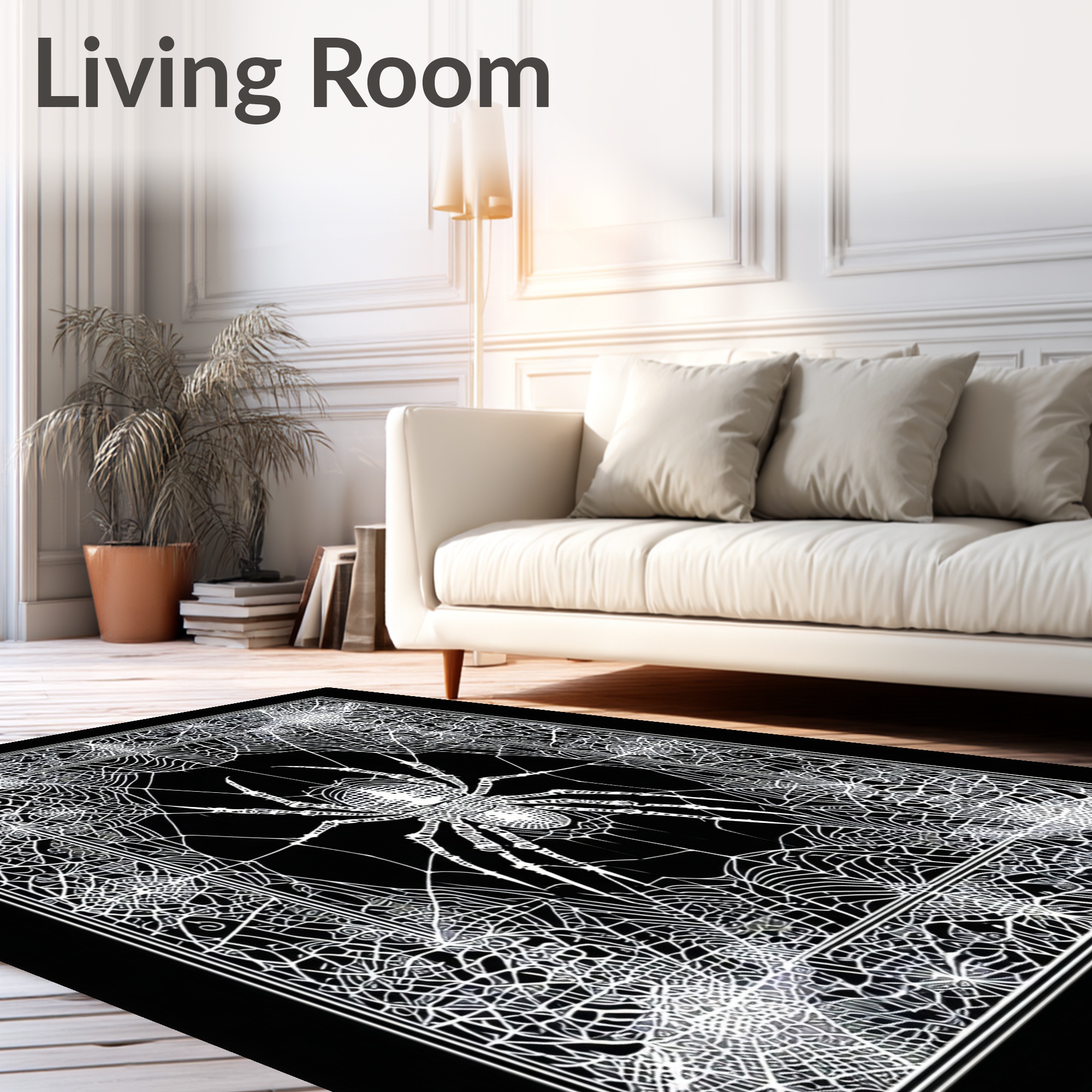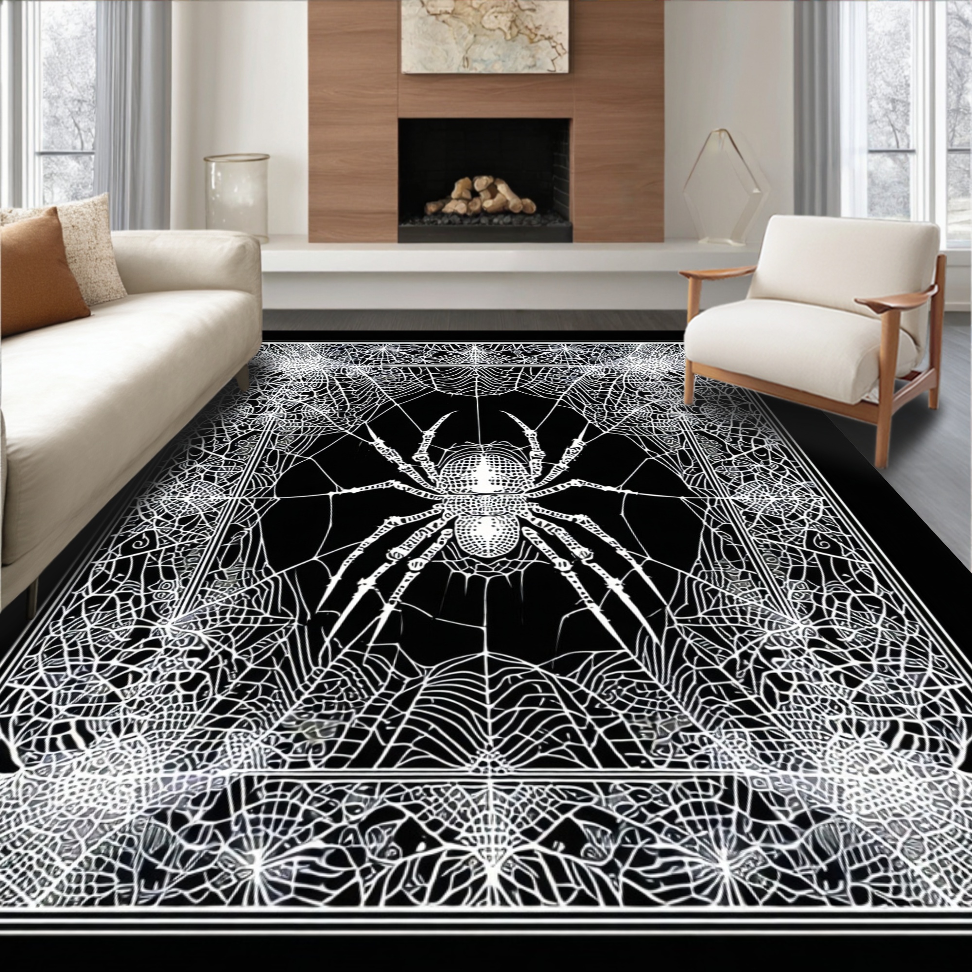 Eerie Black White Spider Web Rug