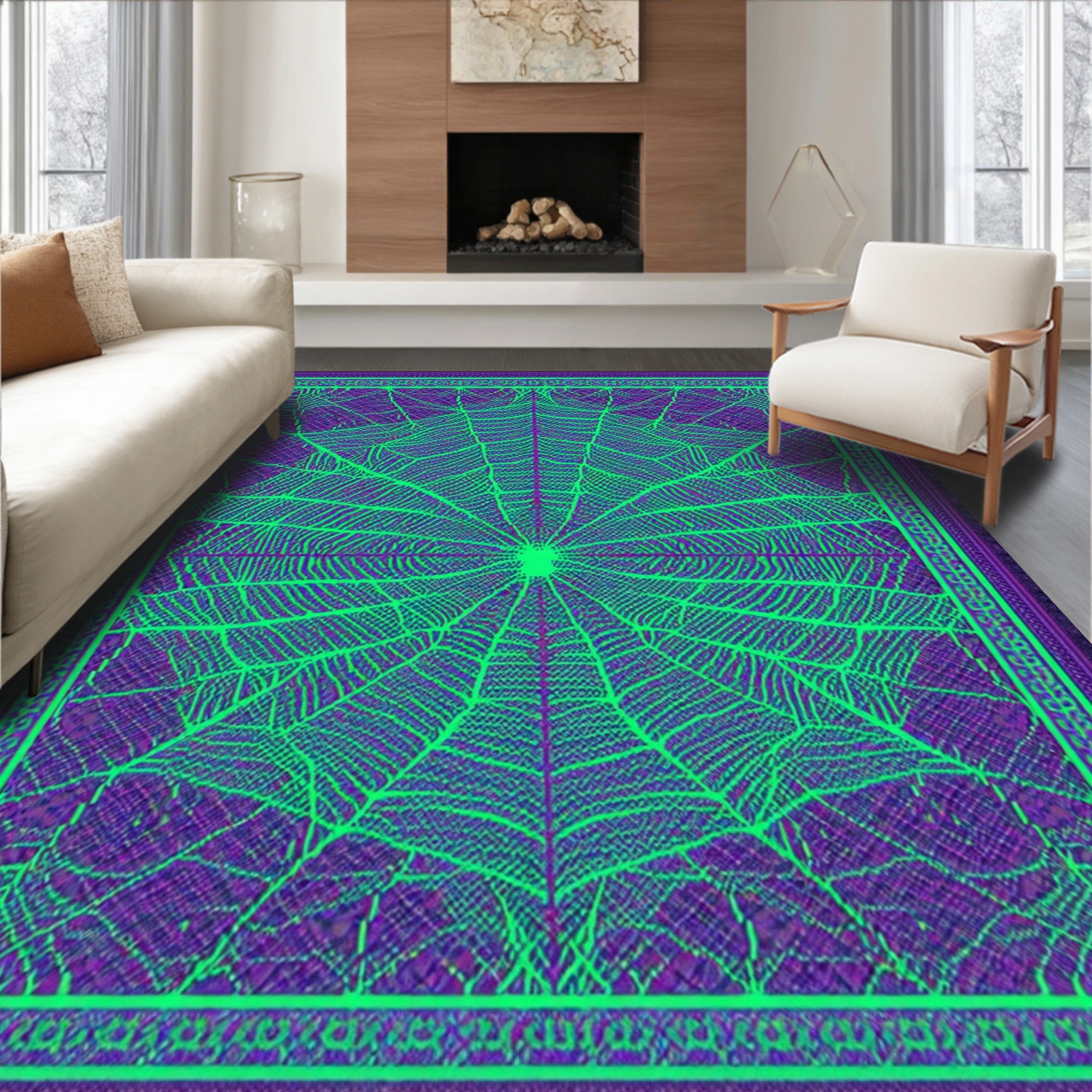 Electric Purple-Green Spiderweb Rug