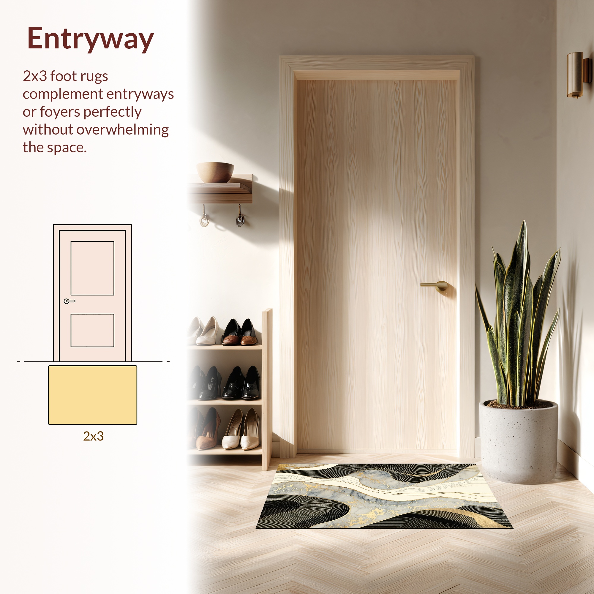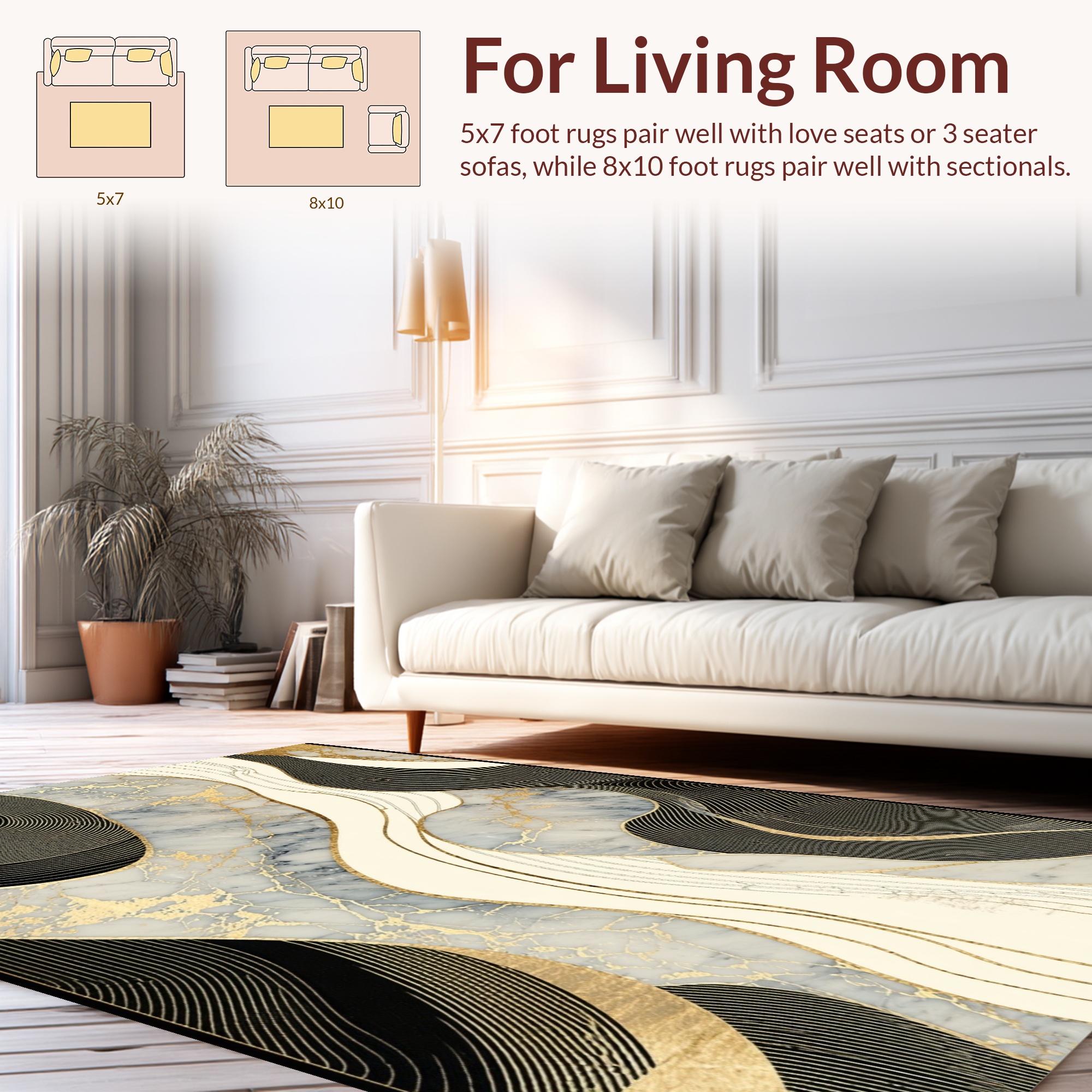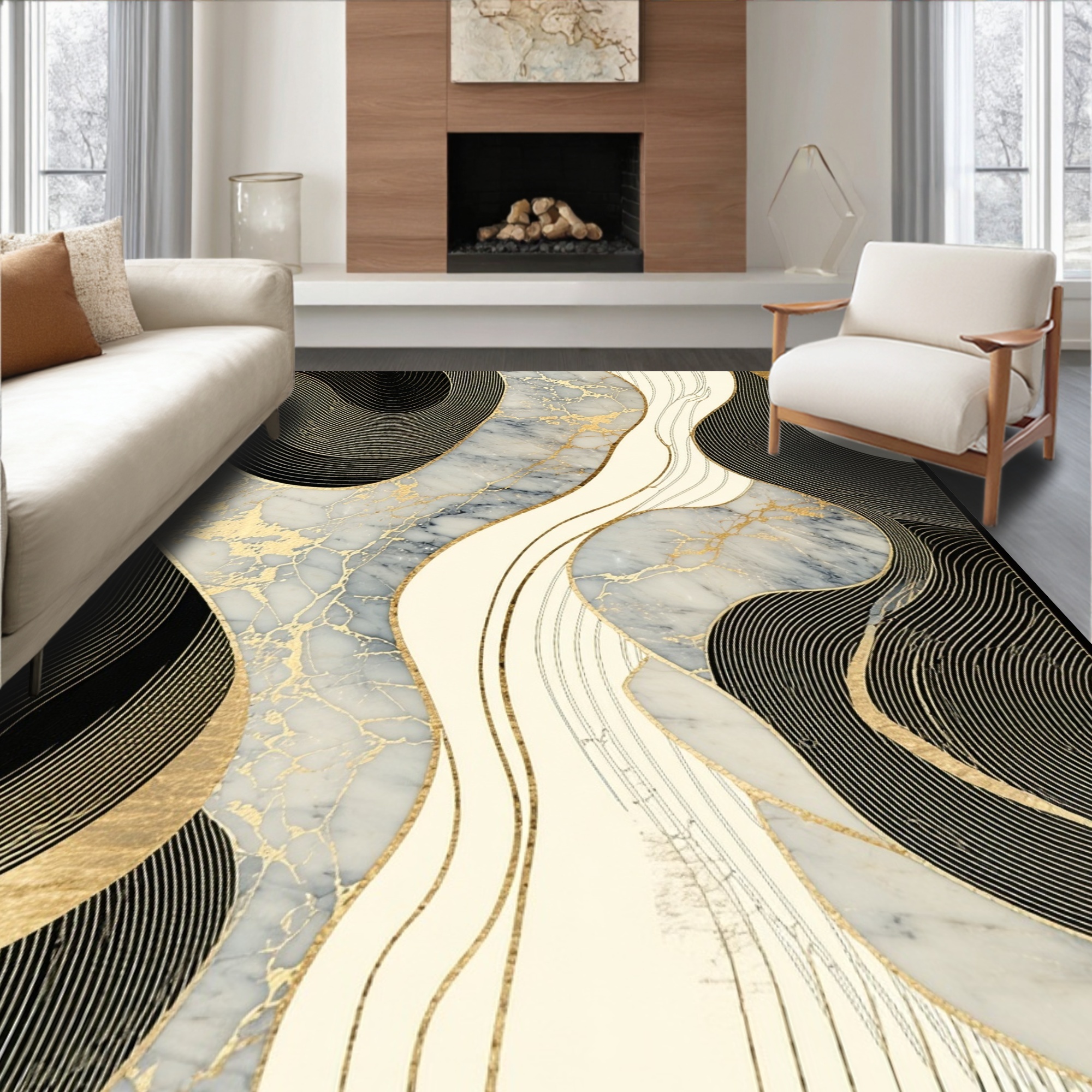 Elegant Abstract Black Gold Marble Rug