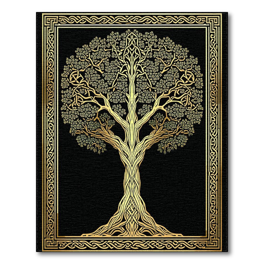 Elegant Black & Gold Celtic Tree Rug