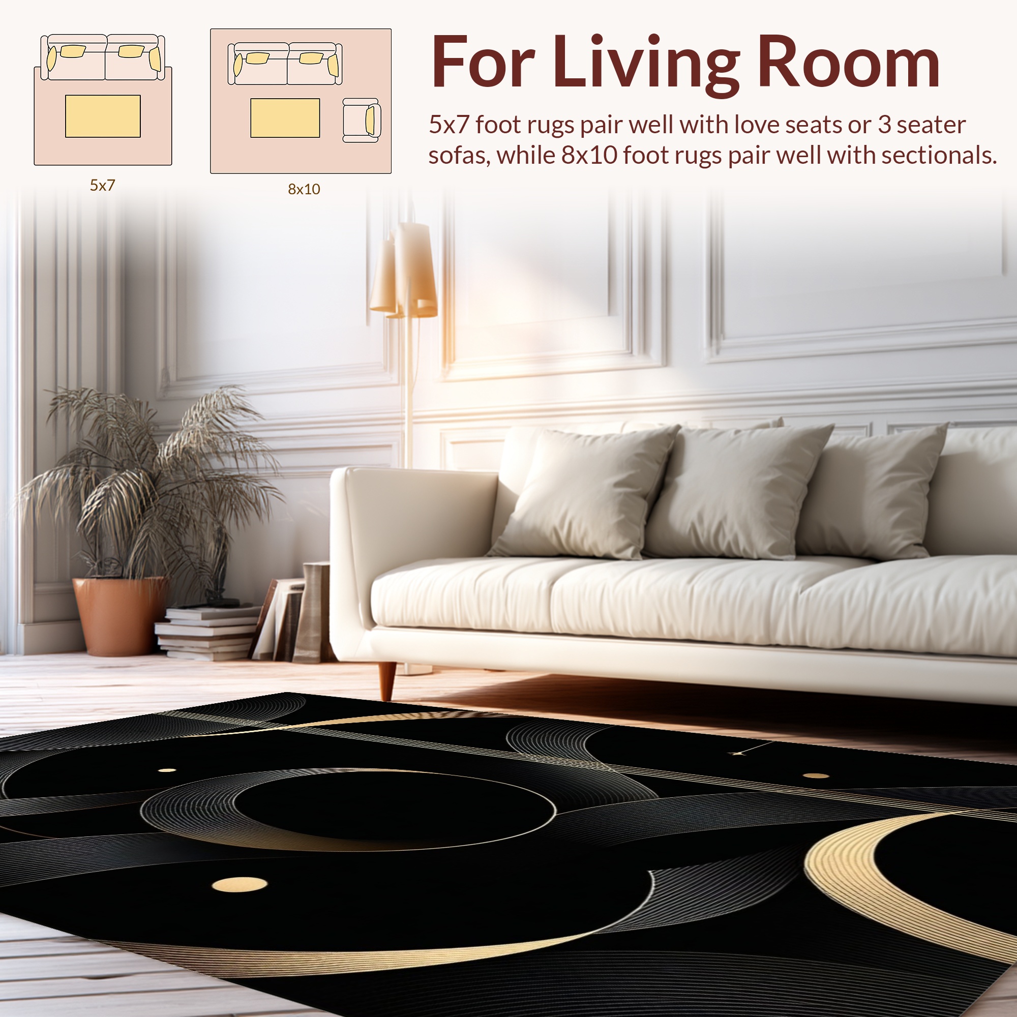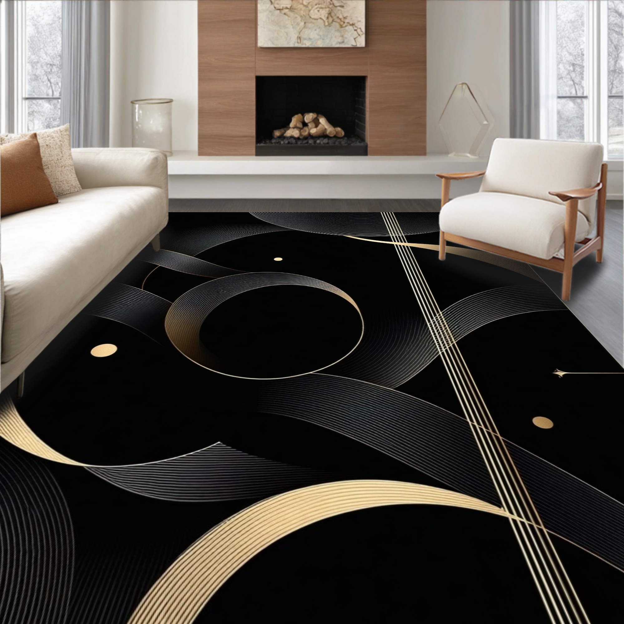 Elegant Black Gold Swirling Pattern Rug