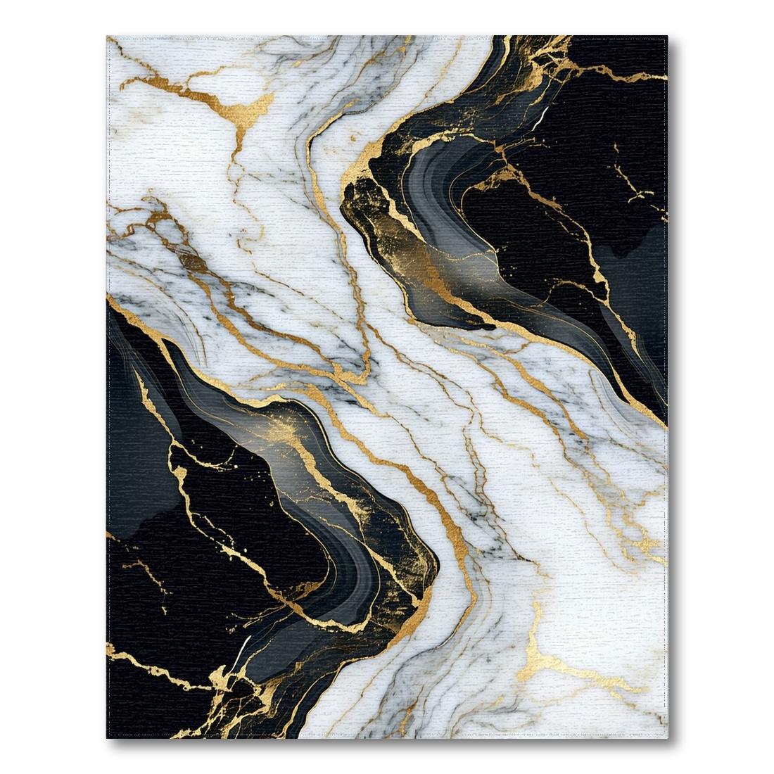 Elegant Black White Gold Marble Vein Rug