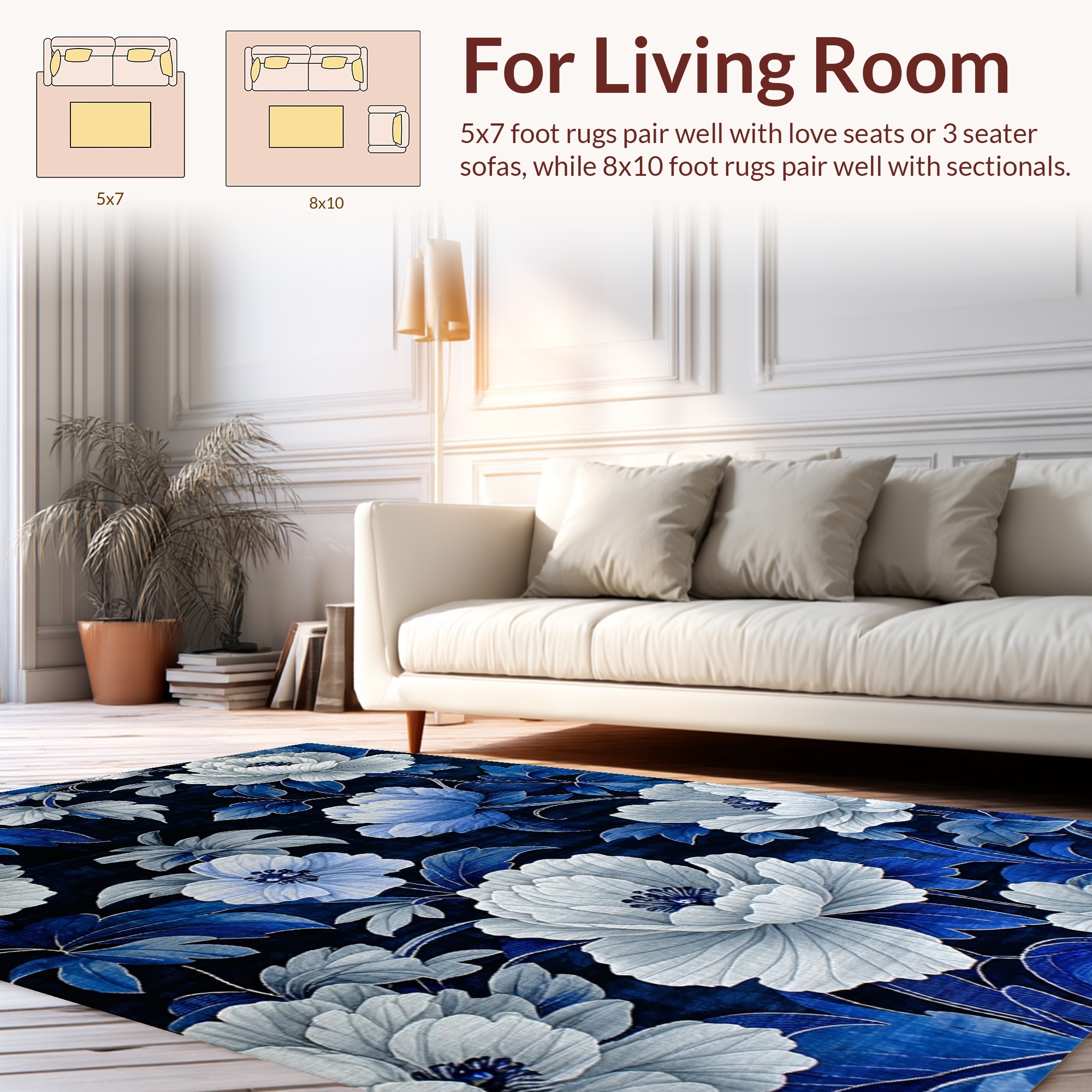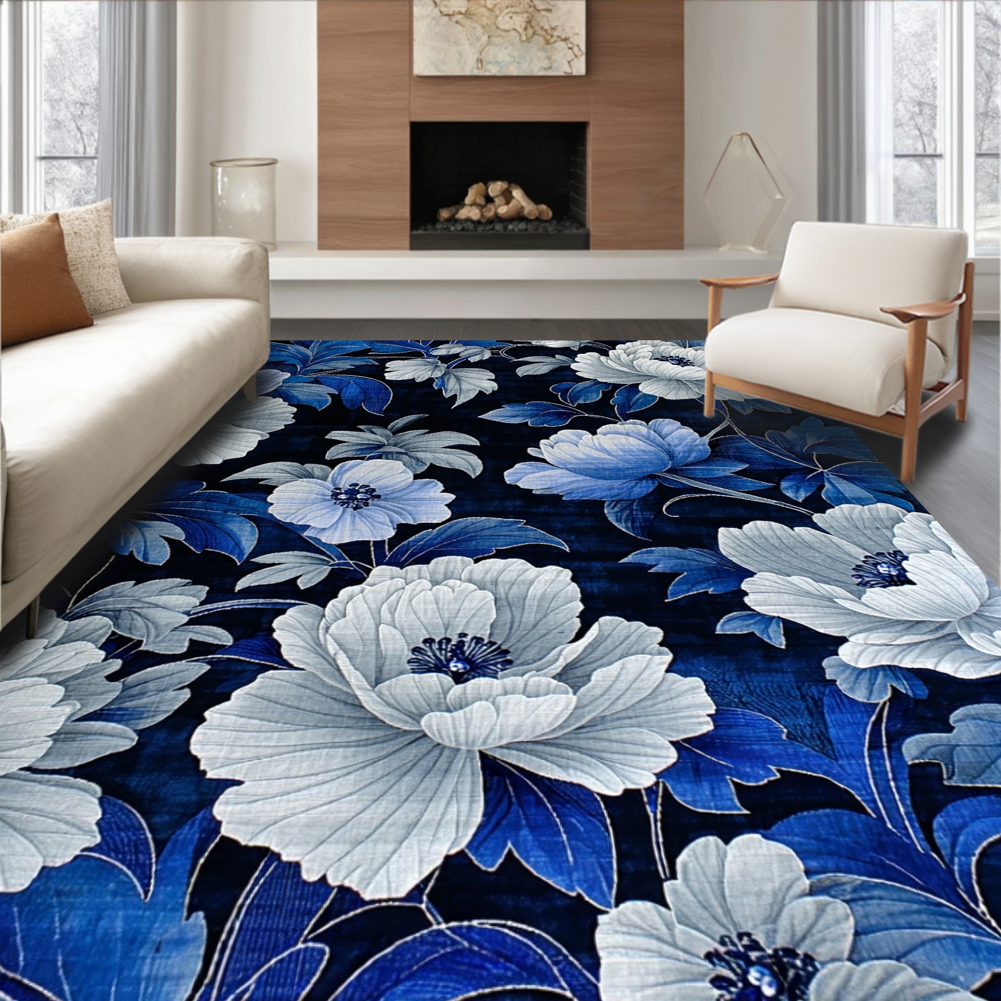 Elegant Blue-White Floral Rug