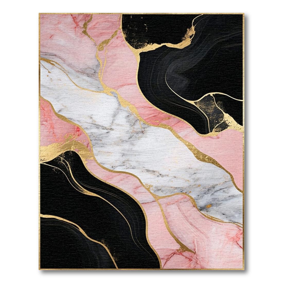 Elegant Pink Black Marble Fluid Rug
