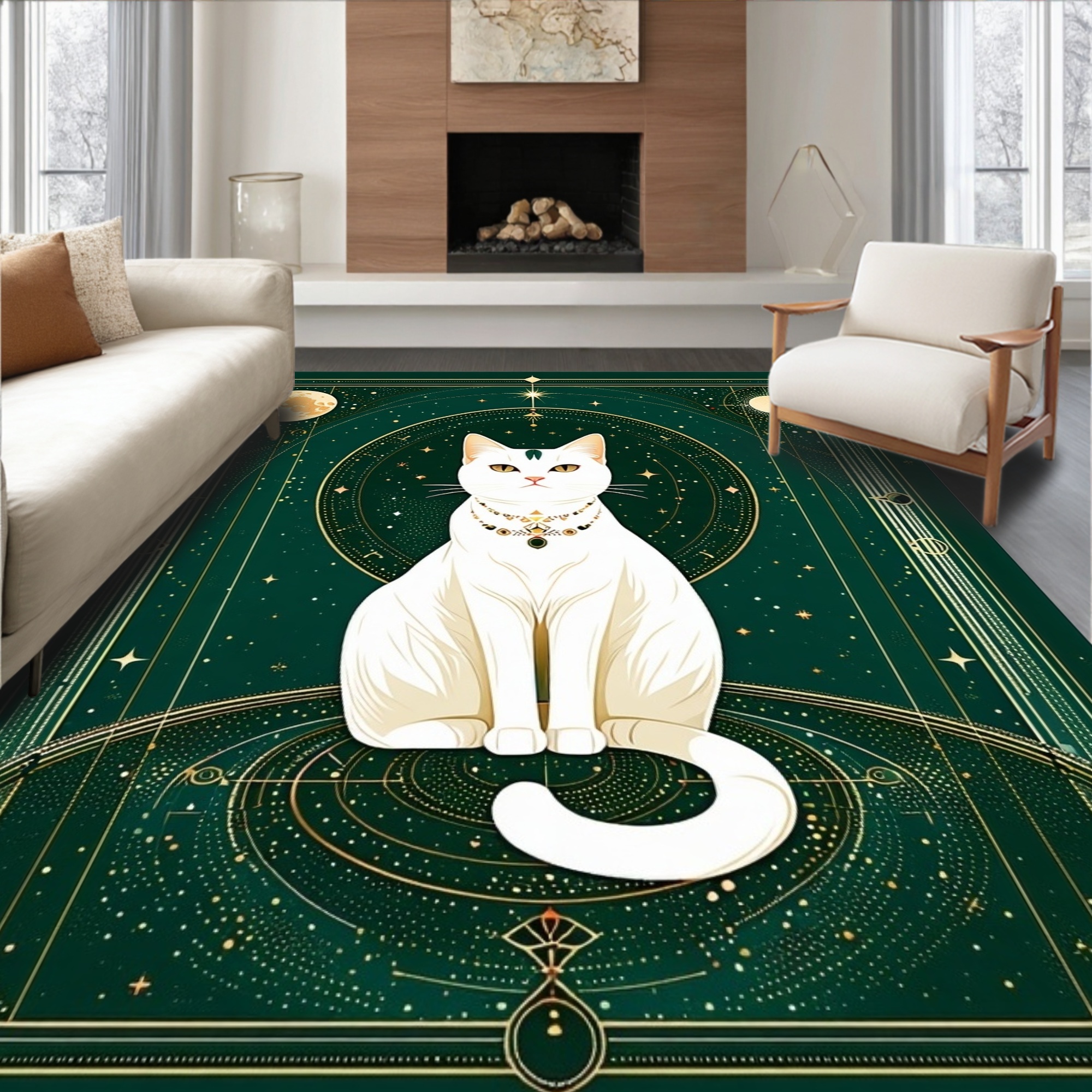 Emerald Celestial Mystical Cat Rug