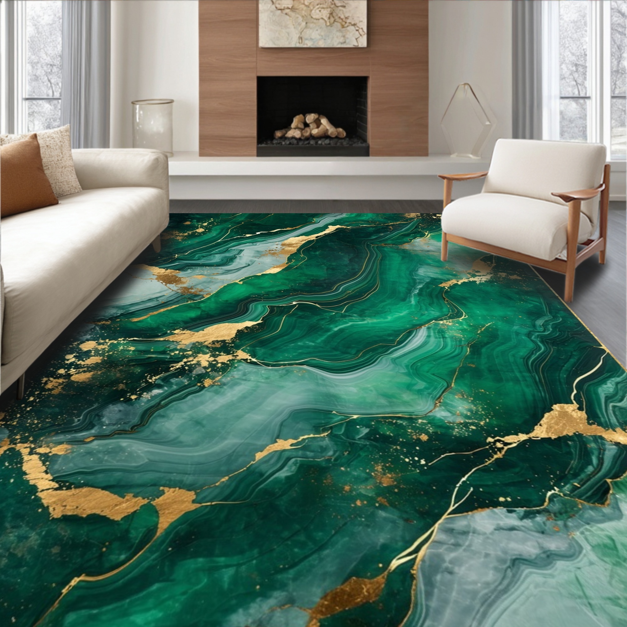 Emerald Gold Marbled Luxe Rug